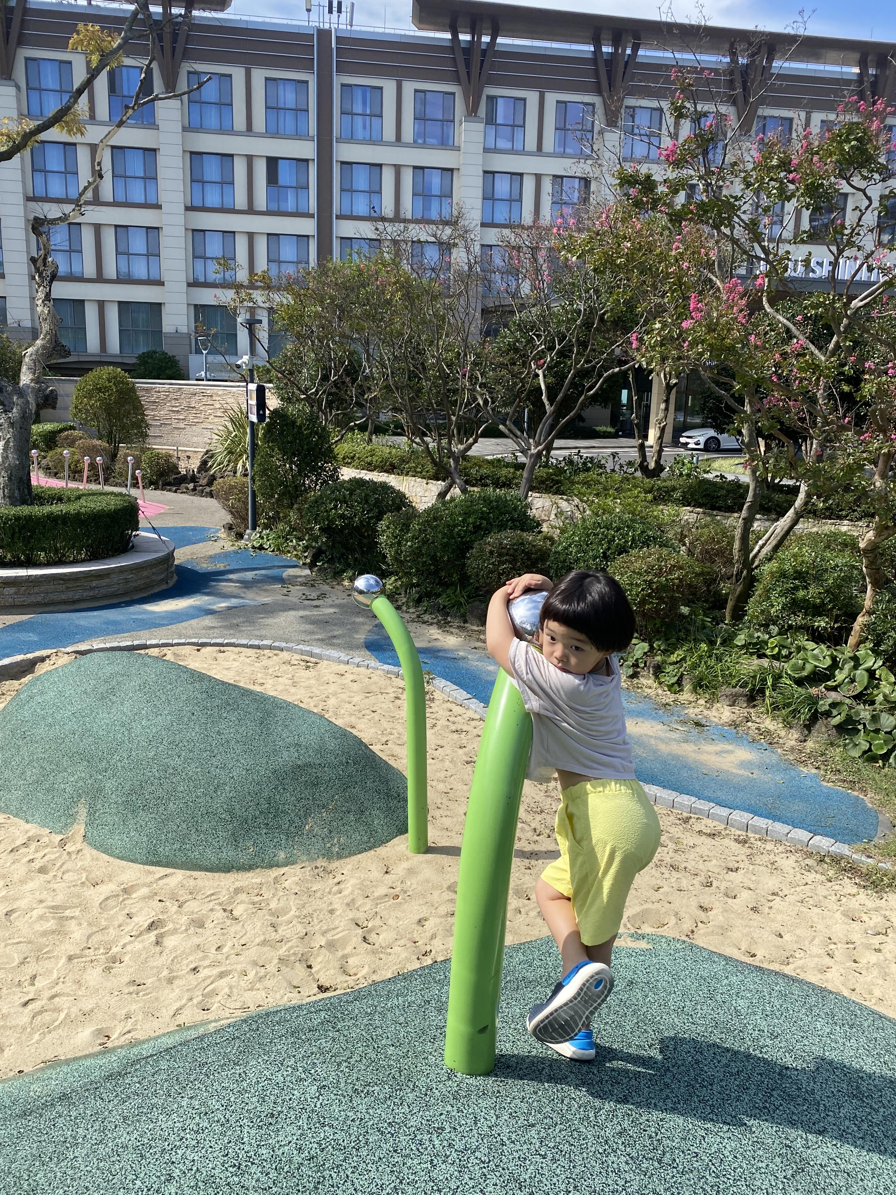 아침을 좀 과하게 먹은 덕에 잠시 짬을 내어 신화관 주변 아침 산책을 나섰는데요, 아들 눈높이에 딱 맞는 키즈 플레이존이 있더라고요. 여기서 아들은 한참을 운동 삼아 놀이에 빠졌답니다.