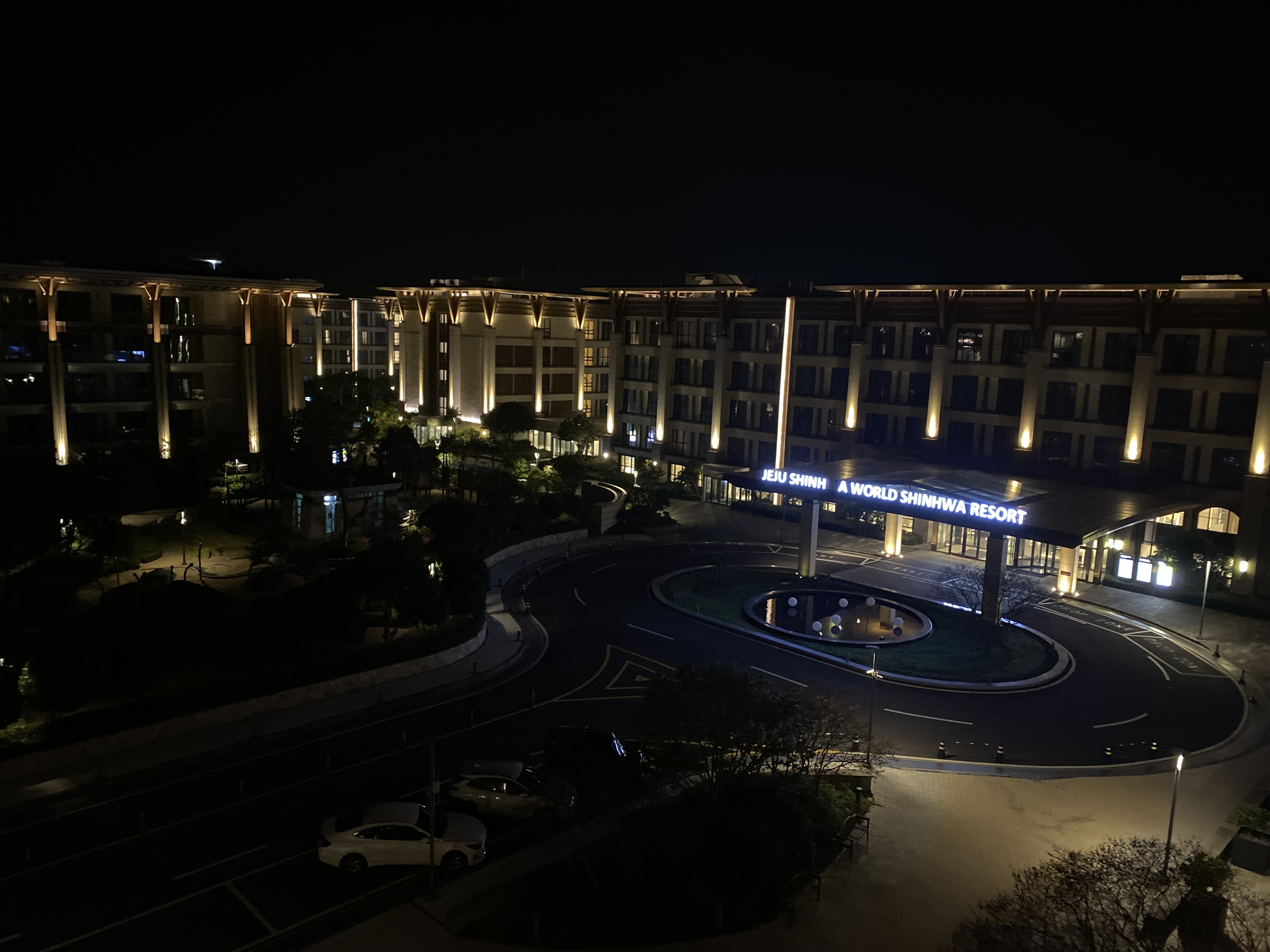 이른 아침부터 제주 투어를 나서다가 오후 2시쯤 숙소에 체크인을 하러 왔습니다. 아무래도 1박 2일 머무는 곳이라 시간을 잘 분배해서 사용을 해야 했는데요, 워터파크를 당일 오후에 이용하고 다음날 체크아웃 하면서 오전에 테마파크를 이용할 계획입니다. 사진은 워터파크에서 오후 시간을 즐기고 저녁을 먹으러 다시 인근 식당에 나갔다가 들어와서 숙소 야간 뷰인데 눈으로 보는 건 괜찮았는데 사진은 생각보다 이쁘게 나오진 않았습니다.