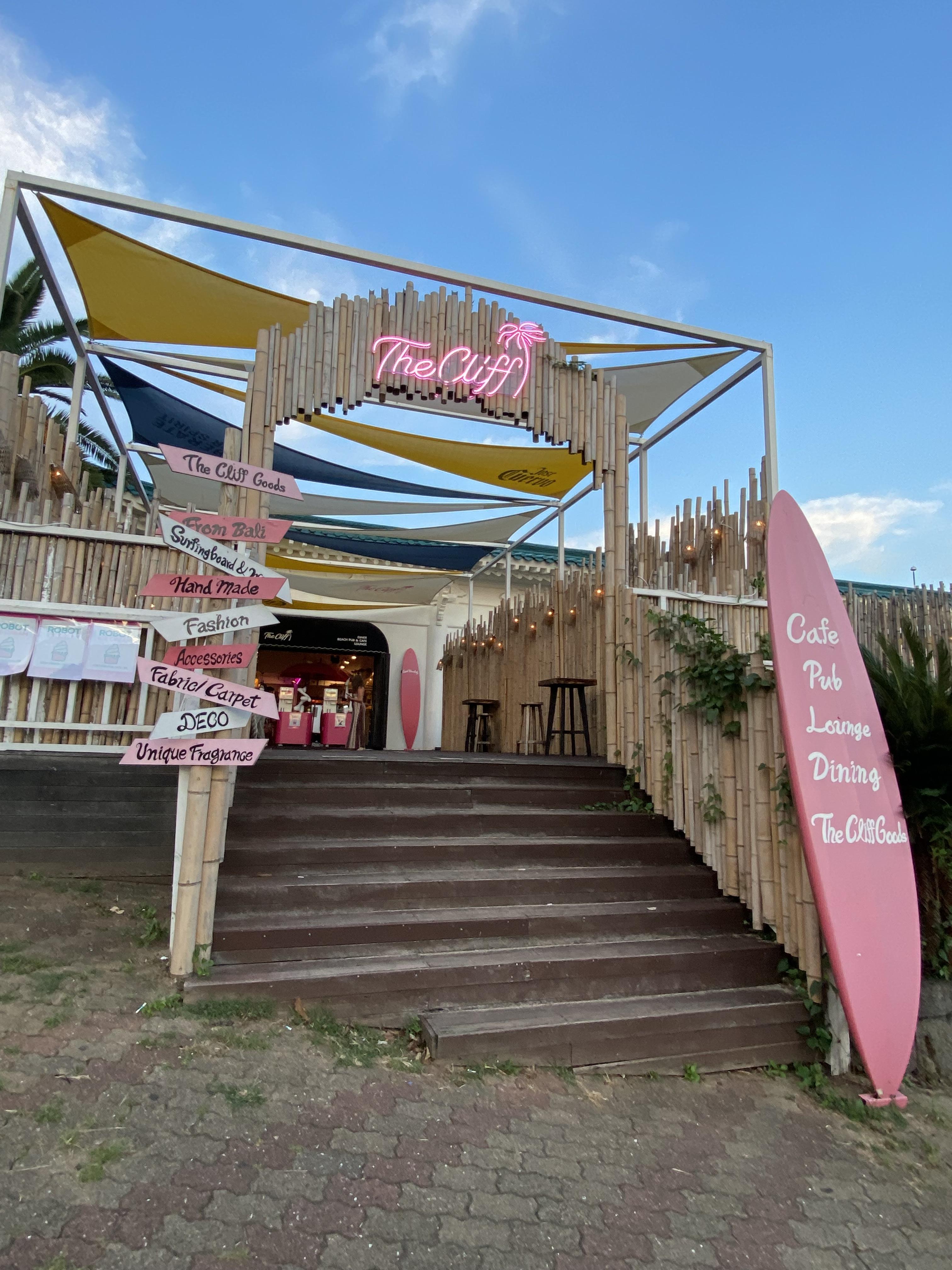 클리프 야외 테이블에서 바라보는 제주도 중문 바다 뷰입니다. 캬~~ 속이 뻥~~ 뚫리는 듯한 청량감이 느껴지는 뷰였습니다. 음료는 아아 두 잔과 아들 마실 음료 한 잔을 시켰는데요 핫플에 엄청난 뷰를 자랑하는 곳이라서 그런지 거의 머... 한 끼 외식비용이 나오는 정도랄까요? 그럼 맛은 어떻느냐~~ 명색이 펍 카페라 음식을 주문해서 먹는 사람들도 많았는데 음식평은 안 먹어봐서 모르겠고 커피 맛은 그냥 뷰 보는 맛으로 보상을 받으시길 바랍니다. 제주오일장터에서 3천 원 드랍커피보다 더 못한 맛이지만 뷰가 모든 걸 대신합니다. 그래서 음료 사진은 과감히 생략~ 중문 색달해수욕장에서 서핑을 하는 분들이 많아서 그런지 방문객들 중에는 서핑을 끝내고 휴식을 취하면서 식사를 하시는 분들도 많고 외국인들도 많고 그야말로 밤이 되면 자연스럽게 클럽 파티 분위기로 바뀔 거 같은 느낌이 나면서 살짝 외국 펍바 같은 곳에 와있는 듯한 착각이 들었답니다. 이국적 느낌과 탁 트인 제주 바다 뷰를 감상하면서 여유롭게 휴식도 취하는 그런 곳을 찾는다면 바로 요기 더클리프 펍&카페로 가보세요!!! 단, 음료는 비추입니다.^^