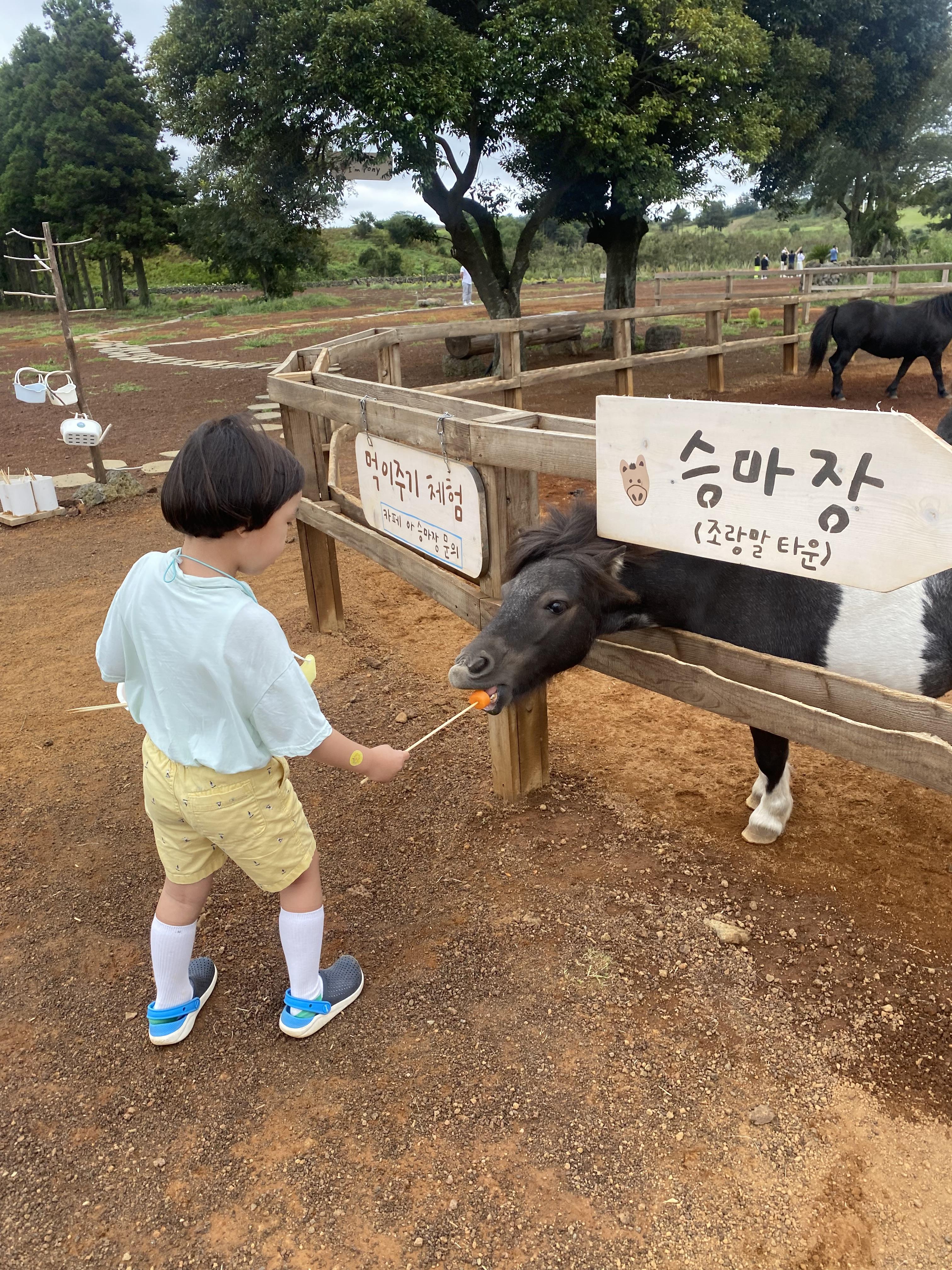 마굿간에 말들은 열심히 말 체험 하는 말들인데 대기 중인 말들에게 열심히 먹이주기 체험을 해봅니다. 조랑말들도 불쌍했는지 아들이 남은 당근을 나눠주네요^
