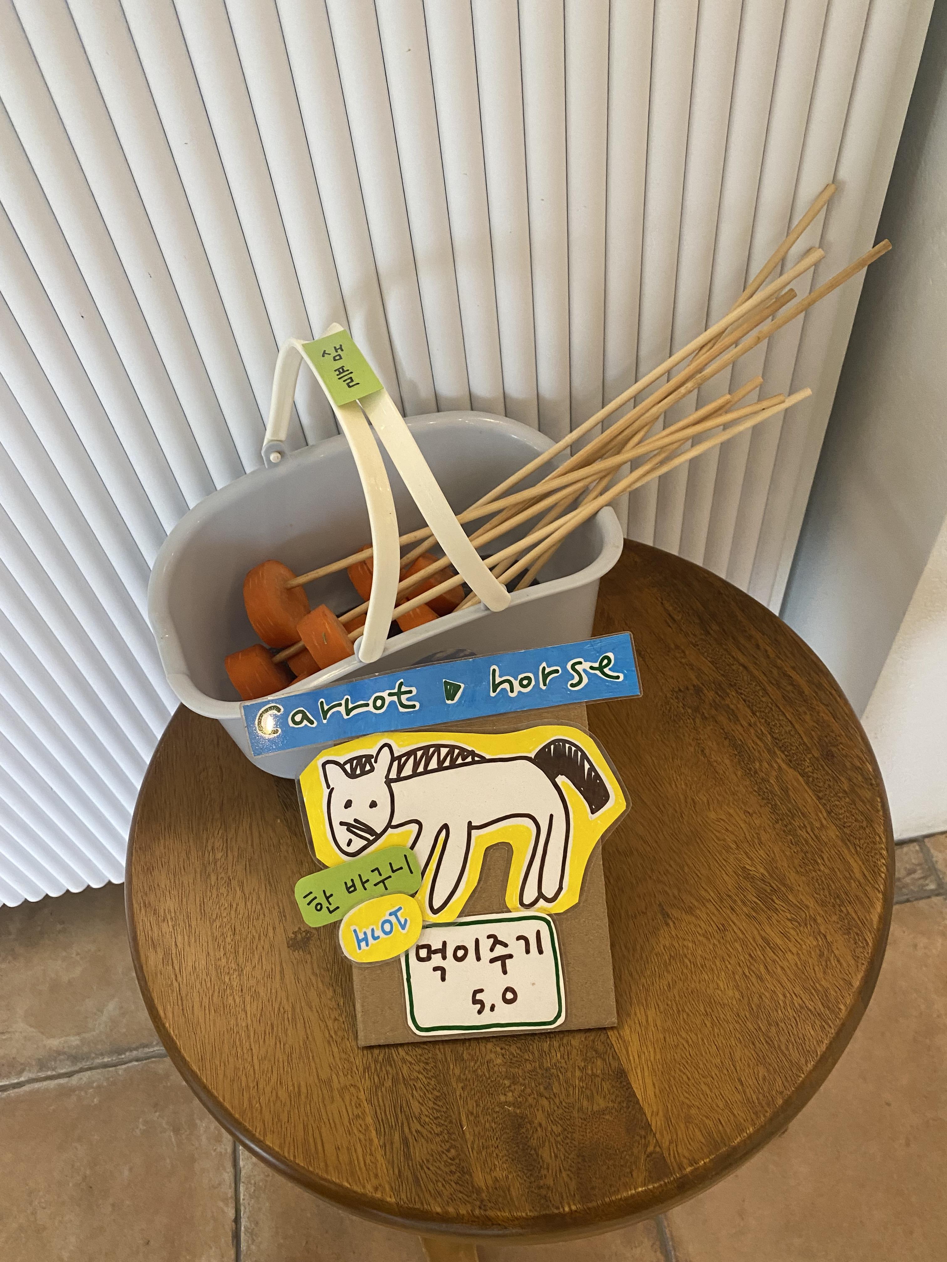 당근 먹이주기 체험도 해봤습니다. 한 바구니 오천 원~~