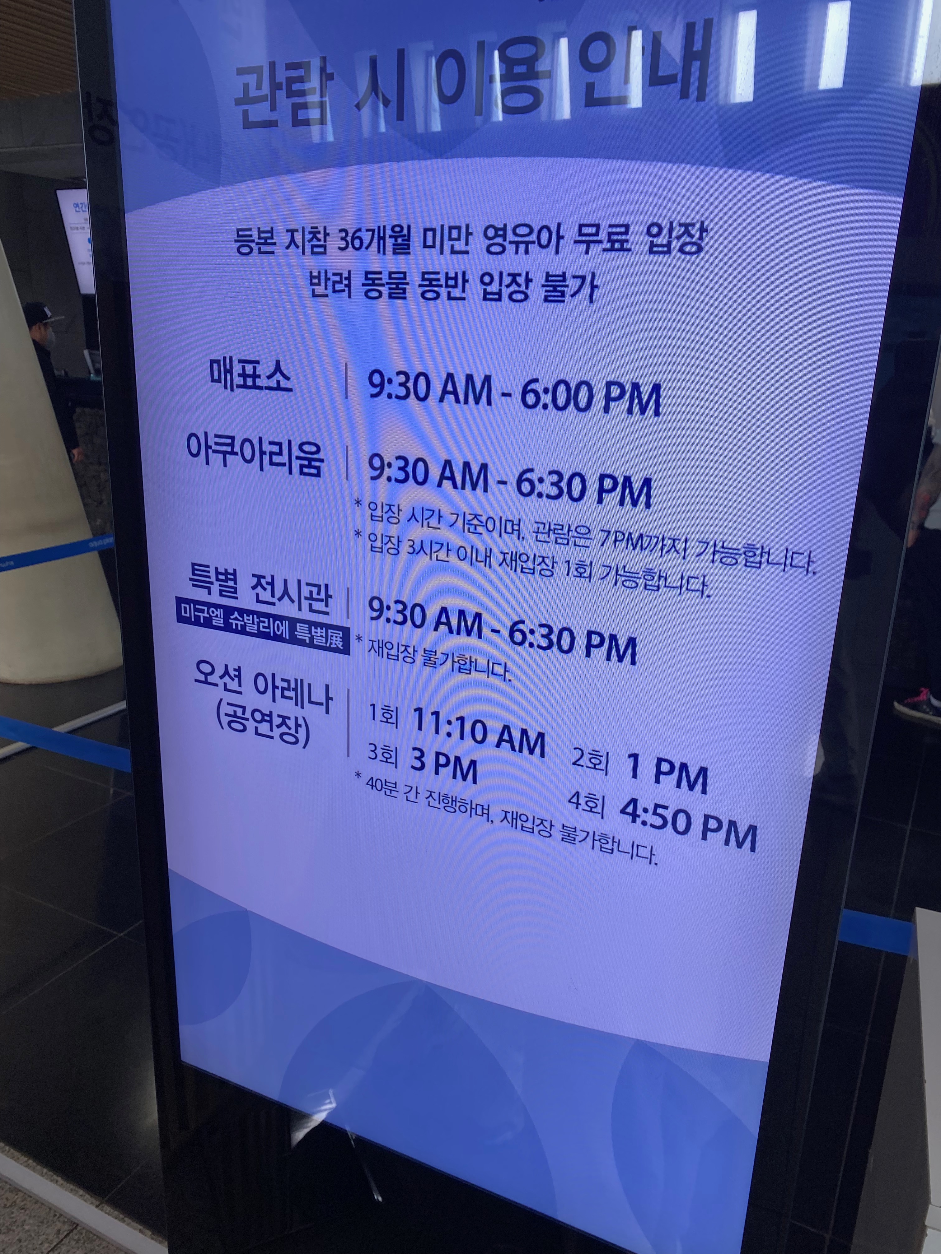 잠시나마 자리에 앉아 숨을 돌리다가 돌아가는 길에 다시 아쿠아리움 실내에 들어가 커다란 가오리 앞에서 인증샷 하나 남겨봤습니다.