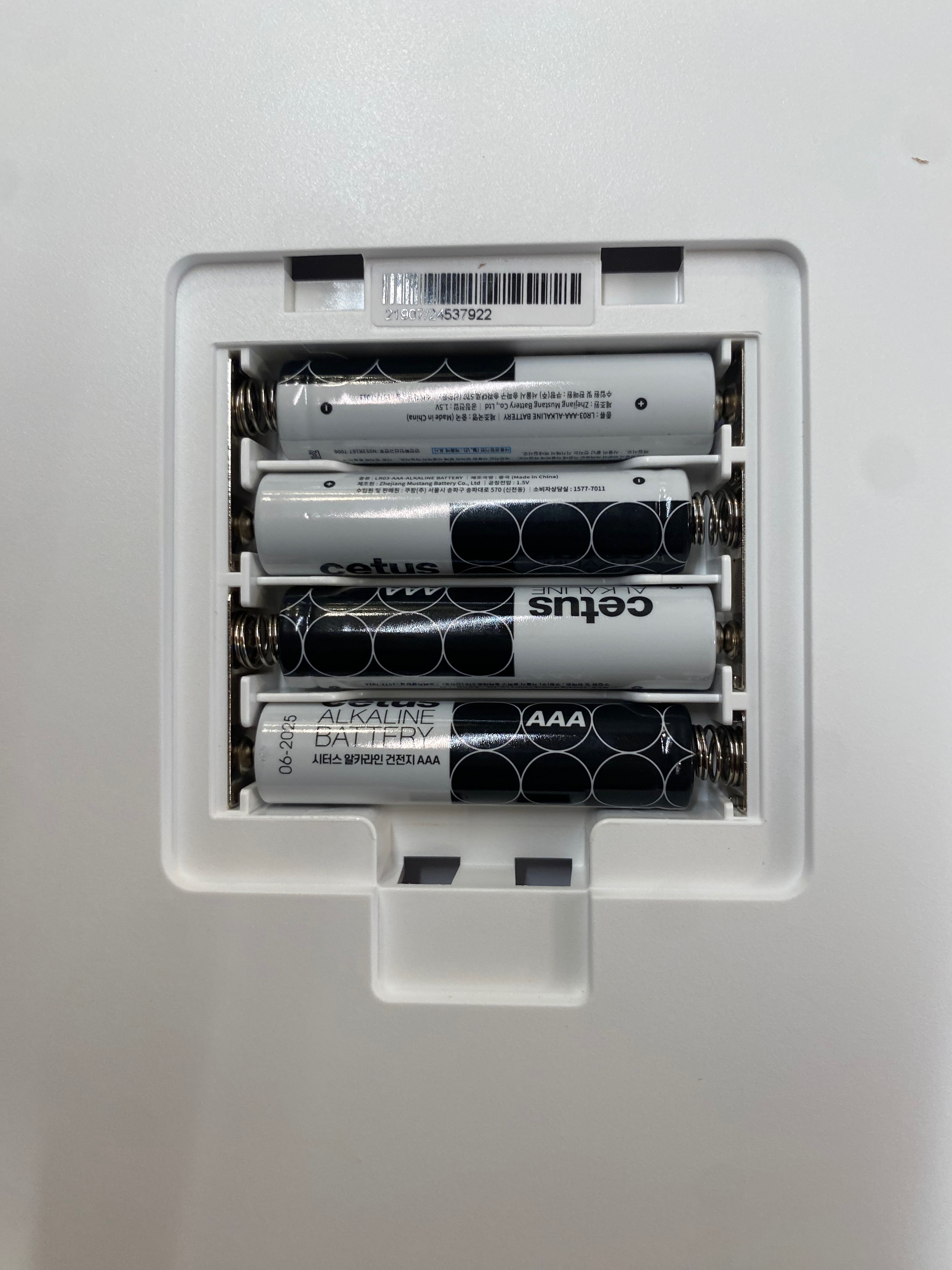 건전지는 안 들어가 있는 제품으로 반드시 건전지 사이즈 AAA 네 개가 필요합니다. 저희 집에는 아이 장난감이 있어서 건전지는 뭐 상시 대기 중이라 바로 사용하는데 어려움이 없었지요.