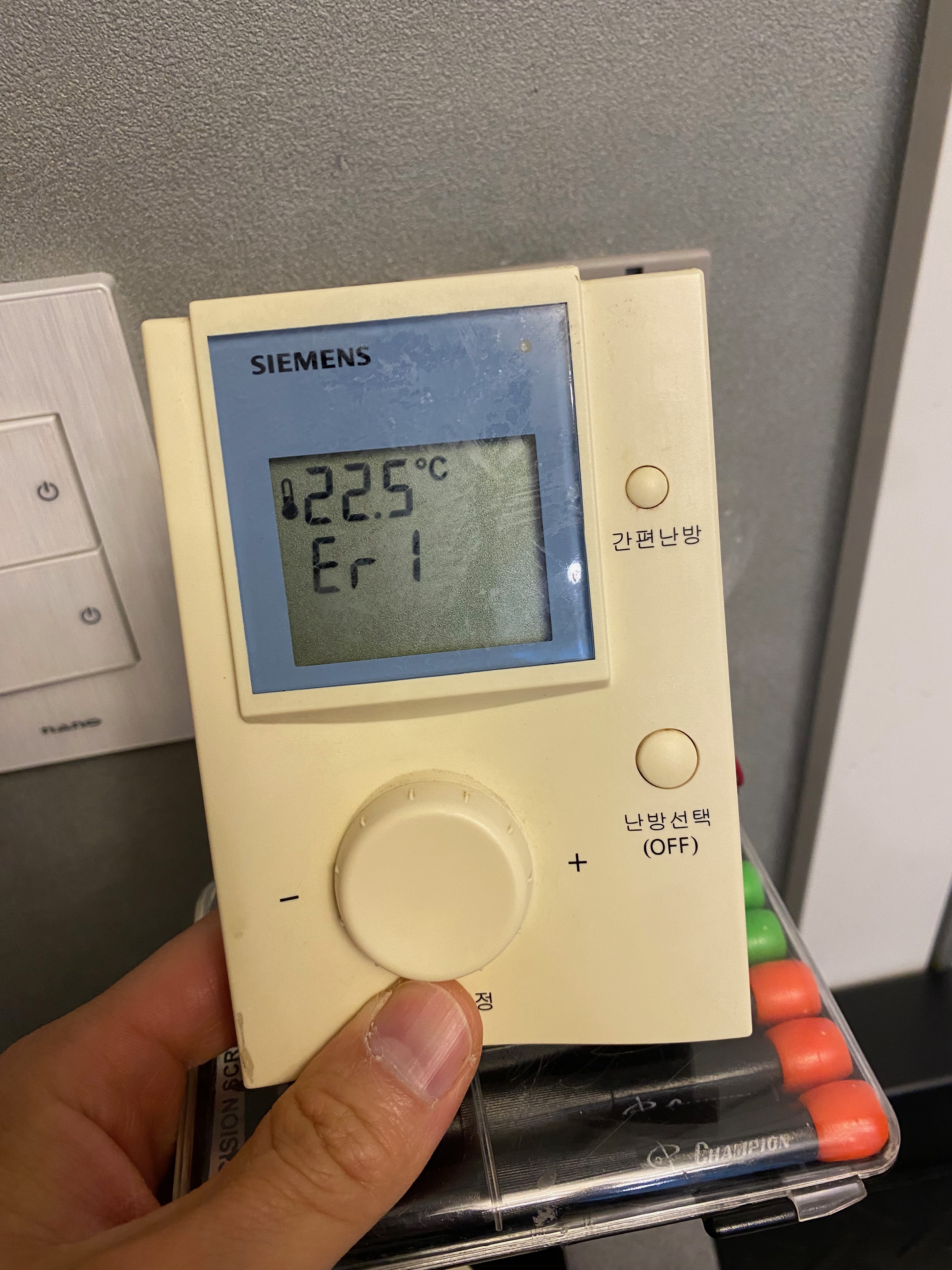 저희 집에 가장 맘에 안 드는 것이 있다면 말이죠~ 바로 보일러 시스템을 지멘스 제품으로 사용하고 있다는 점입니다. 구동기, 조절기, 밸브 제어 상자 모든 게 지멘스 제품인데 다른 건 눈에 띄지 않아서 그러려니 하고 넘어갈 수 있지만 각 방별 설치되어 있는 온도조절기가 참말로 너무 거슬립니다. 색상이 누런 게 그냥 누런 게 아니라 오래되어서 색이 바랜 누런 그런 색상의 조절기인데요 바꾸고 싶어도 가격이 너무 비싸서 함부로 하지도 못합니다ㅠㅠ 오늘은 그 온도 조절기에 관한 이야기를 해보겠습니다.