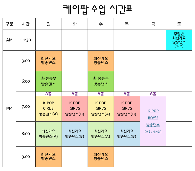 겨울 특강반에는 중고등 및 대학생들이 관심을 많이 가지게 되는데요, 스케줄 잘 보시고 최대한 빨리 수강신청을 하면 내년 2월 중순까지 최신 케이팝 안무를 최대한 많이 배울 수 있습니다. 특히 대학교 신입생 장기자랑 준비를 하는데 겨울 특강반이 도움 많이 되실 거예요^^