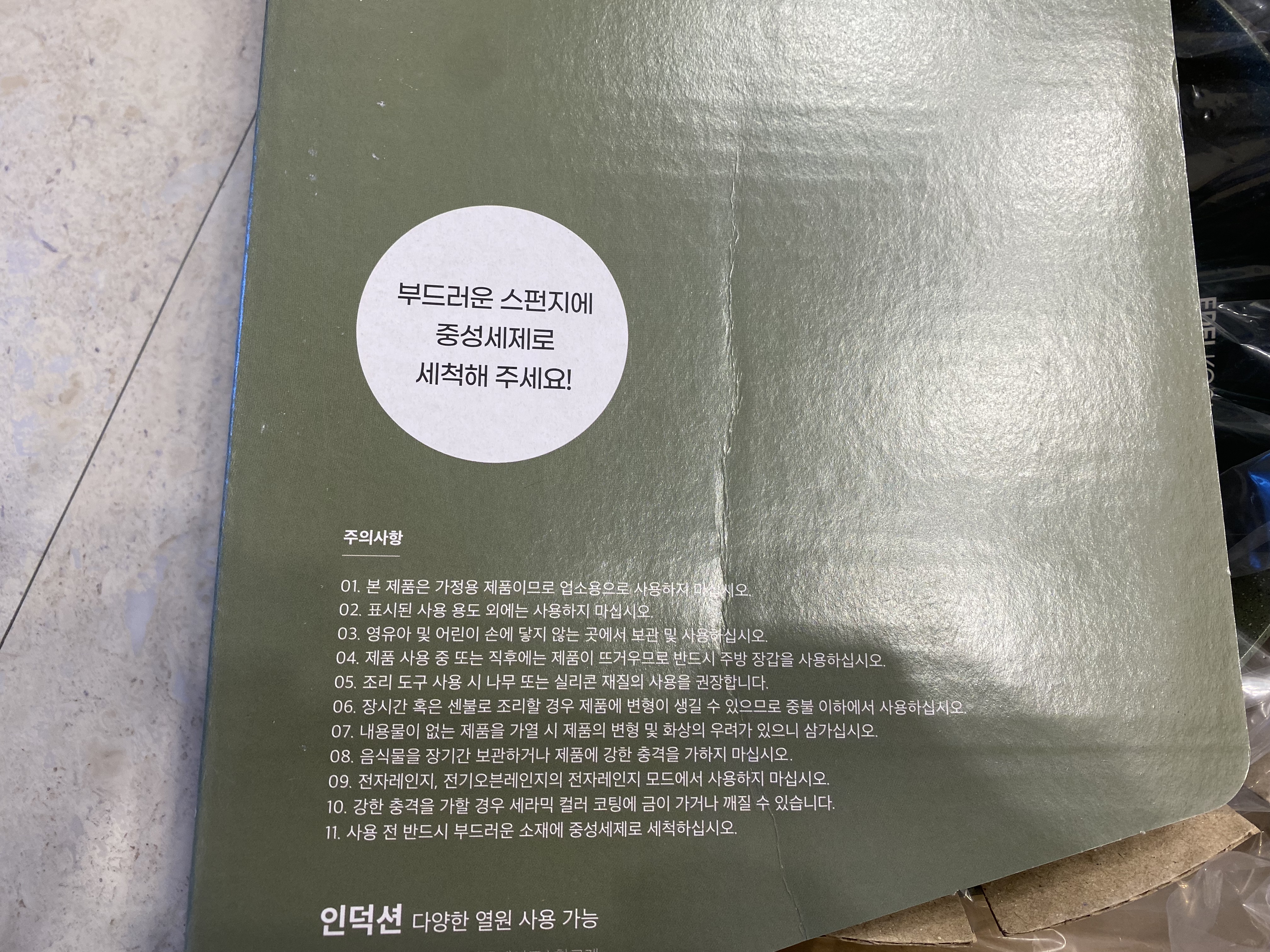 이제껏 프라이팬은 바닥이 검은 코팅이 되어있는 제품을 사용했는데 그린 색상의 세라믹 코팅 프라이팬은 다소 생소하게 느껴졌습니다.