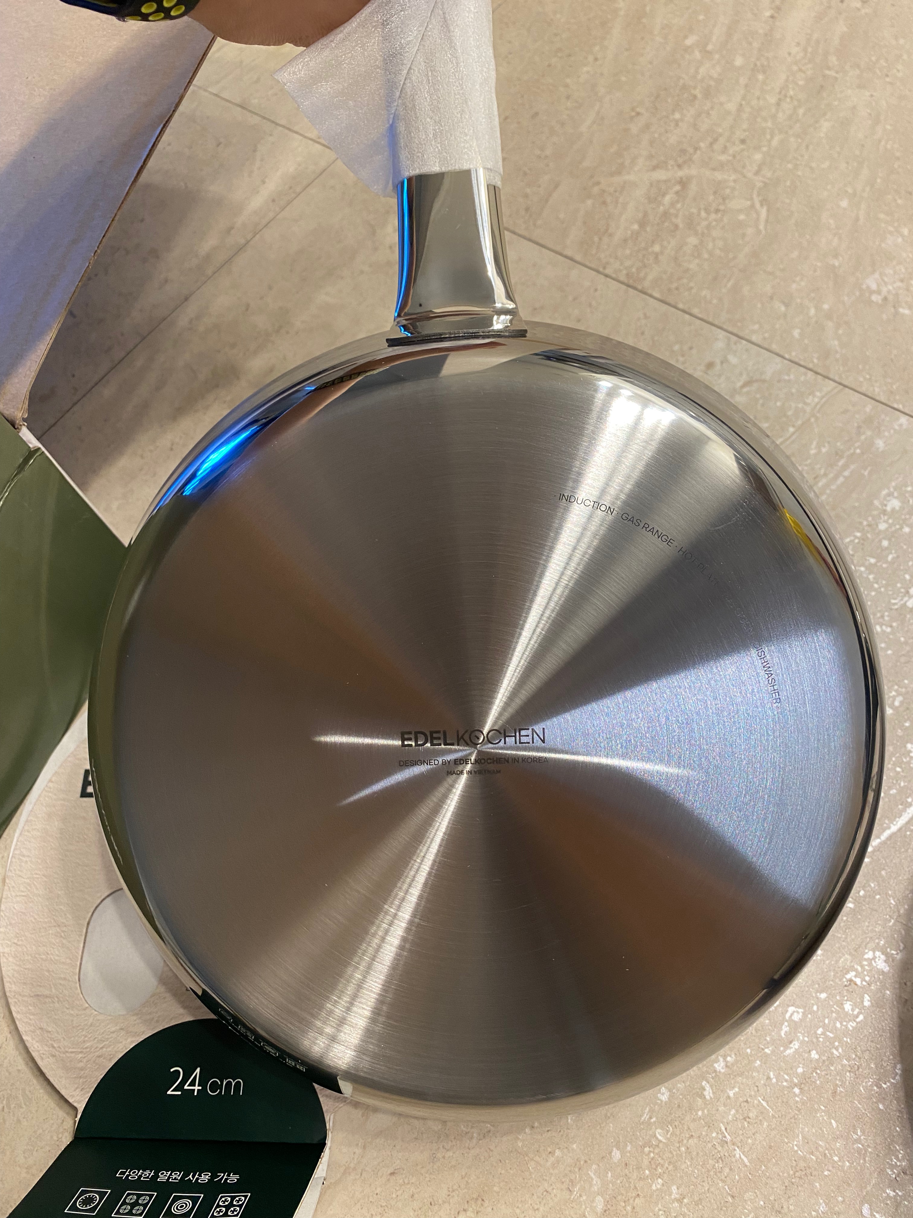 바닥면이 세라믹 코팅이 된 거 외에는 손잡이부터 몽땅 스테인리스로 되어 있는 제품입니다.