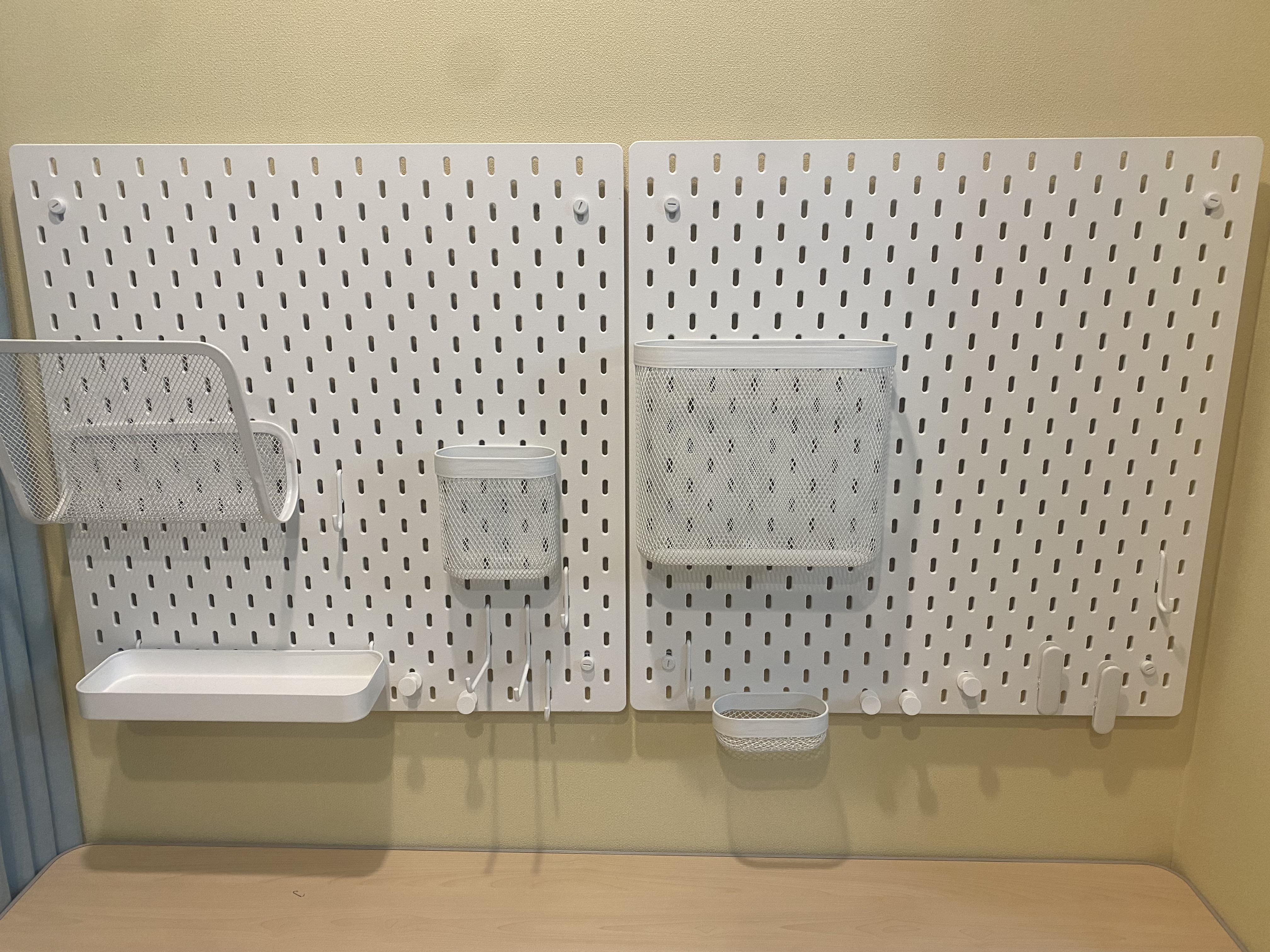 급하게 이것저것 담아온 타공판에 설치할 아이템들을 아들이 열심히 설치해 봤습니다. 나름 본인 생각에 요건 저기로 이건 또 저짝에~ 뭐 이렇게 구성해 봤는데요, 확실히 타공판만 있을 때 보다 훨씬 더 공부방 책상 다워졌다랄까요? 이제 저 타공판 위에 벽 서랍장을 설치해 주면 완벽하게 공사가 끝날 거 같은데요, 이케아에서 벽 서랍장을 열심히 알아보고 있지만 맘에 딱 드는 제품을 아직 발견하지 못해서 당분간 빈 공간은 남겨둬야겠습니다. 다이 난이도는 장비빨에 따라서 초급 또는 초중급 정도 될듯합니다. 설명서 보고 열심히 잘 만드는 분들이라면 이 정도 다이는 암것도 아니겠죠? 아빠는 조립하는 맛에 이케아 가구를 좋아하는 것 같고 아들은 자기방 책상이 이쁘게 채워지고 있어서 좋아하네요. 암튼 이케아 가성비 스코디스 타공판 초초초 강추해 봅니다!!!!