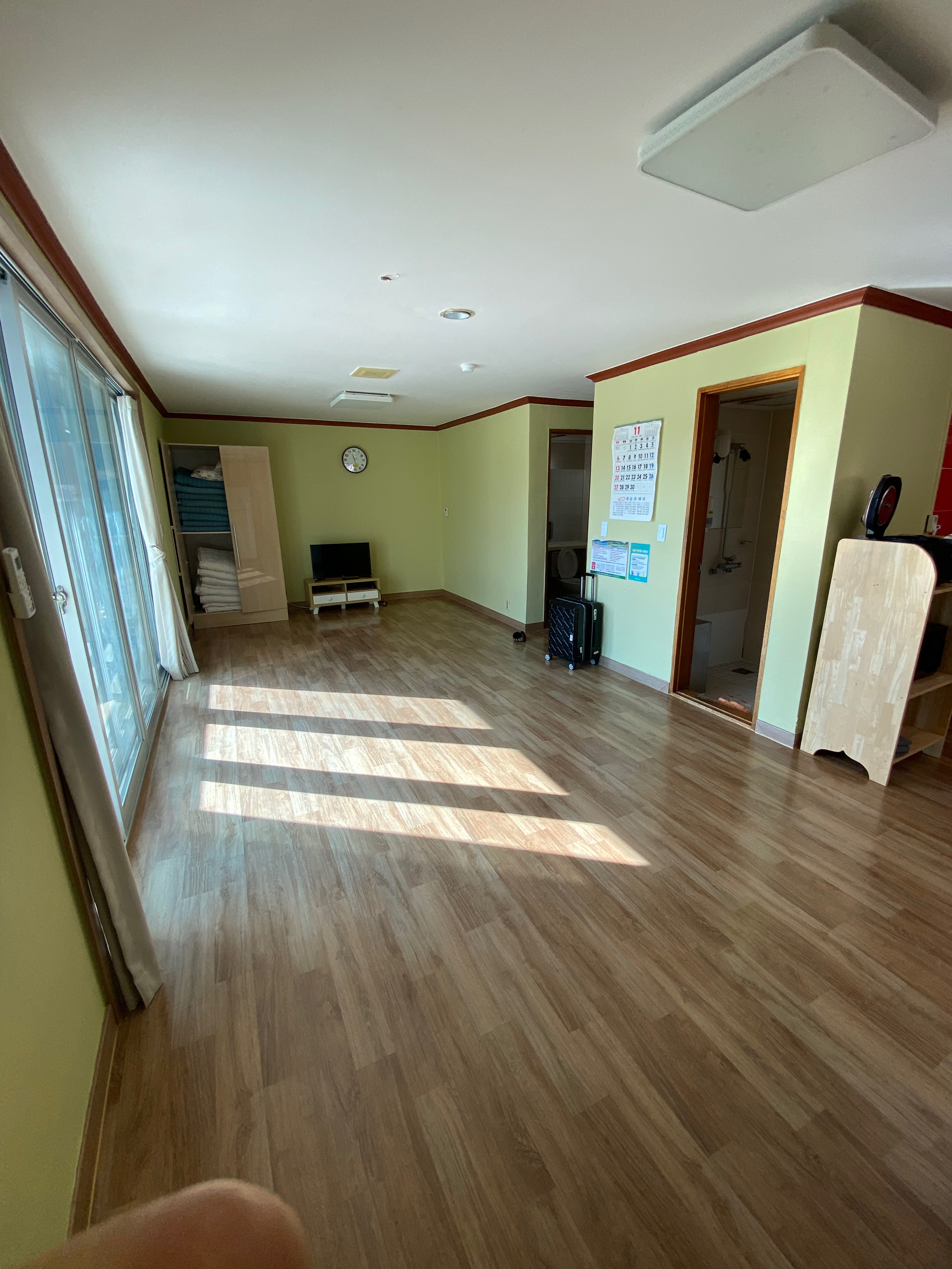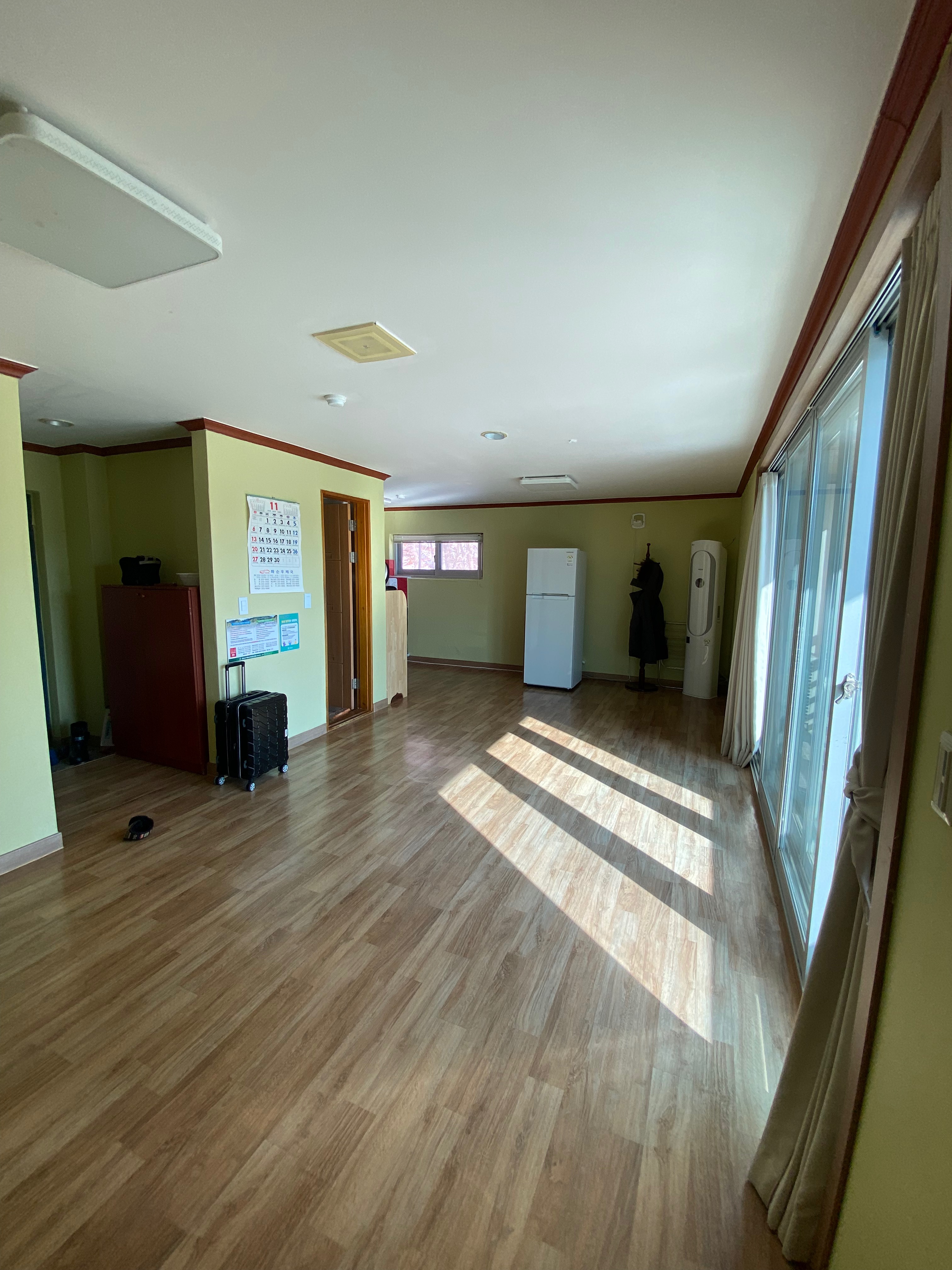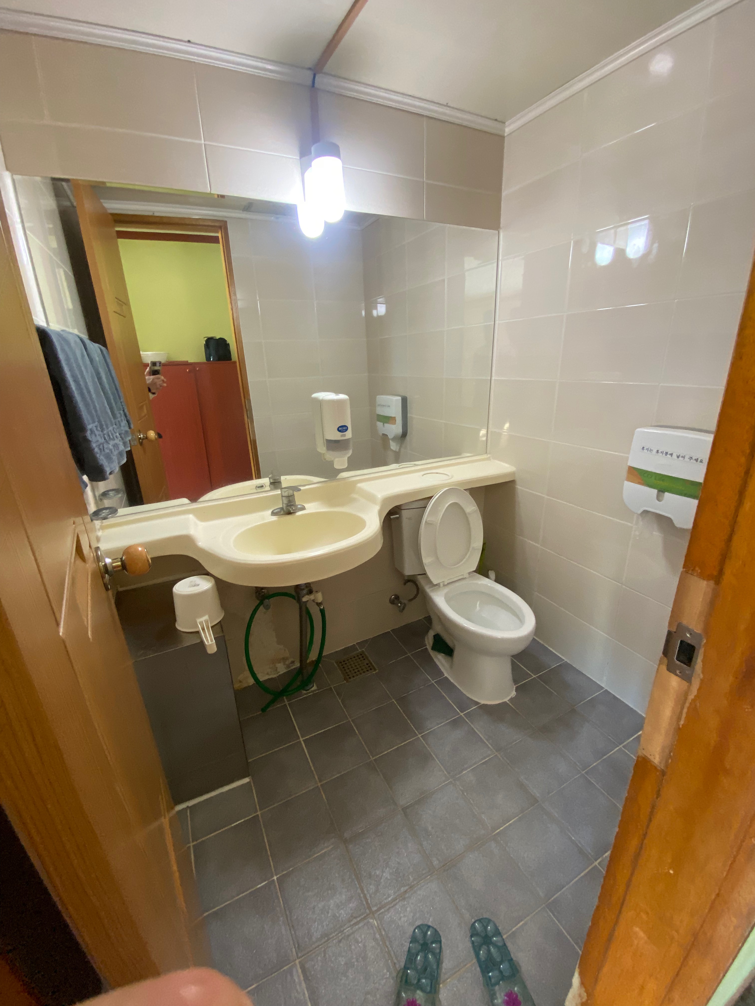 깜박하고 102호 문 사진을 빼먹었는데 문 열고 나서부터 모든 사진은 기록되어 있습니다. 확실히 건물이 낡아 보였는데 실내 내부도 낡은 상태입니다. 리모델링을 심각히 고려해 봐야 하겠습니다. 화장실과 샤워실이 따로 분리가 되어 있다는 점이 좀 특이하고 기~일쭉한 방모양 보이시나요?