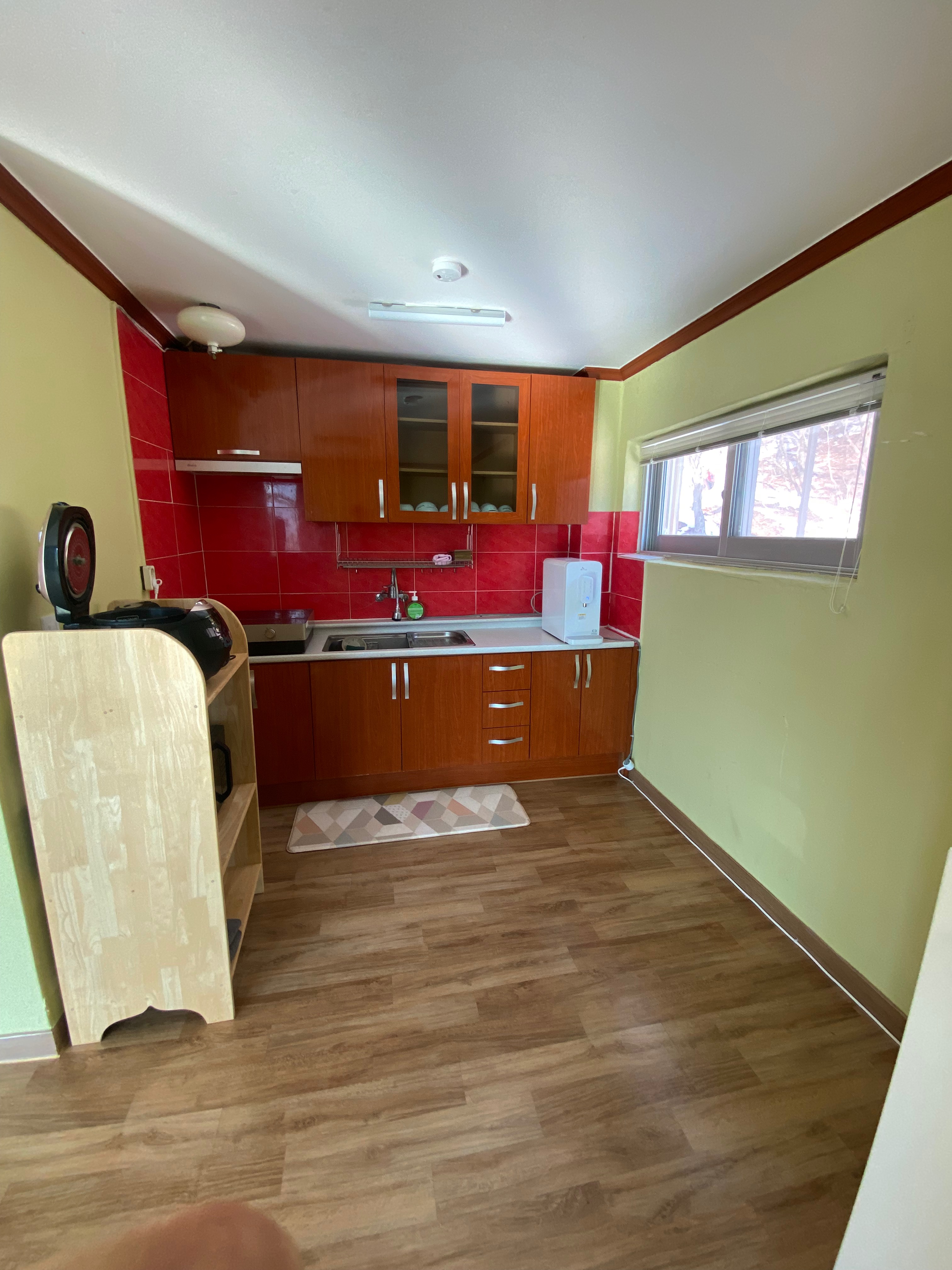 숲속수련원은 1층과 2층으로 숙소가 나눠져 있는데 저희는 1층 102호를 체크인했습니다. 1층과 2층 가장 큰 차이점은 아마도 8인용 숙소 / 4인용 숙소로 인원 차이가 남에 따른 방 크기가 아닐까 생각됩니다. 겨울 짐이 한짐이라 저희 가족 세 식구지만 널찍한 8인용 숙소를 원했기에 1층을 잡았지요. 다음날 체크아웃 하면서 알게 된 사실은 2층 숙소는 주차장으로 바로 연결되는 길이 있어서 짐을 옮기고 싣는데 한결 편한데 1층은 무거운 짐 낑낑거리며 돌계단을 힘들게 올라가 숙소로 겨우 짐을 옮길 수가 있었습니다. 짐을 옮기는데 상당히 불편한 구조랄까요??