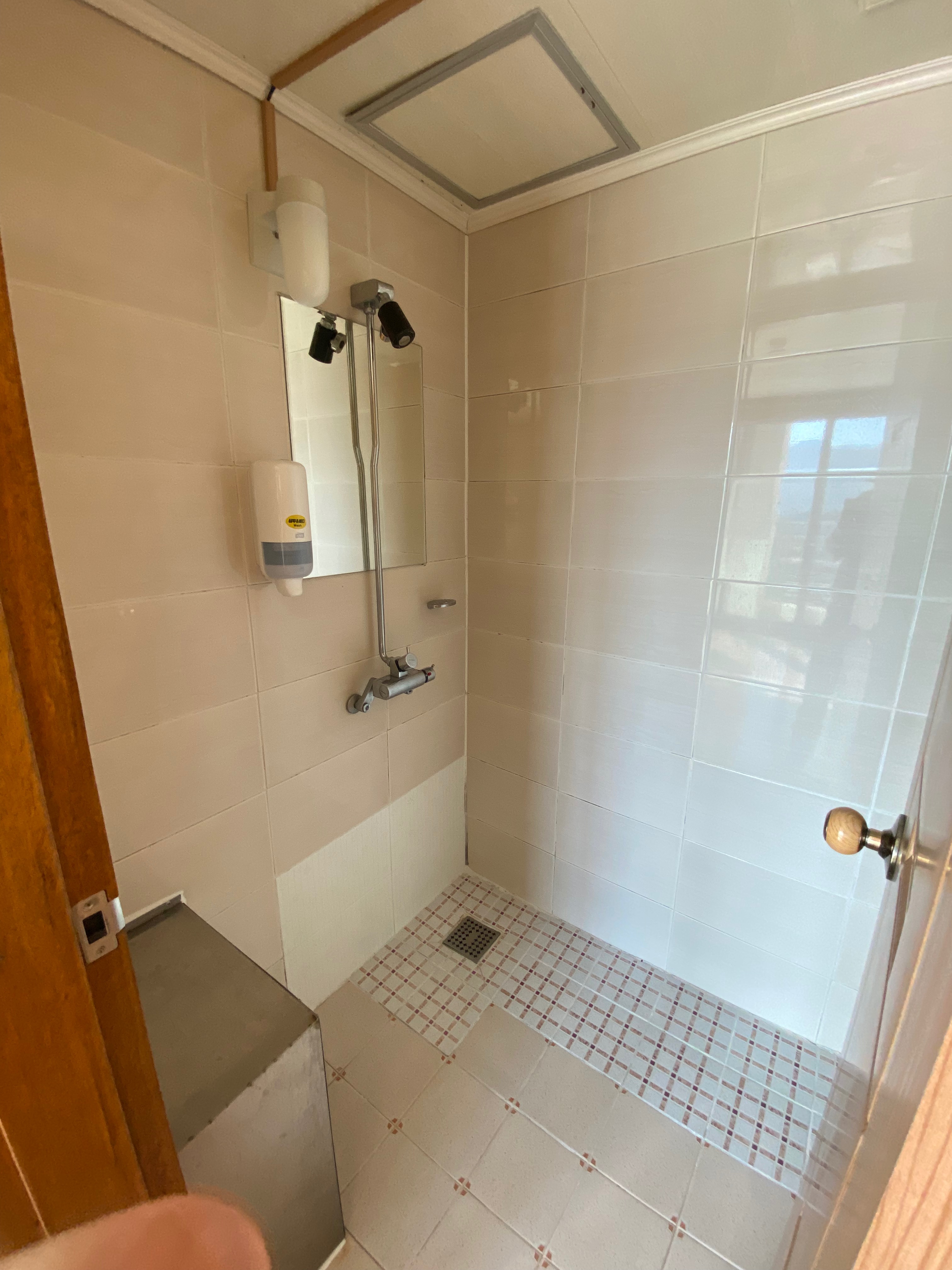 여기가 바로 화장실과 별개로 독립된 샤워실입니다. 햇볕도 잘 들어오고 방에 들어서면 훈기가 도는 게 일단 따숩습니다^^ 오래된 방이라 조금 독특한 냄새가 나지만 그래도 뭐 이 정도면 충분히 지낼만하고 깨끗하게 잘 관리돼있는 숲속 수련원이네요.