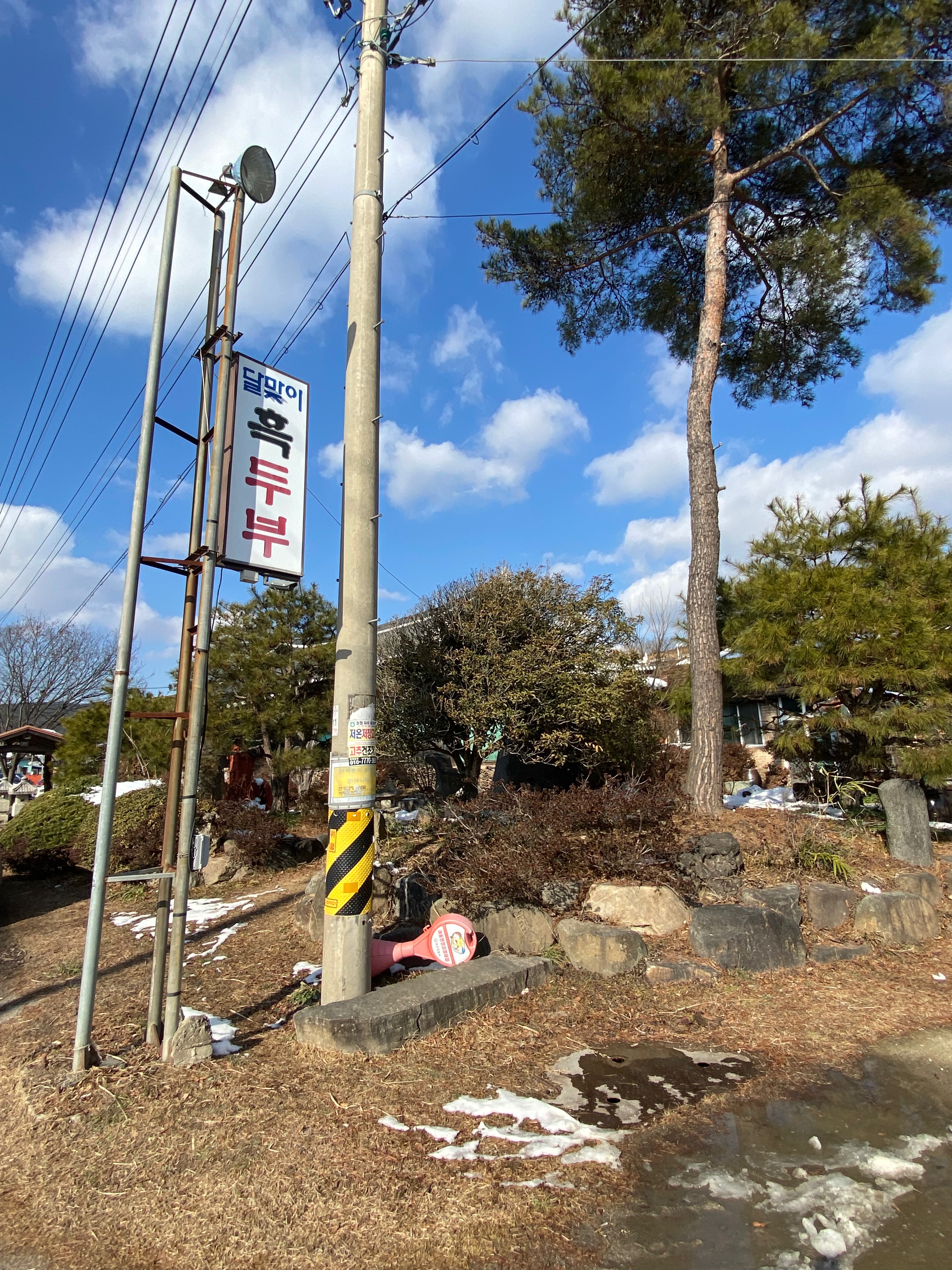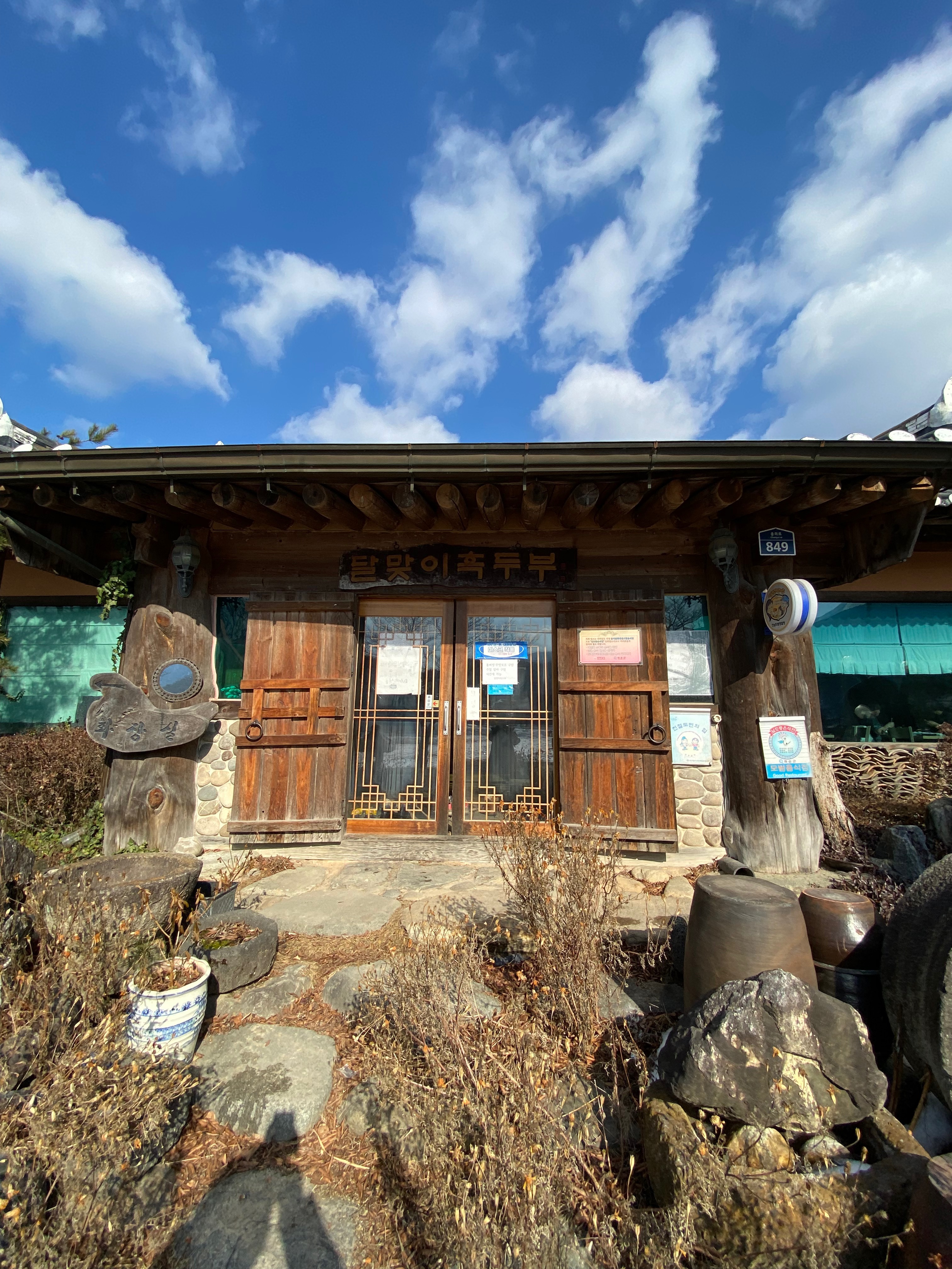 식당으로 가는 길 내내 진짜 화순이 시골이긴 시골이구나~ 생각이 많이 들면서 지방 소멸이 바로 눈앞에 보였습니다. 즐거운 여행 도중 사회문제가 눈앞에 바로 확인이 되니 걱정이 ..... 그러다 갑자가 눈앞에 달맞이 흑두부 식당이 눈에 딱!! 맛집 앞에 왔는데 걱정은 일단 접어두기로 하고 점심 한 끼에 집중해 볼까요?