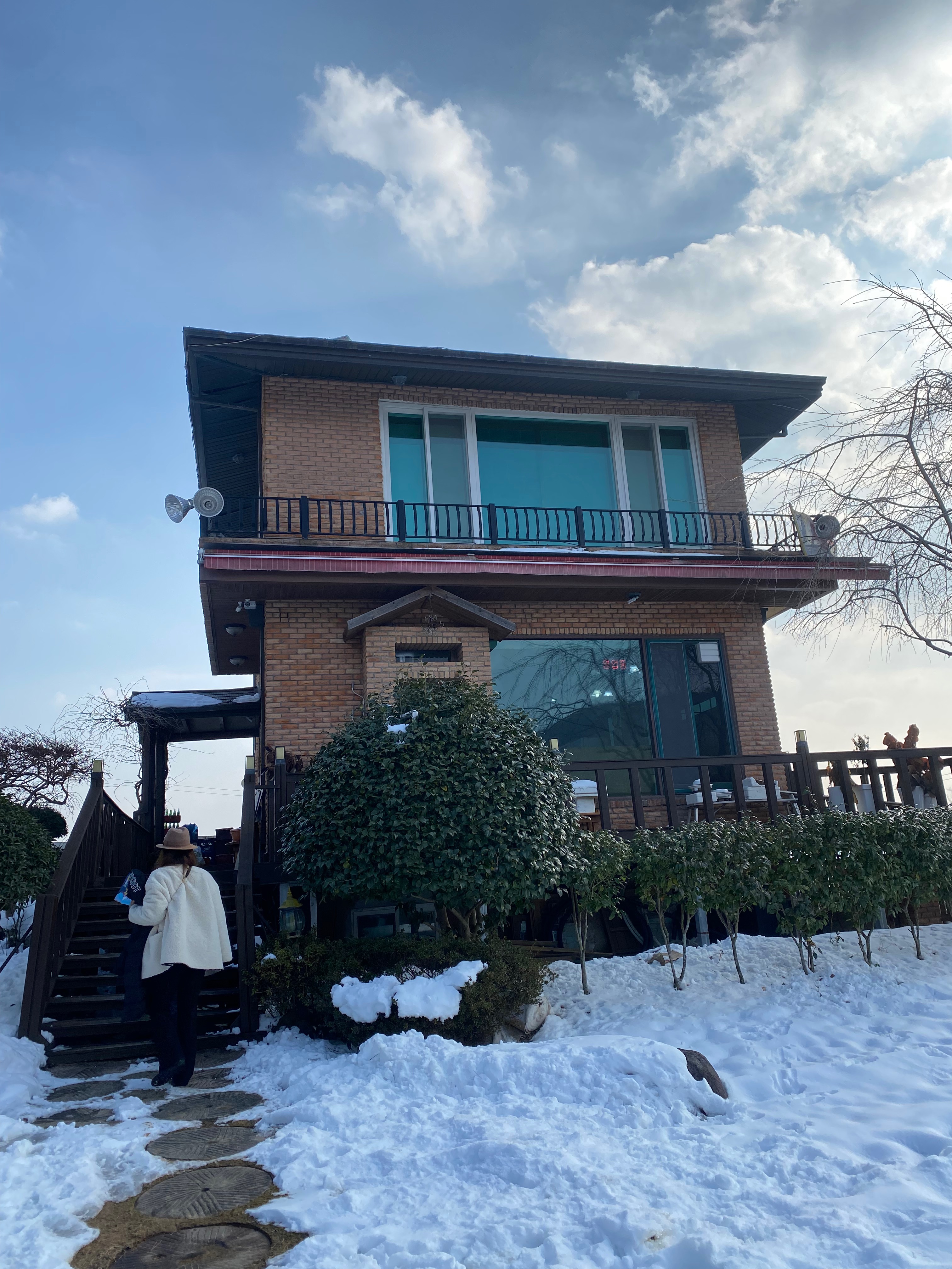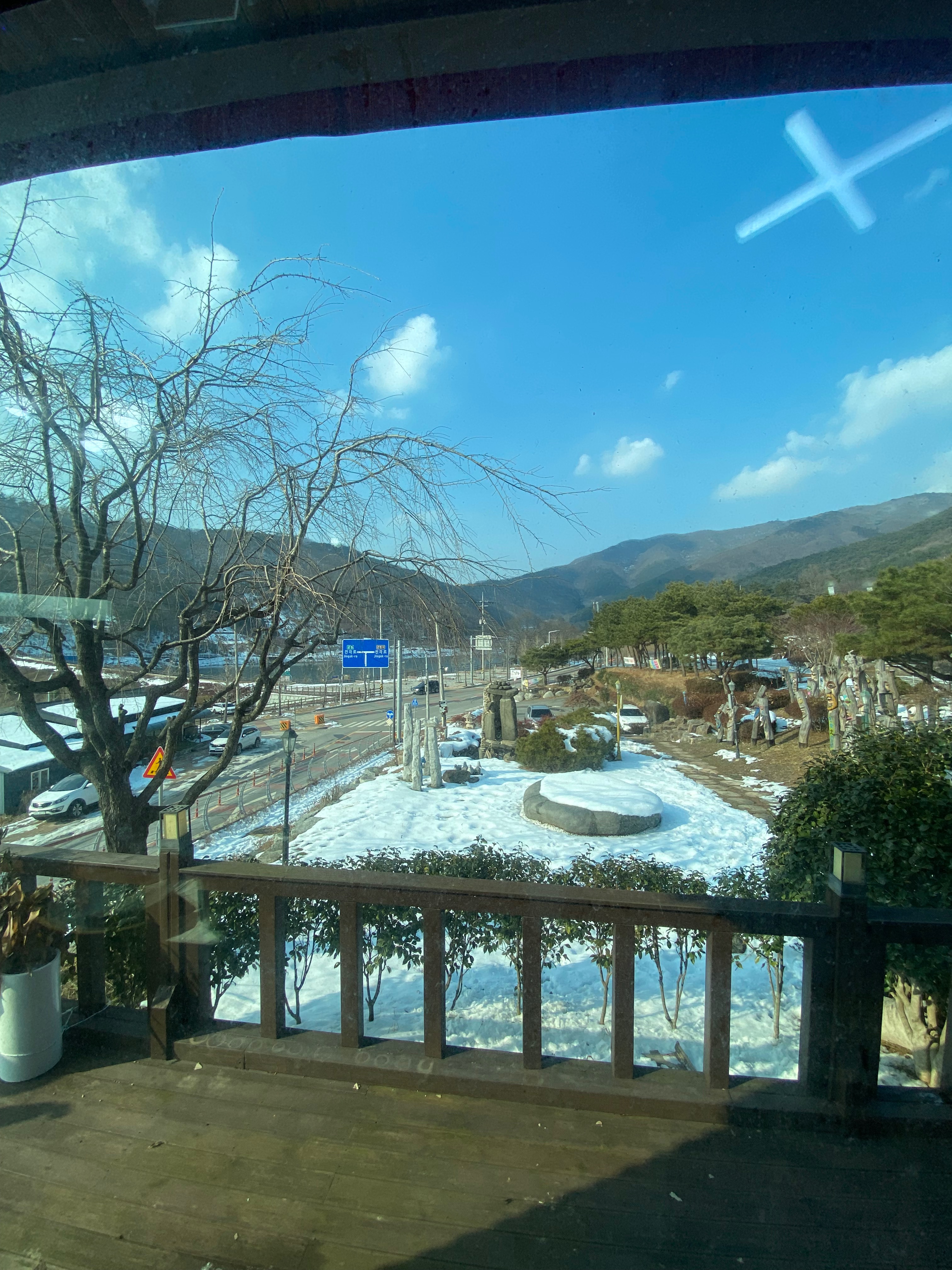손님은 아무도 없고 저희 가족뿐이어서 이 동네 눈이 넘 많이와서 손님이 일찍 끊기는구나~~ 생각이 들더군요. 창밖 뷰가 아직 눈이 많이 왔었다고 흔적이 남아있네요.