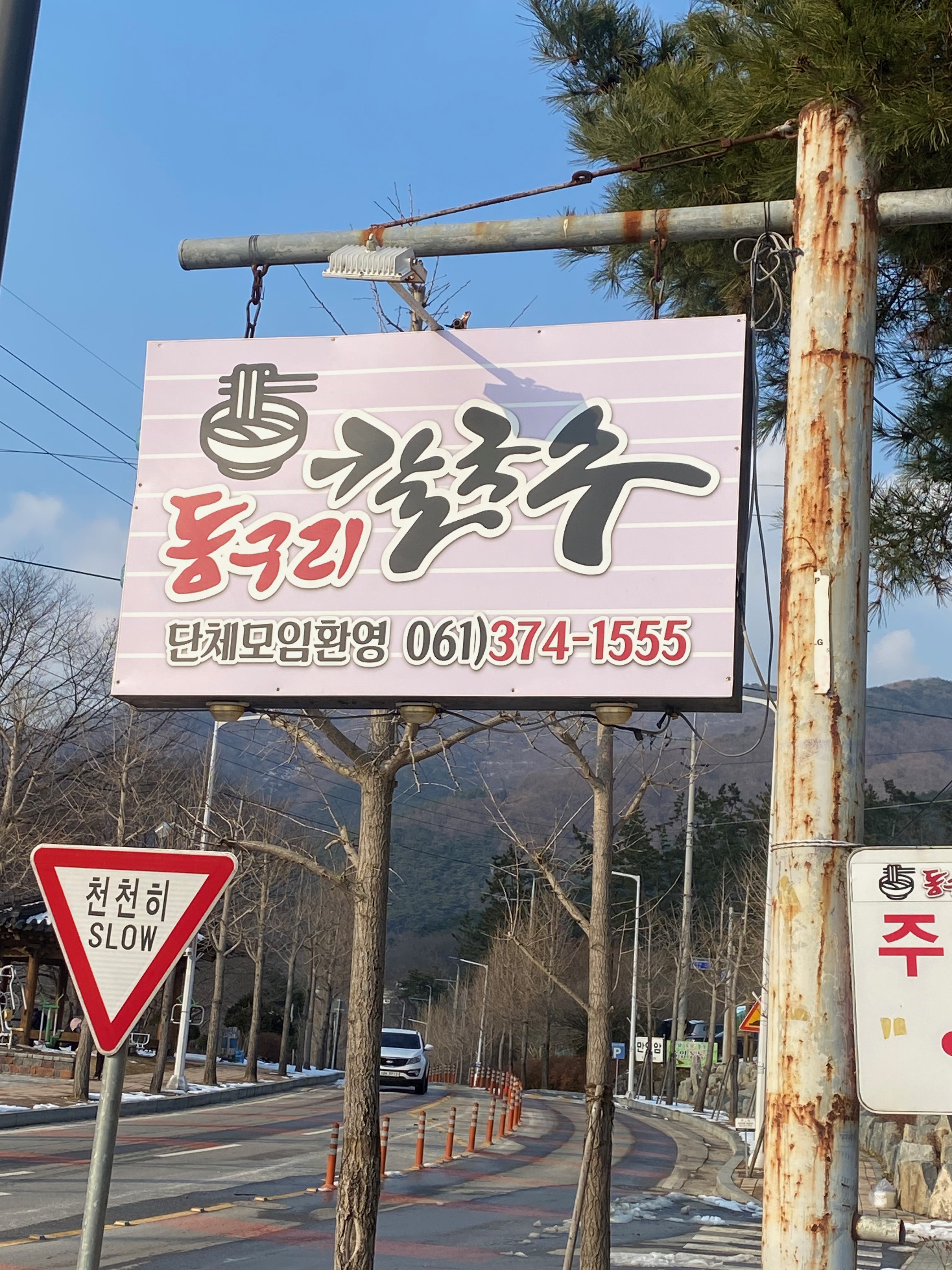 그렇게 셋째 날 모든 계획은 다 날라가고 쌀쌀한 날씨에 뜨끈한 국물이 간절히 생각나서 만연사 올라오는 길에 봐놨던 칼국숫집에 가서 점심 한 끼 해결하기로 했지요. 오늘 바로 소개할 '동구리 칼국수' 식당 되겠습니다.