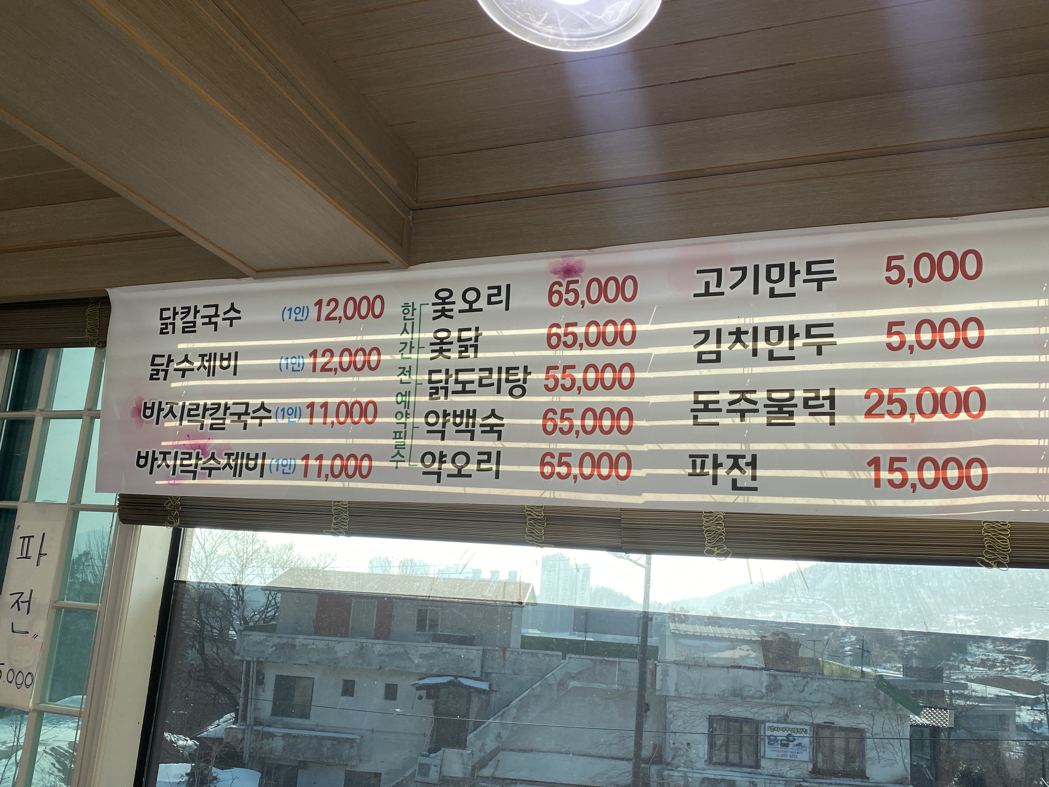 닭칼국수가 눈에 바로 띄어서 주저 없이 닭칼국수 2인분 시켰습니다.