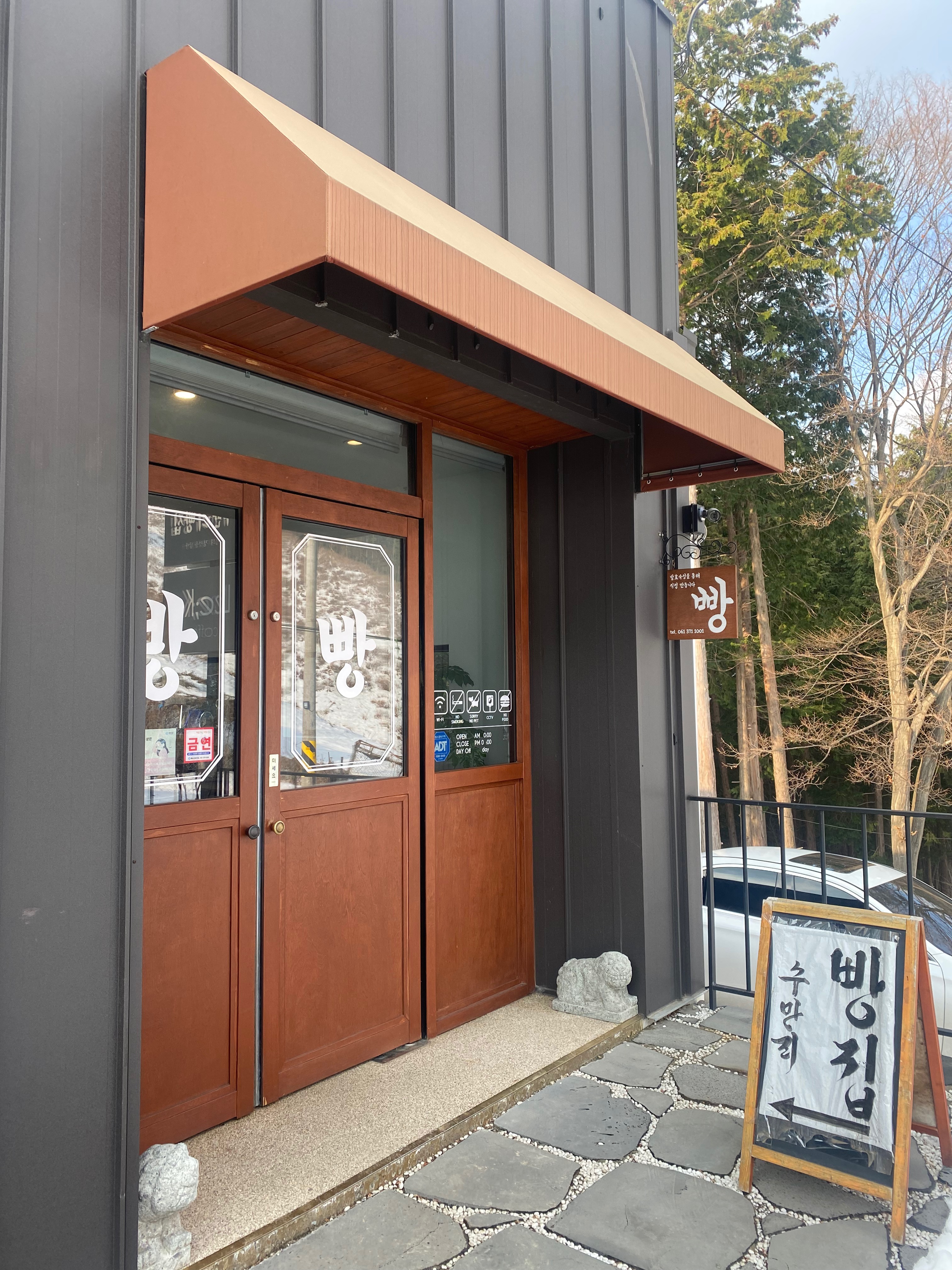 도로가에 수만리 빵집 간판을 보고 따라 들어가니 넓은 주차장이 나왔고요 편하게 주차를 한 후 수만리 빵집까지 다시 걸어가야 했습니다. 그런데 웬일.... 나오라는 빵집은 안 나오고 Lee;Ko 카페가 보이는데요 수만리 빵집은 일종의 샵엔샵 개념으로 카페 건물의 사이드 일부분을 사용 중이었습니다. 카페 입구 바로 옆에 수만리 빵집 입구가 있습니다.