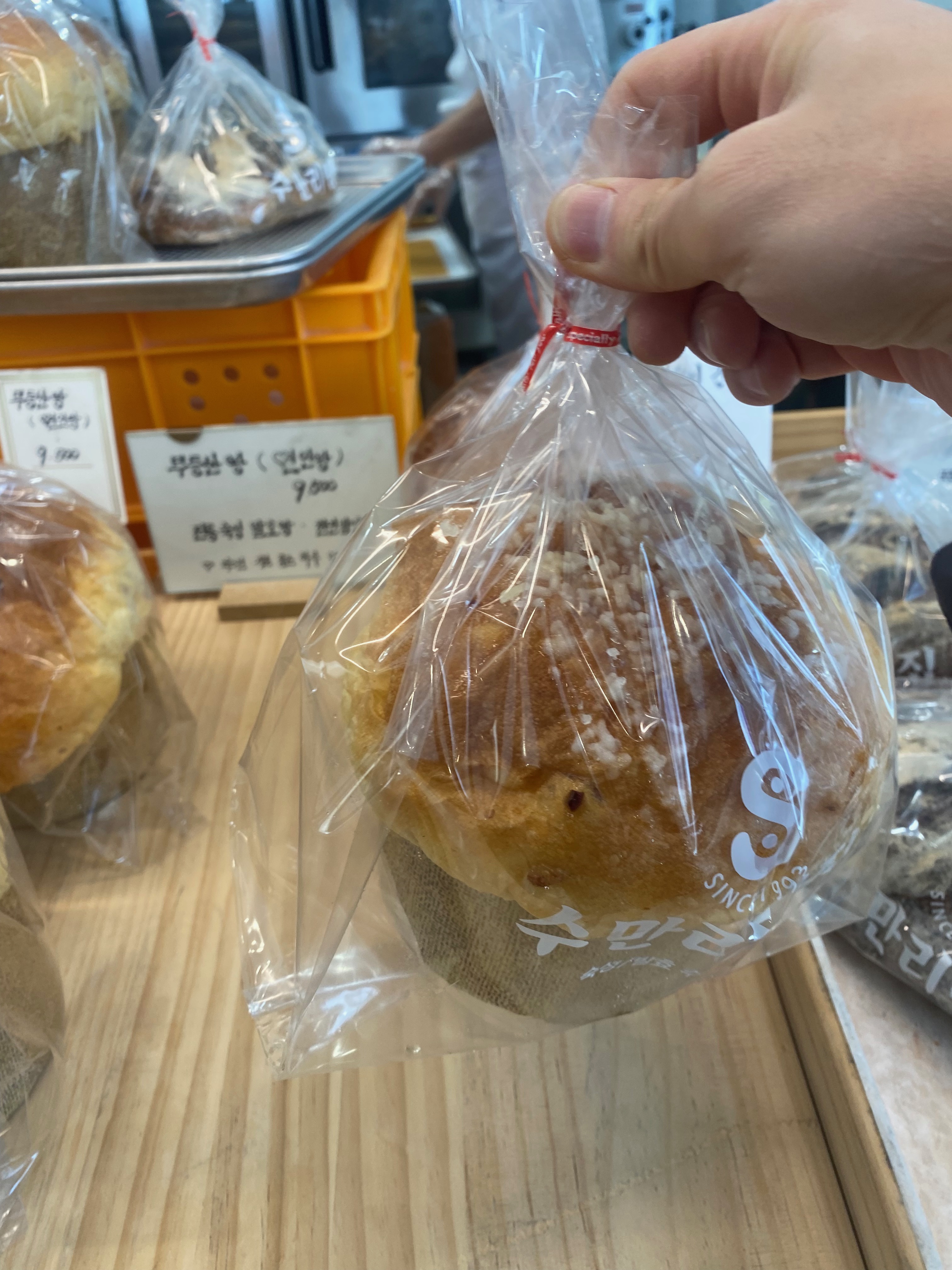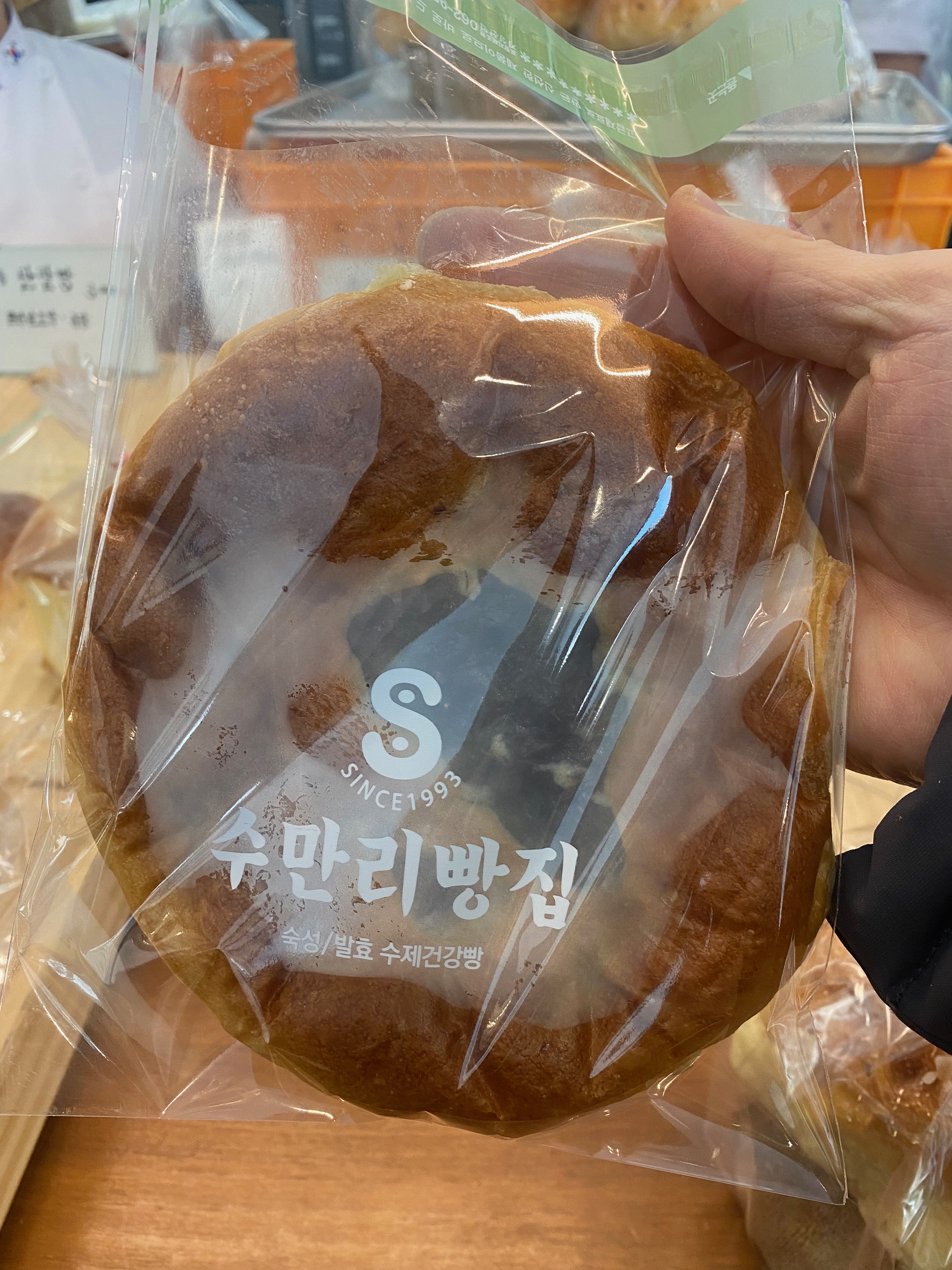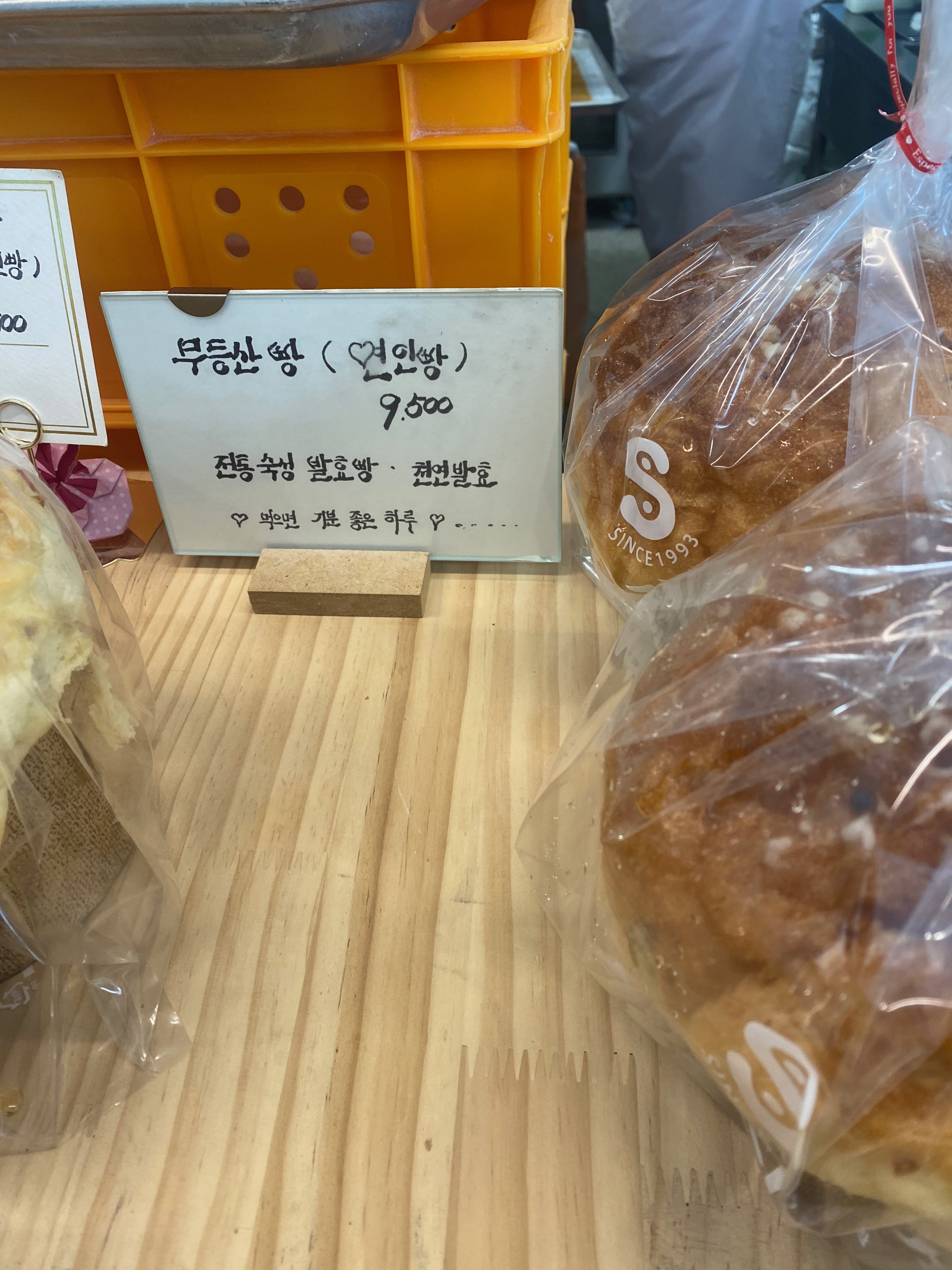 빵집 규모가 생각보다 작아서 살짝 의심이 들었습니다. 빵 종류도 그렇게 많지가 않았거든요. 전체 빵 사진을 찍으려다가 저희가 샀던 빵 두 종류만 촬영을 했습니다. 무등산 빵이라는 이집 시그니처 빵이고 가장 발효를 오래 시킨 방식으로 빵을 만들었다면서... 인기 메뉴라고 하더군요.