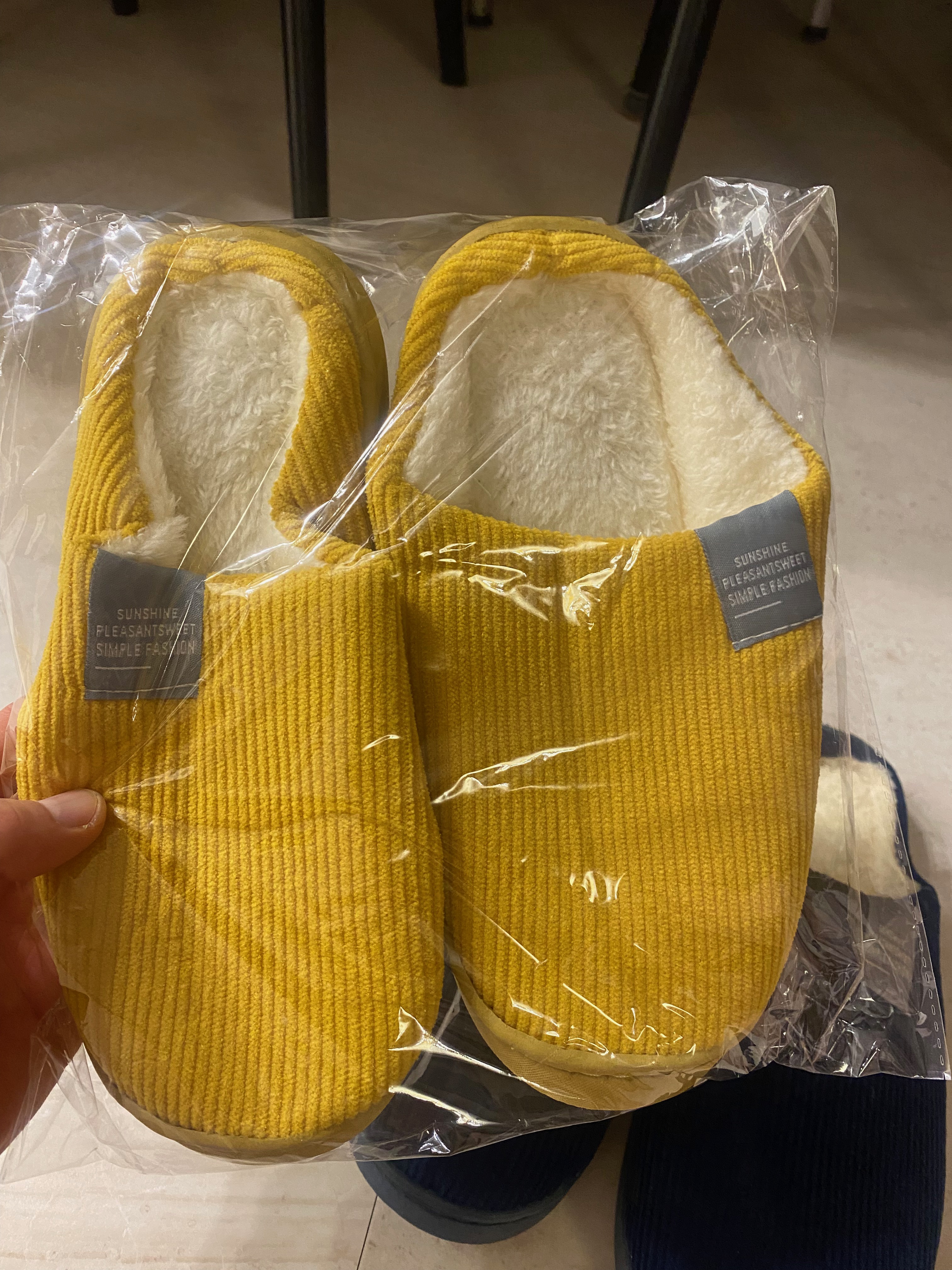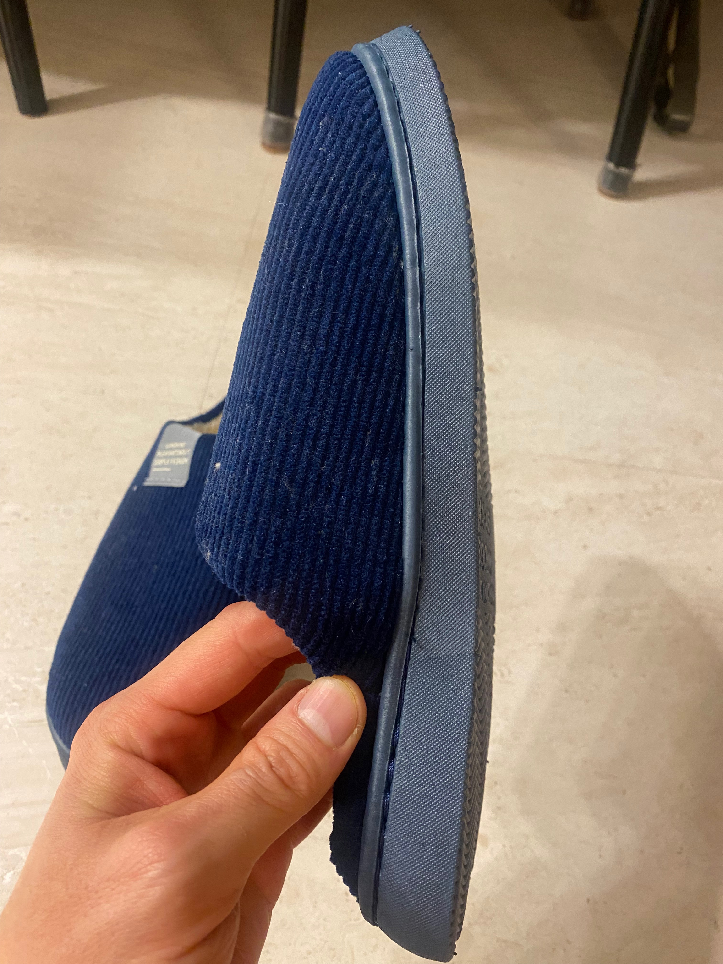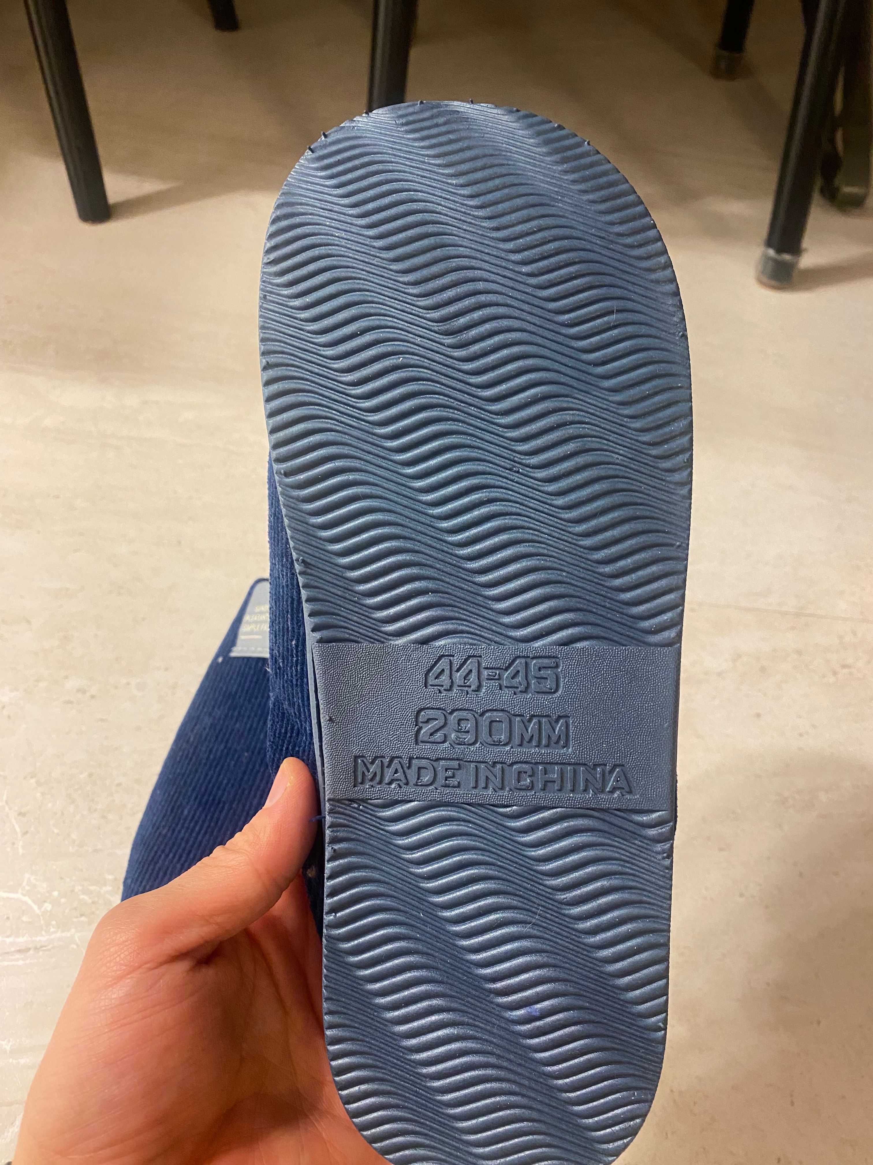 바닥면에 신발 표기가 되어 있고 밑창이 사진에서는 살짝 도톰한 게 쿠션감이 있게 보이는데 신다 보면 쿠션이 금세 죽습니다. 일반 겨울 실내화 쿠션과 비슷하다고 보시면 되겠네요.