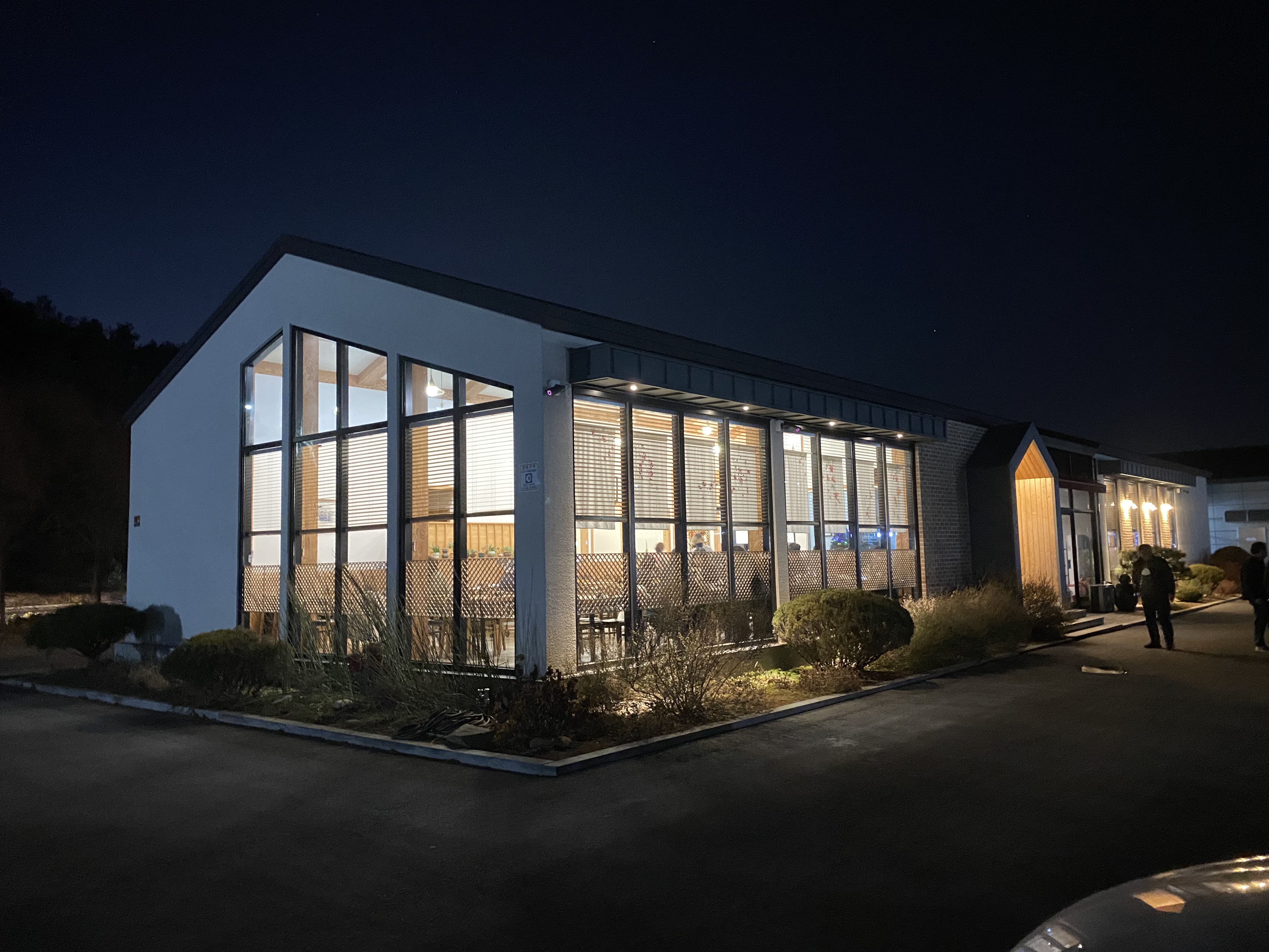 저녁 7시도 안되었는데 칠흑같이 깜깜한 밤이 되어 버렸습니다. 간판은 글자만 겨우 담을 수 있었고 건물은 마치 뭐랄까.... 공장 건물을 리모델링 했다고 할까요? 아님 식물원 같은 곳을 리모델링해서 식당으로 만들었다랄까요? 암튼 상호와는 전혀 딴판의 분위기 좋은 식당이었습니다. 실내로 들어가 보니 탁 트인 공간에 많은 테이블이 있었는데 거의 만석에 가까운 사람들로 붐비는 중이었죠.