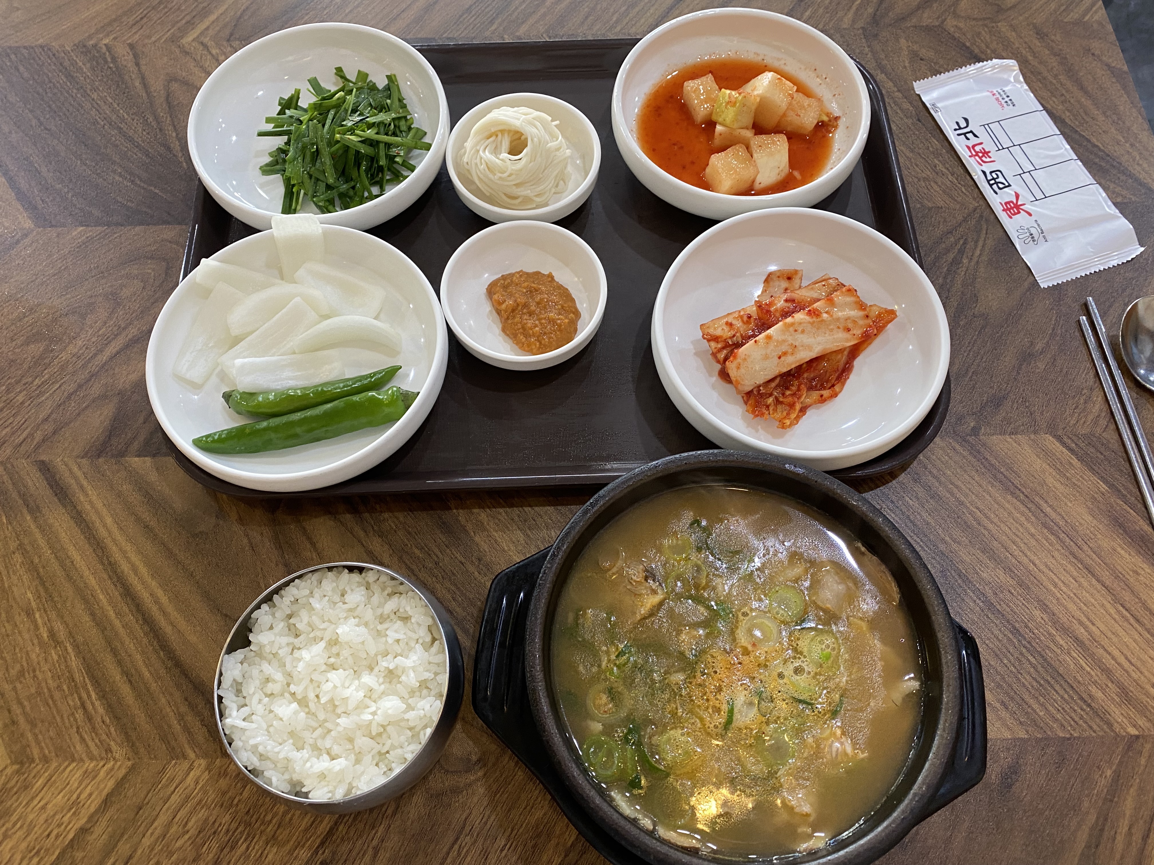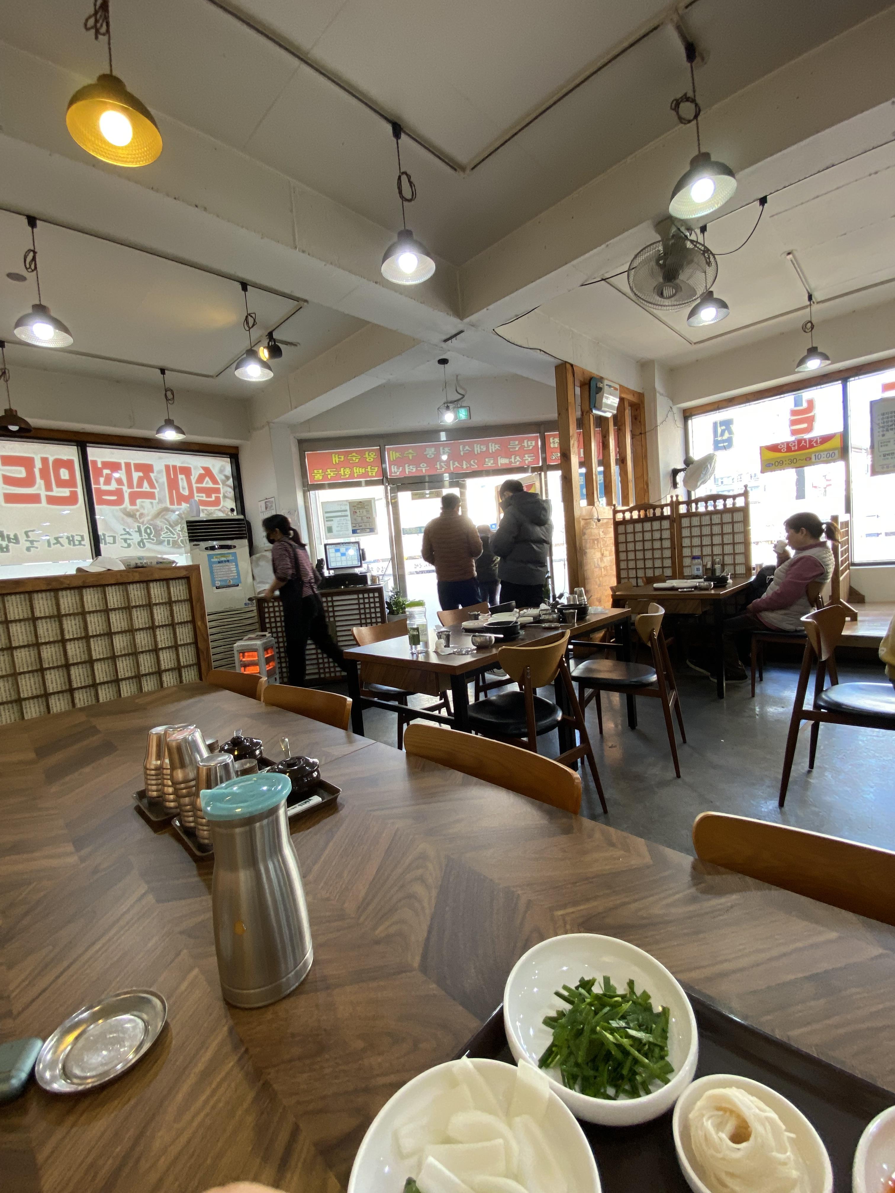 뭘 먹을까 잠시 고르다 순대 국밥을 시켰습니다. 수제 순대라서 국밥도 맛있을 거 같다는 기대를 했거든요. 사진상으론 국밥이 영 맛없게 나왔는데 말이죠~~ 요건 기본 세팅된 상태에서 그냥 찍어서 그런 겁니다.