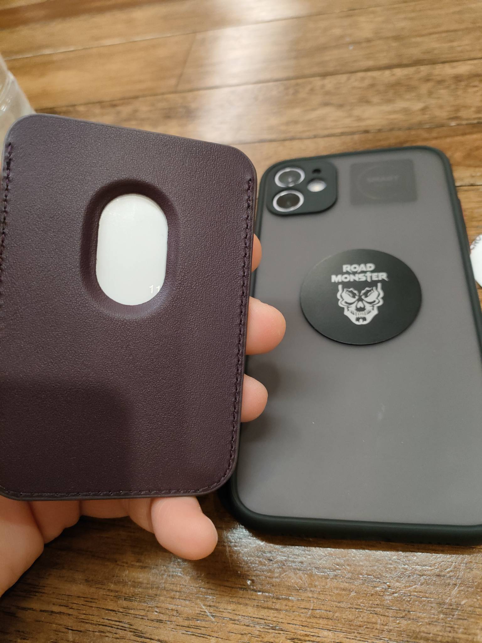 요 사진은 자석 플레이트 위에 거치된 지갑이 아니라 스틸 마그네틱 자석 위에 거치된 지갑 사진입니다. 옆모습 보시면 완전 뜬 공간 없이 착 붙어 있는 거 알아보시겠죠? 그런데 자석 플레이트 위에 거치된 지갑은 과장 좀 많이 해서 공중에 붕 떠있는 모습이었습니다. 요것도 사진으로 남겨놨어야 하는 건데.... 너무 쉽게 분리되는 문제도 있었고 툭 튀어나온 모습이 보기 싫어서 하루 사용해 보고 이건 아니다 싶어서 바로 폐기처분했습니다. 그러고 나서 저 핸드폰 케이스에서는 그냥 자석 거치대 기능을 살리기 위해 붙인 스틸 마그네틱 자석이 바로 신의 한 수였던 셈이죠. 자성도 엄청 강하고 완전 슬림 해서 일체감 굿!! 잘 떨어지지 않아서 안전성도 굿! 거기다 차량 자석 거치대도 겸용으로 사용할 수 있게 되어서 더더욱 굿!! 암튼 맥세이프 자석 플레이트를 구입하려는 분들에게는 차라리 자석 플레이트가 들어가 있는 케이스를 구입하시라 권해드립니다. 요것도 후기로 올릴 건데 사진만 먼저 보여드릴게요.