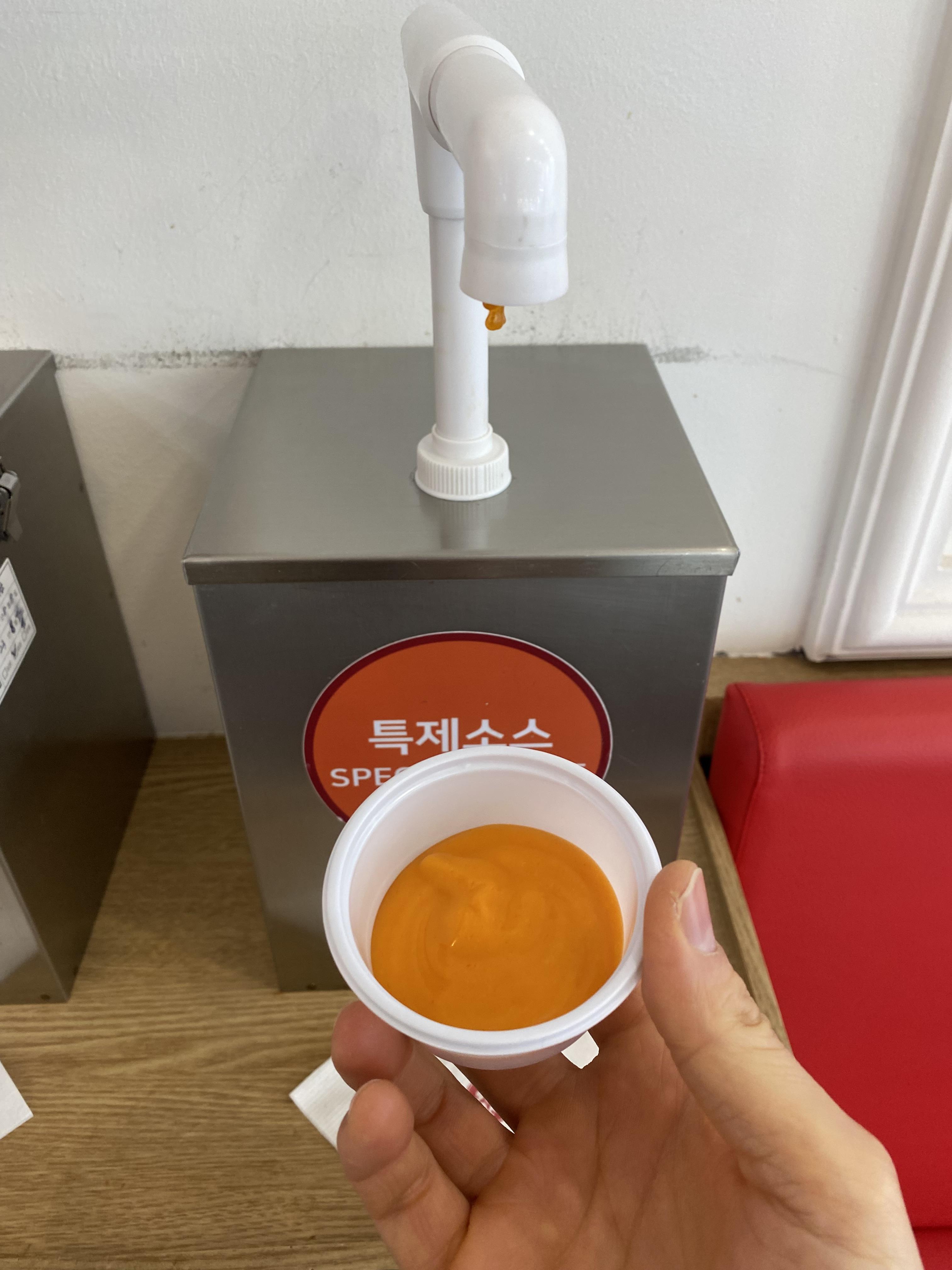 프라이드에 찍어 먹는 소스가 총 3가지 준비되어 있는데 전 특제소스로 셀프 바를 이용했습니다.