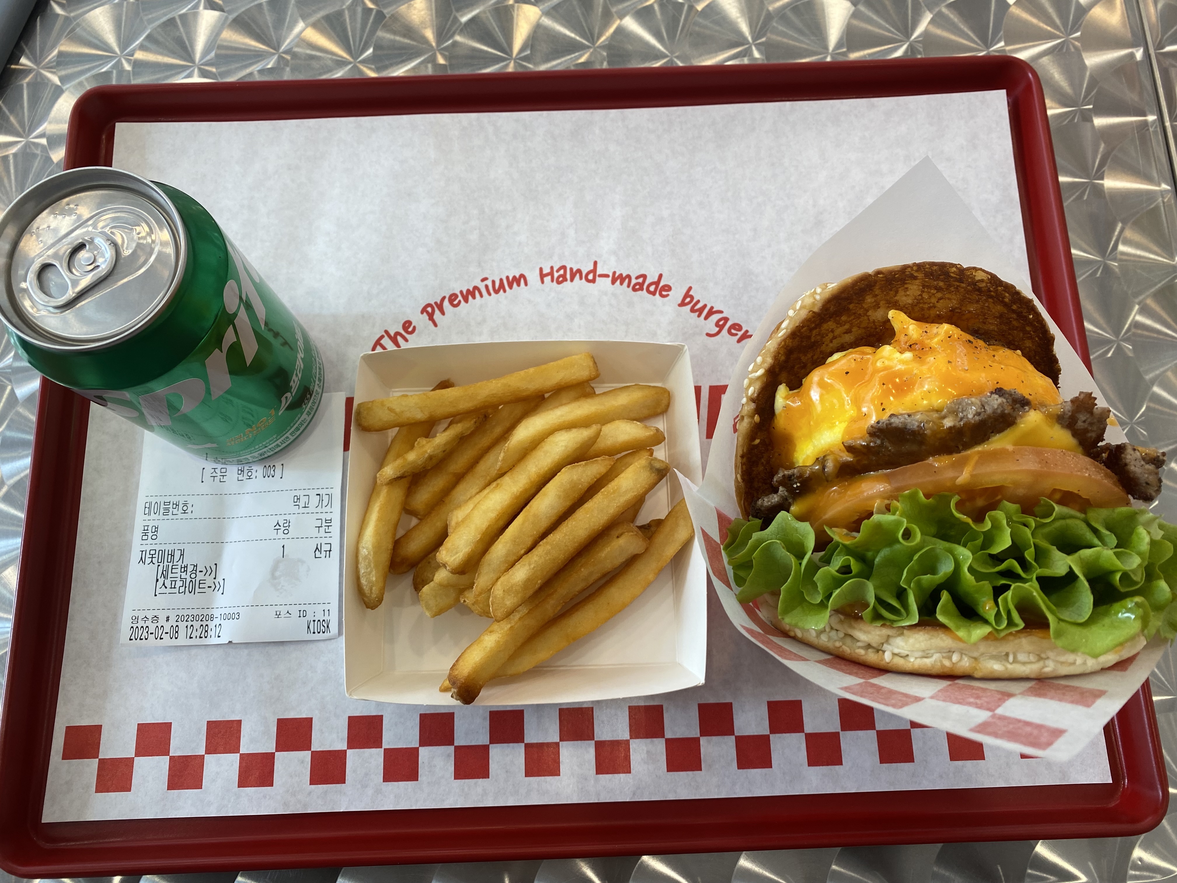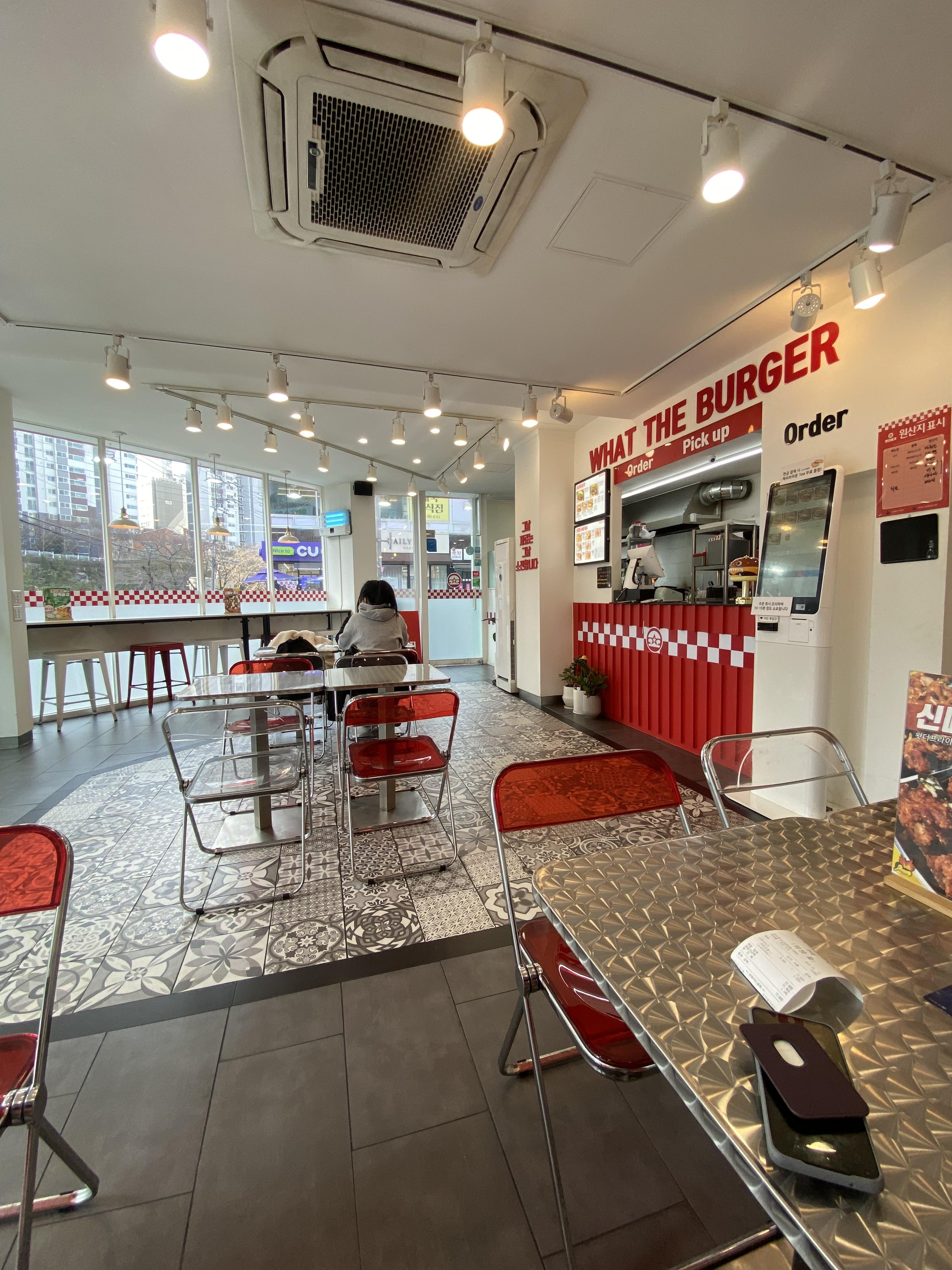 위치는 달동 삼성 아파트에서 매우 가까운 곳으로 방문 당시 12시 정도였습니다. 매장 내에 방문객은 딱 한 테이블이었고 매장 분위기는 버거킹 쪽보다는 맥도널드 분위기와 살짝 가깝다고 할까요? 철제 의자, 철제 테이블에서 풍겨 나오는 수제버거집의 분위기는 절대 고급지다란 느낌이 안 납니다. 맥도널드 보다 더 가볍고 싼 티 난다고 해야 할까? 암튼 수제버거 집이라고는 전혀 어울리지 않는 분위기의 인테리어입니다.