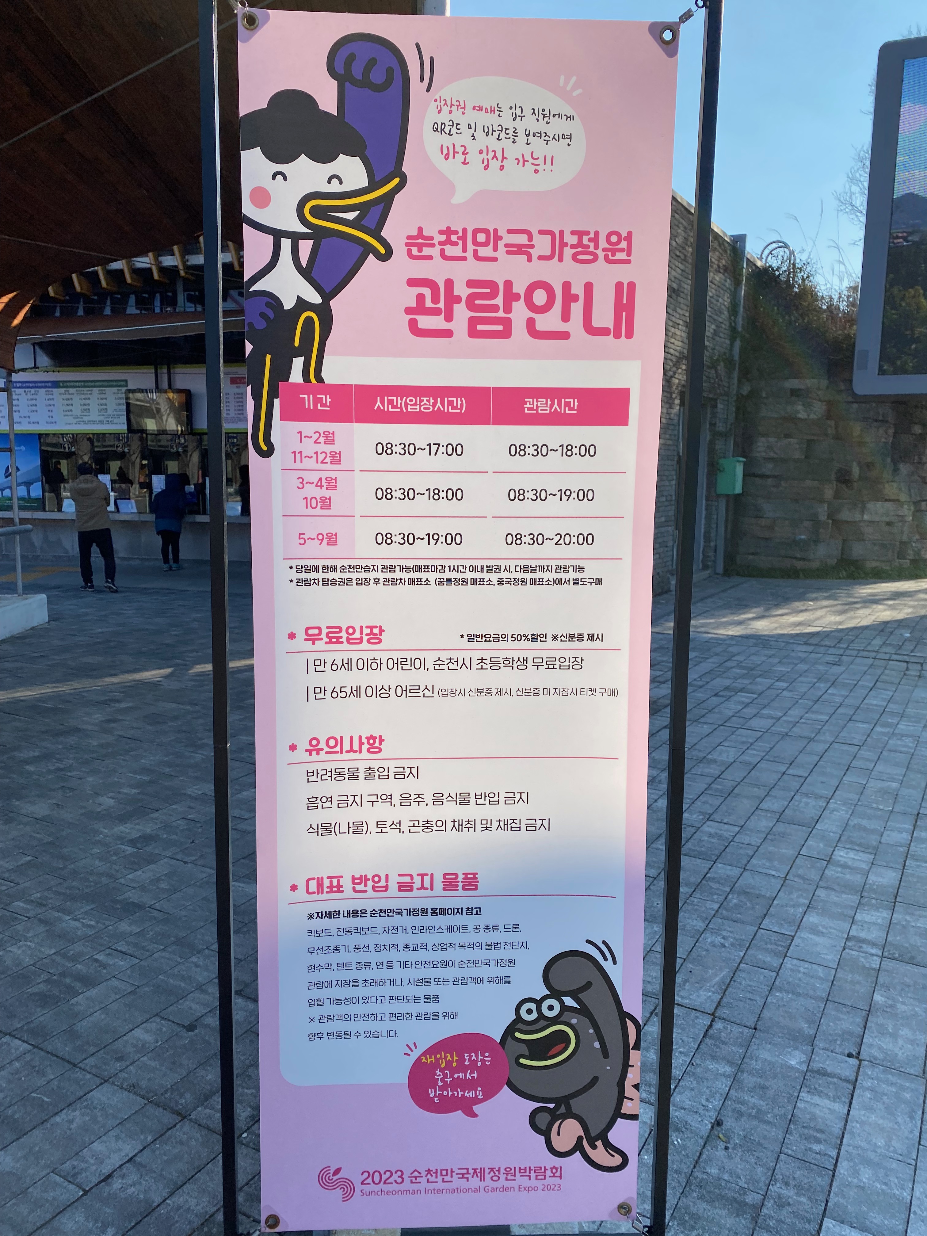 스카이큐브 할인 관련 안내와 국가정원 관람시간에 대한 안내도 볼 수 있습니다. 저희는 1월이라 18시까지 관람을 마쳐야 했네요. 오후 3시 입장해서 달랑 3시간 여유밖에 없었지요.