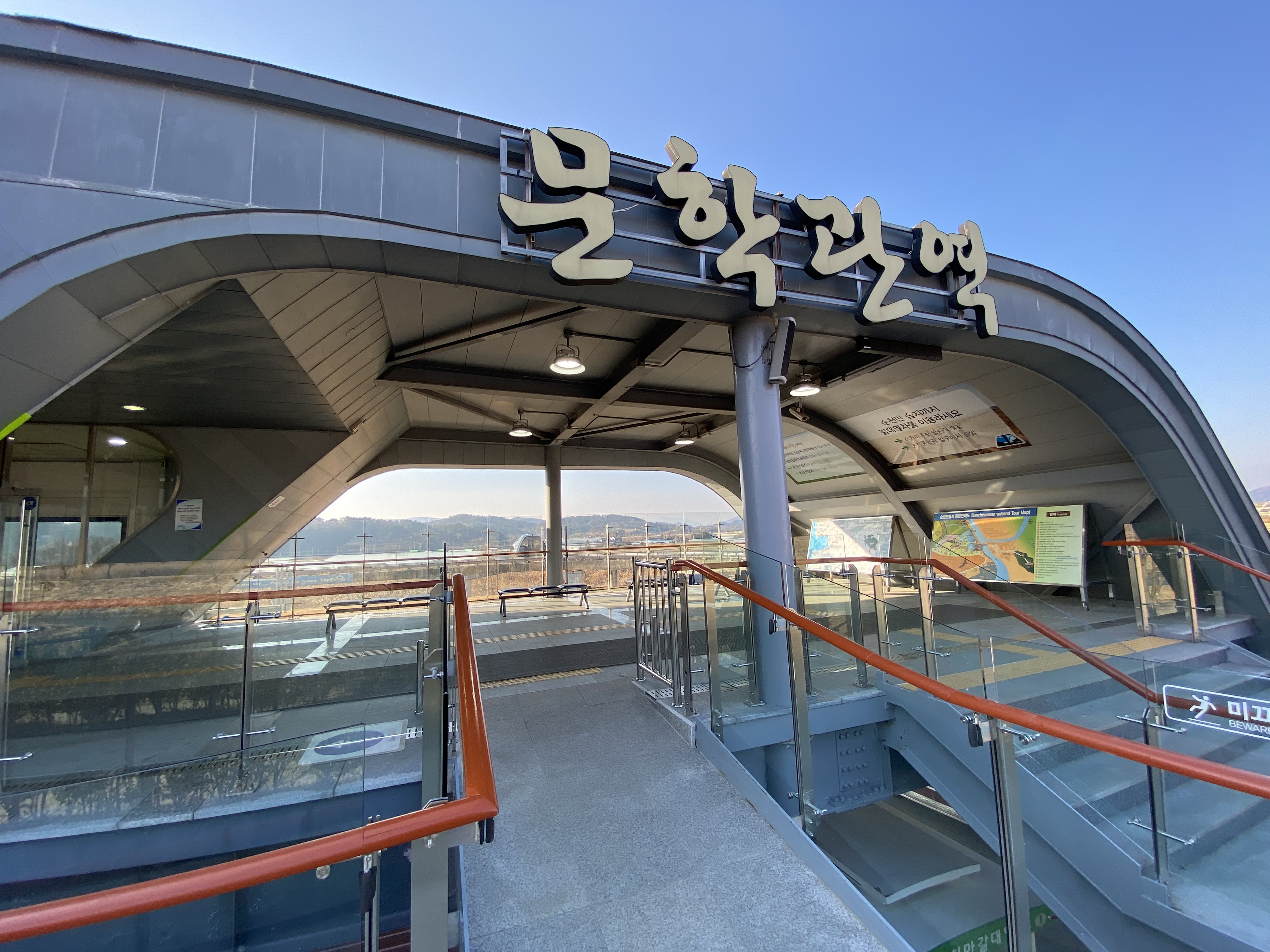 드디어 순천만 습지에 있는 문학관역에 도착했고요 내리자마자 바로 연결되는 갈대열차에 탑승을 해서 다시 습지 끝까지 이동을 했습니다.