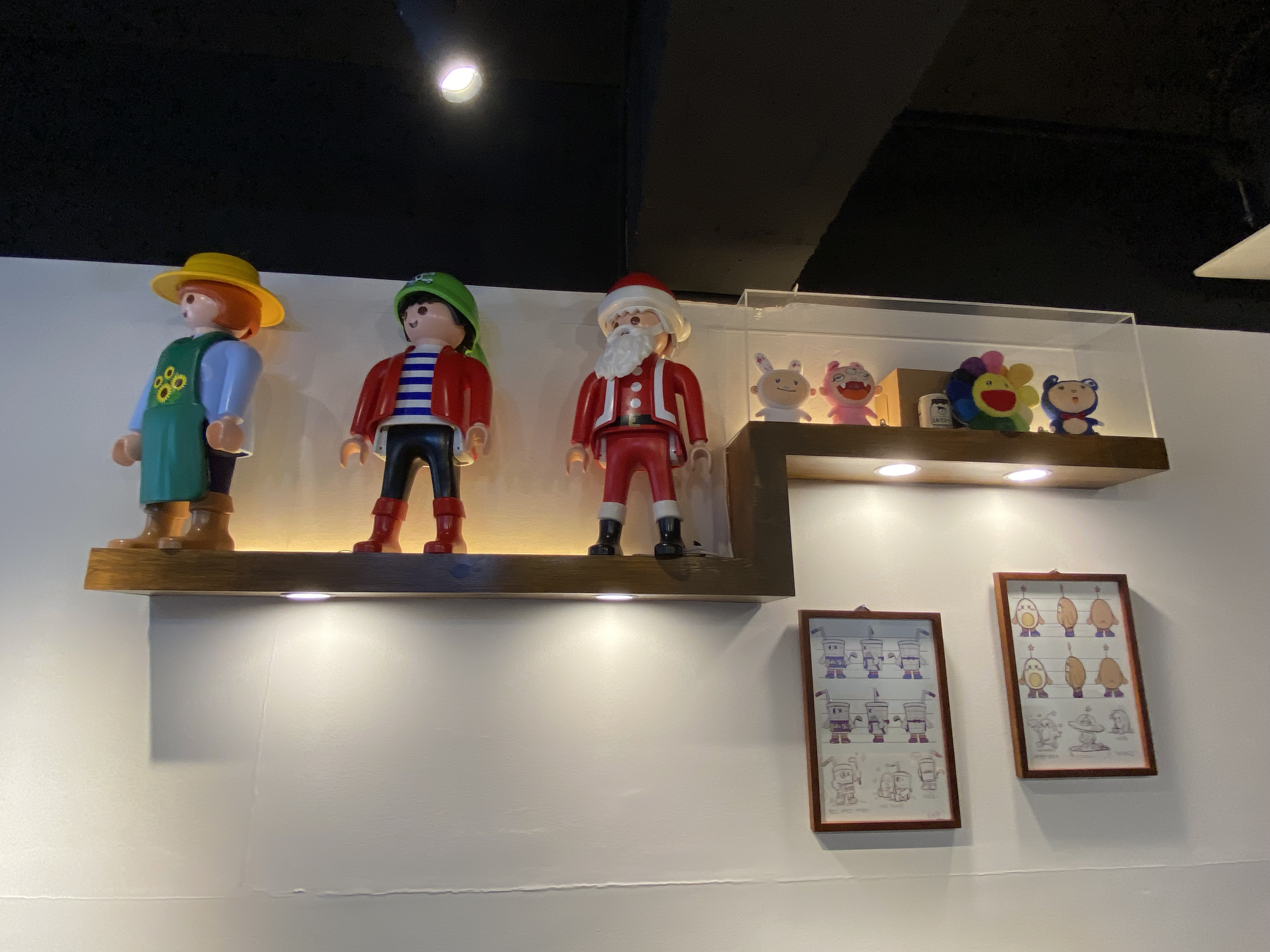 테이블 뒤면 벽에는 아기자기한 소품들로 장식되어 있는데 매우 깔끔하게 피규어들이 손님들을 방겨줍니다.