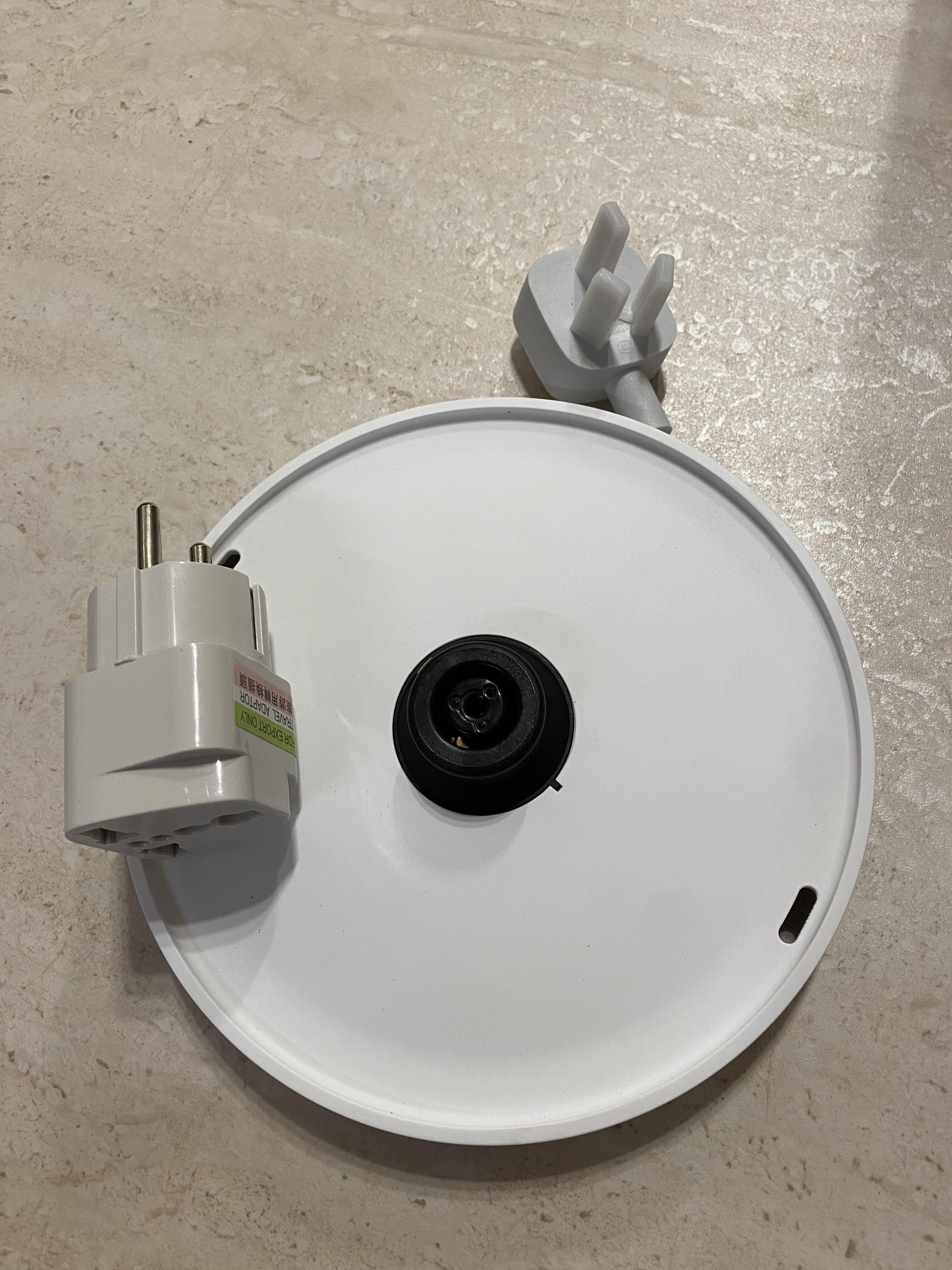 일단 용량 큽니다. 1.7리터 제품이고 전기용량도 1,800w로 엄청 빨리 끓는다고 되어 있네요. 언박싱 해보니 본체, 가열해 주는 받침대, 설명서, 그리고 국내 호환 돼지코 하나 들어가 있습니다. 중국 제품이라 코드가 세 개짜리네요.
