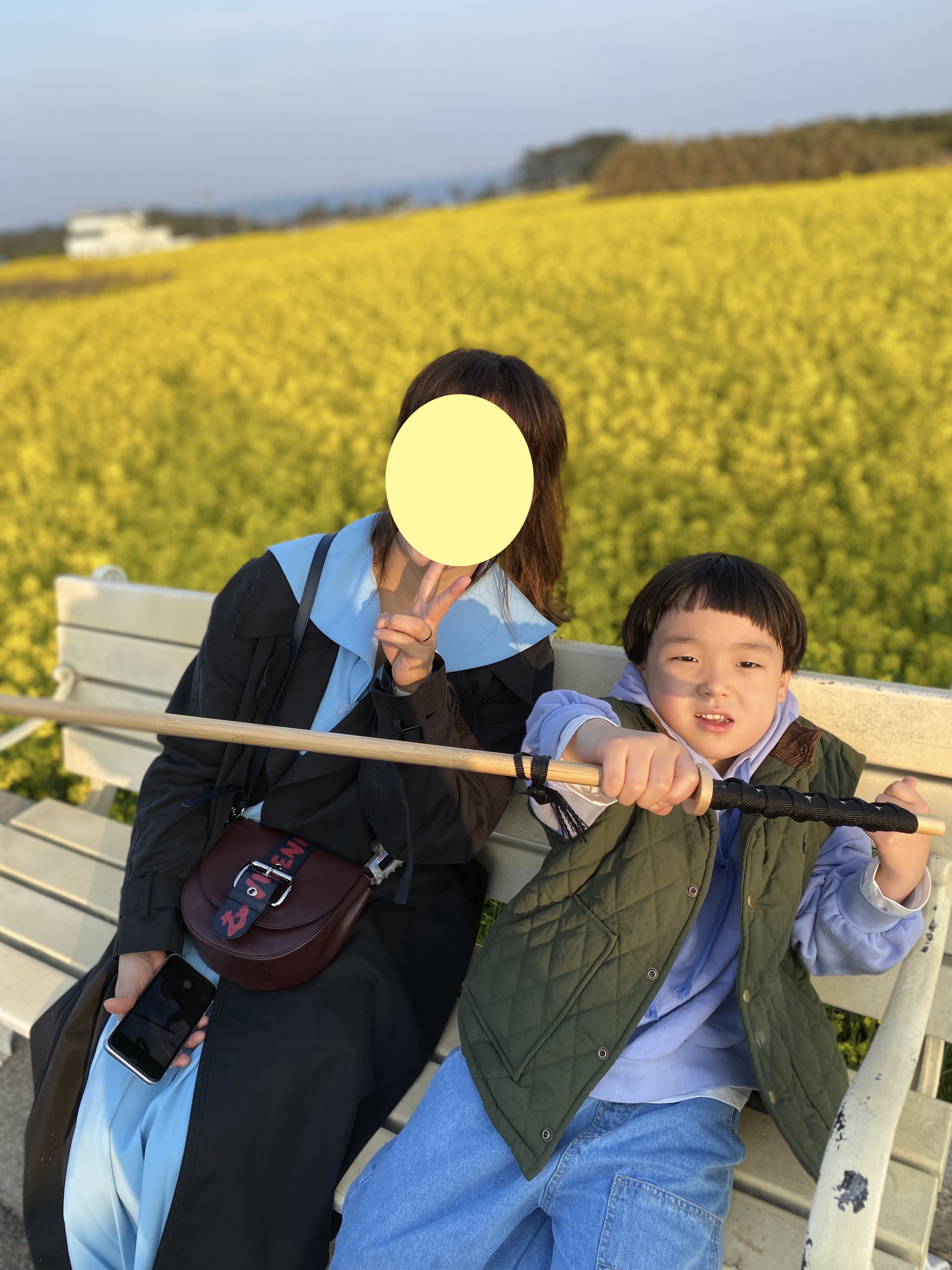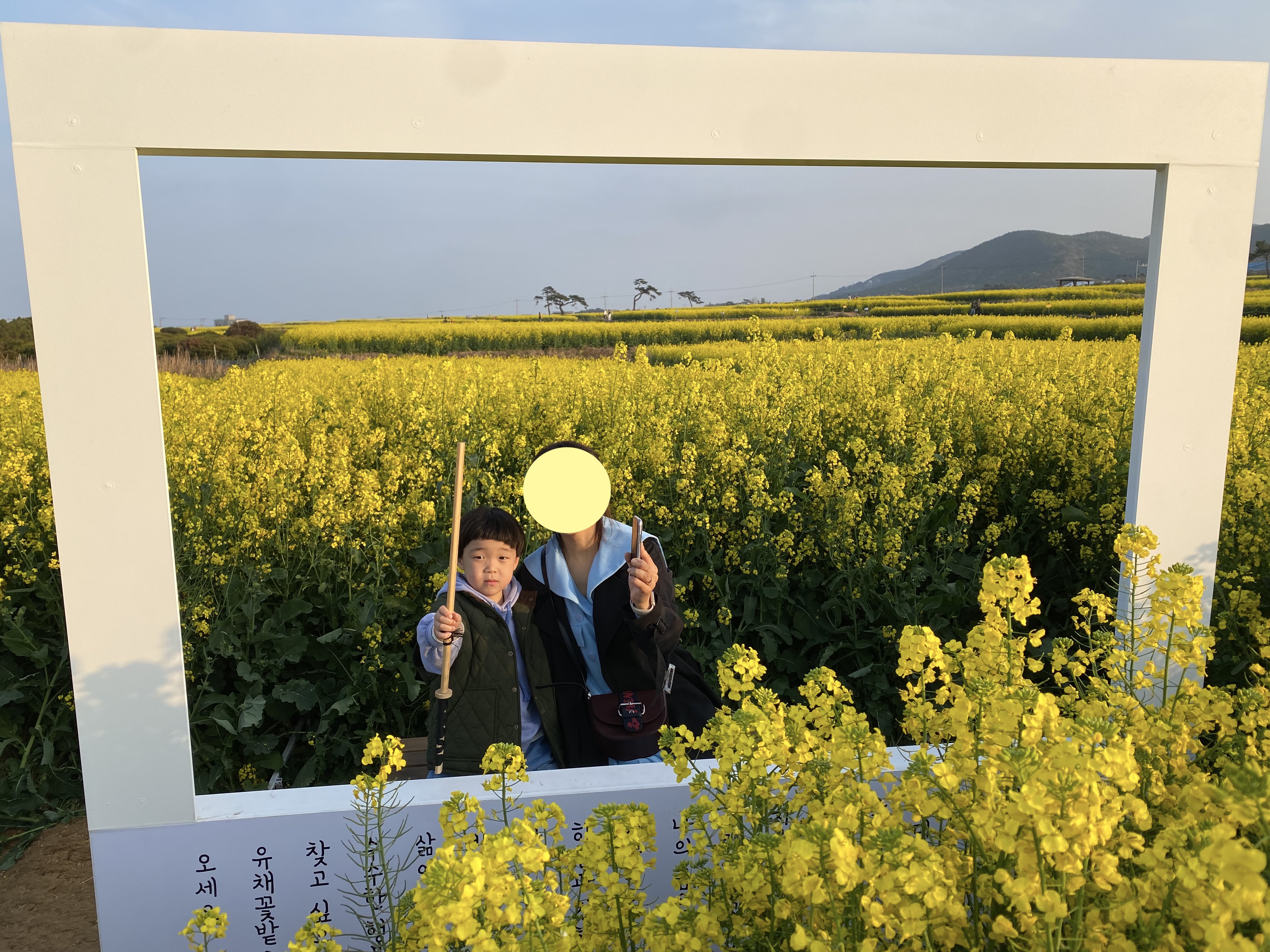 4월 첫째 주 주말 포항 영일대 해수욕장 후기에 이은 두 번째 방문지 소개 시간 되겠습니다. 탁 트인 시원한 봄 바다를 만끽하고 원래는 스카이 워크를 체험하러 갔으나 엄청난 방문객과 주차난으로 인해 바로 차를 돌려 포항 호미곶에 가기로 했습니다. 얼추 50분 정도 걸린다고 했는데 생각해 보니 아들 데리고는 호미곶 대형 손을 보여준 적이 없었던 겁니다. 잘되얏다 싶어 바로 차를 몰고 호미곶으로 갔습니다. 목적은 그러한데 이거 이거 오늘 소개할 글은 호미곶은 워낙 유명해서 대충 그까이꺼 생략해 버리고 광장 입구로 내려가는 길에 펼쳐진 샛노란 유채꽃 밭을 소개하려고 합니다^^ 사전 정보 따위는 일체 없이 호미곶에 가게 된 건데 횡재랄까요? 2월 초순에 제주도부터 유채꽃이 봄을 알리는데 4월에 호미곶에서 이렇게 엄청난 규모의 유채꽃을 보게 될 줄이야~~!!! 엄빠는 그때부터 호미곶은 안중에도 없고 오직 유채꽃 밭에만 맘이 가있었네용^^