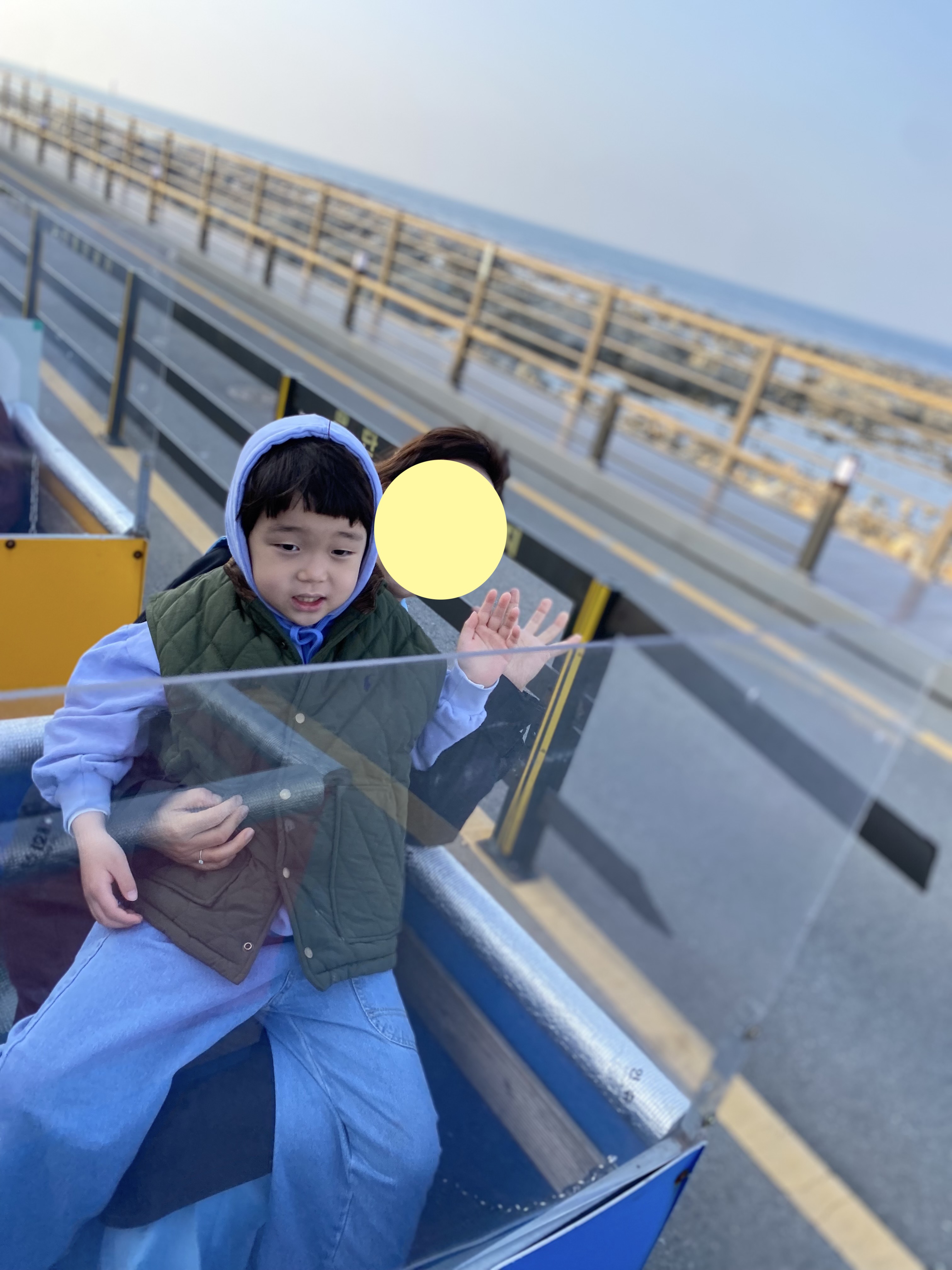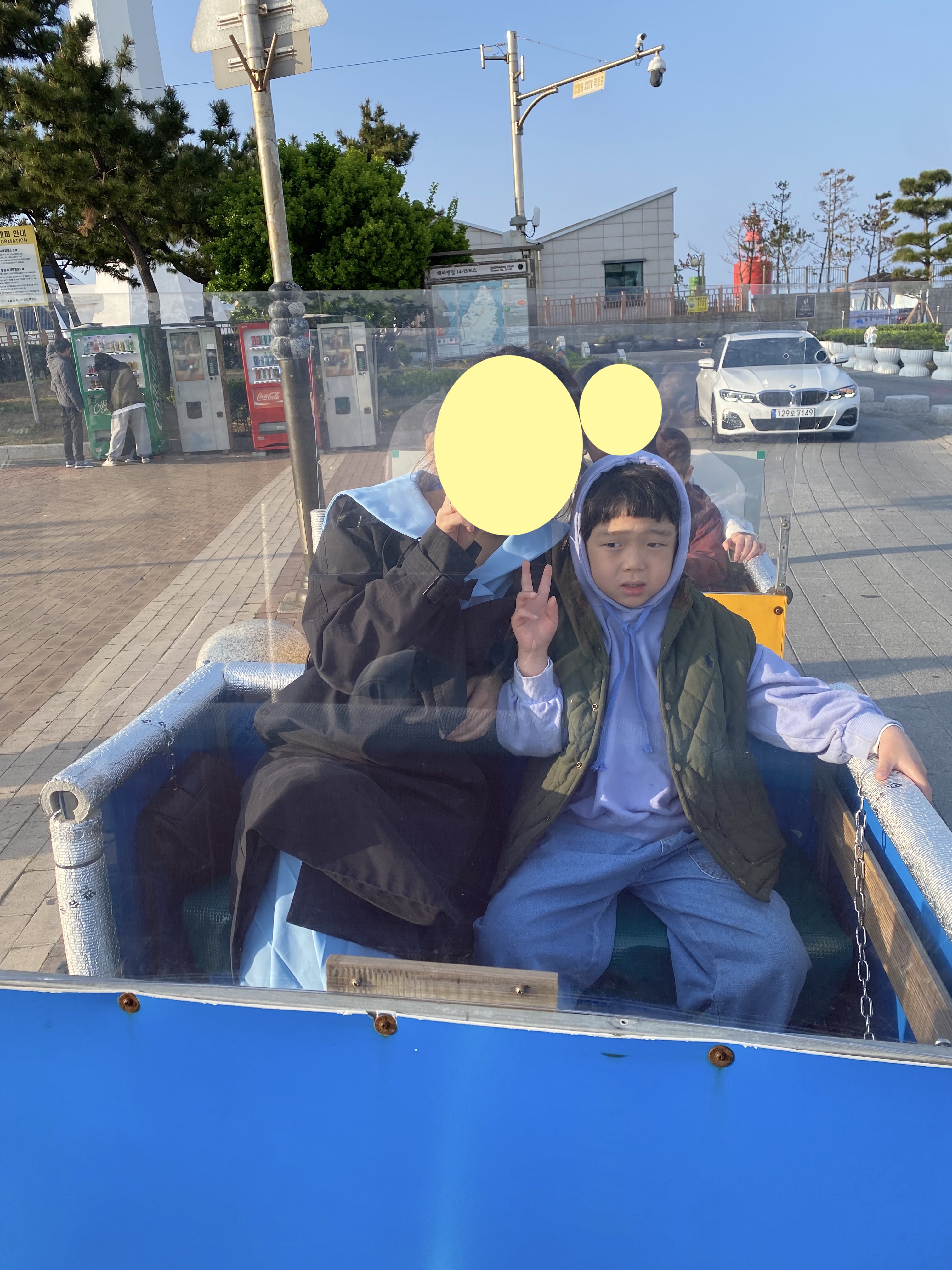 유채꽃 밭을 소개하는 글로 마무리 지으려다 호미곶 광장에 명물로 깡통 기차 소개해 봅니다. 해안 도로를 왕복으로 10분 정도 운행을 하는데 나이 따지지 않고 무조건 현금 박치기로 인당 오천 원~!! 아깝기도 하고 엄마랑 아들만 타고 오라고 했다가 사진이라도 남겨줘야겠다는 생각에 아빠도 같이 타봤는데요, 실제 운행 시간은 오분 되려나? 호미곶 해안 도로 좌우를 길게 왕복하는 코스인데 뭐..... 아이들 있는 집은 기념으로 한 번 정도는 타봐도 괜찮을듯합니다. 끝에서 유턴하는데 나름 드리프트 느낌도 나고 스릴도 살짝 느껴지면서 말이죠~ 인당 오천 원 정도면 뭐... 요즘 물가 생각하면 비싸다는 느낌이 날듯 안 날듯하는 그런 느낌적 느낌의 가격입니다. 참고하세용^^