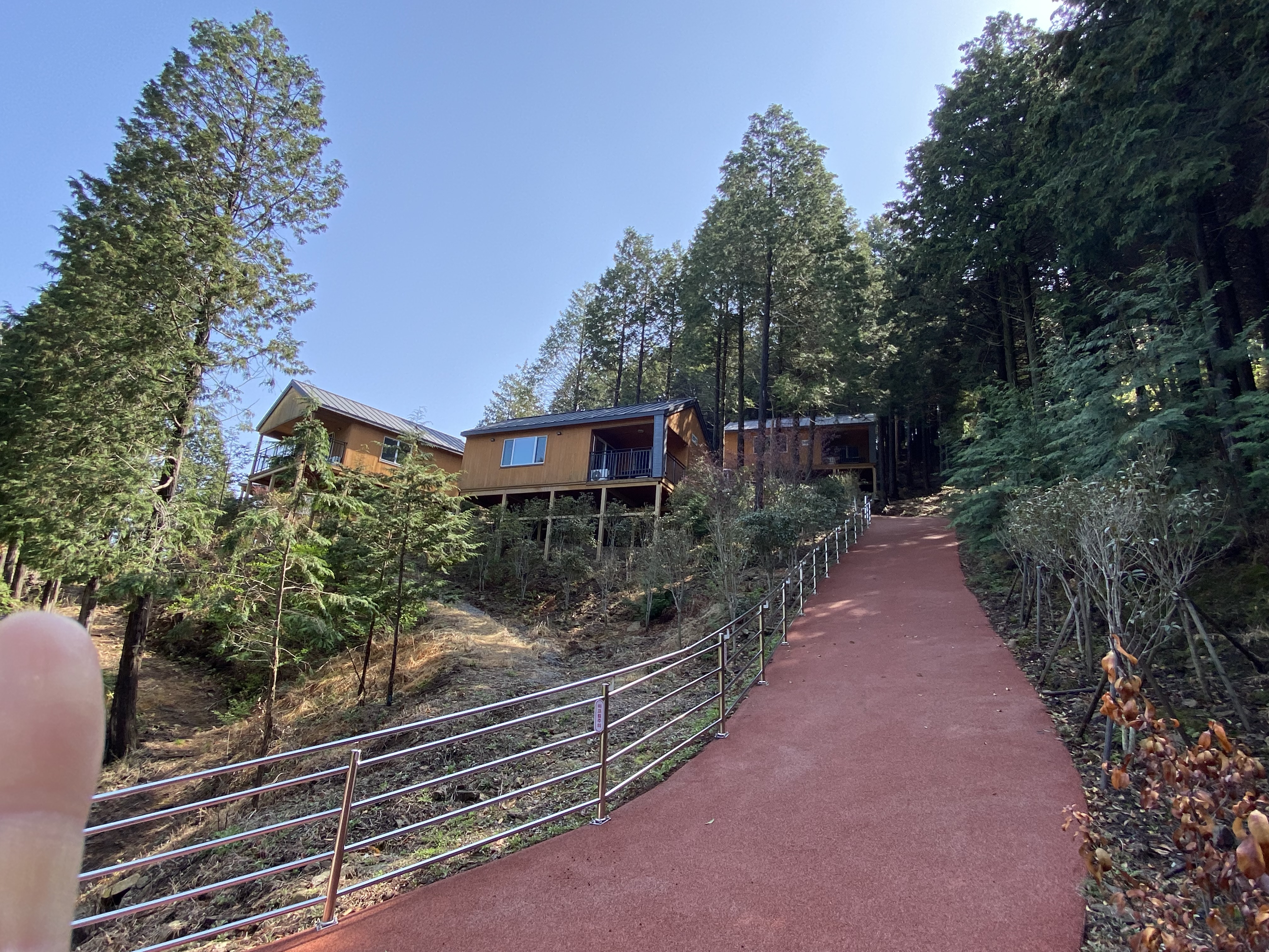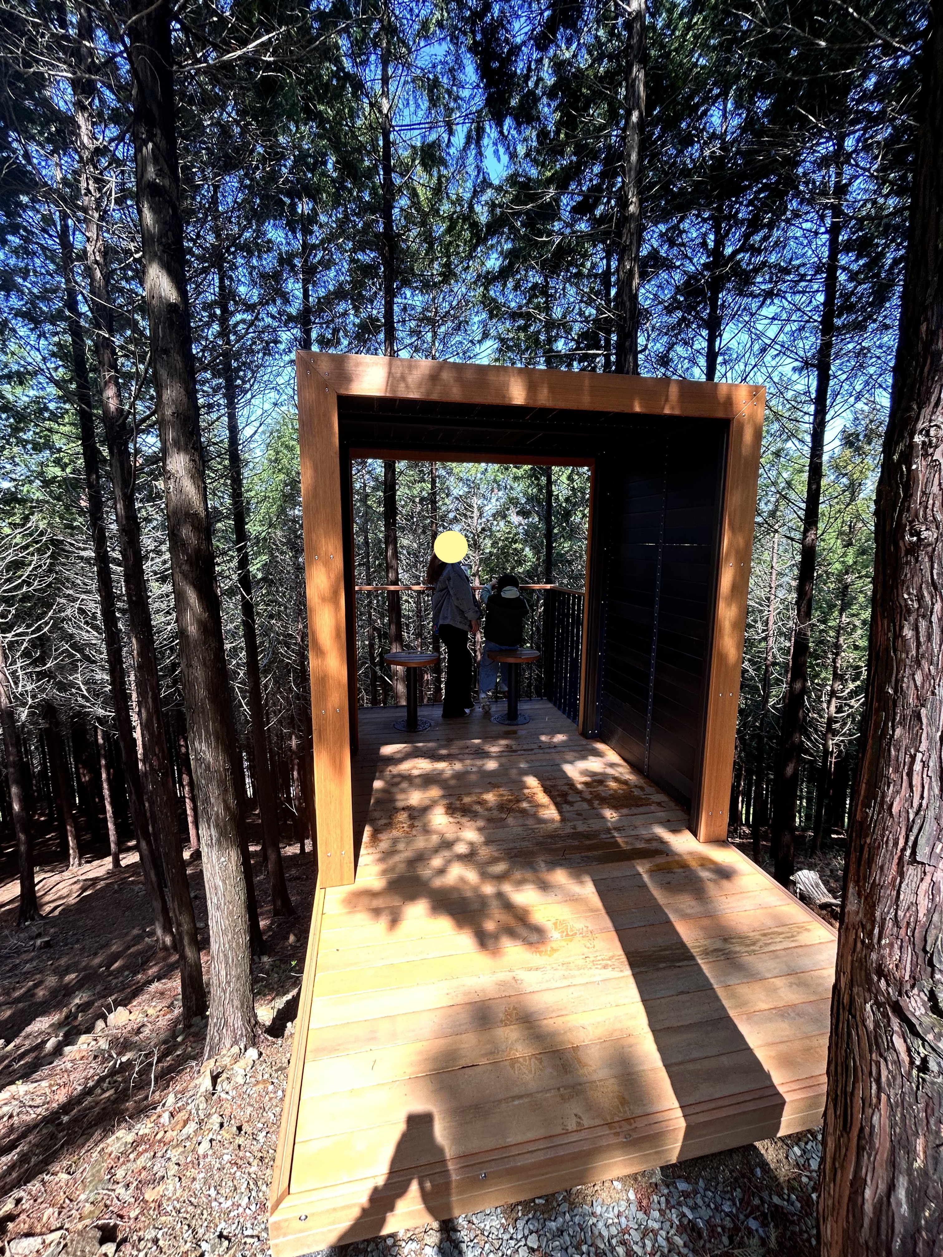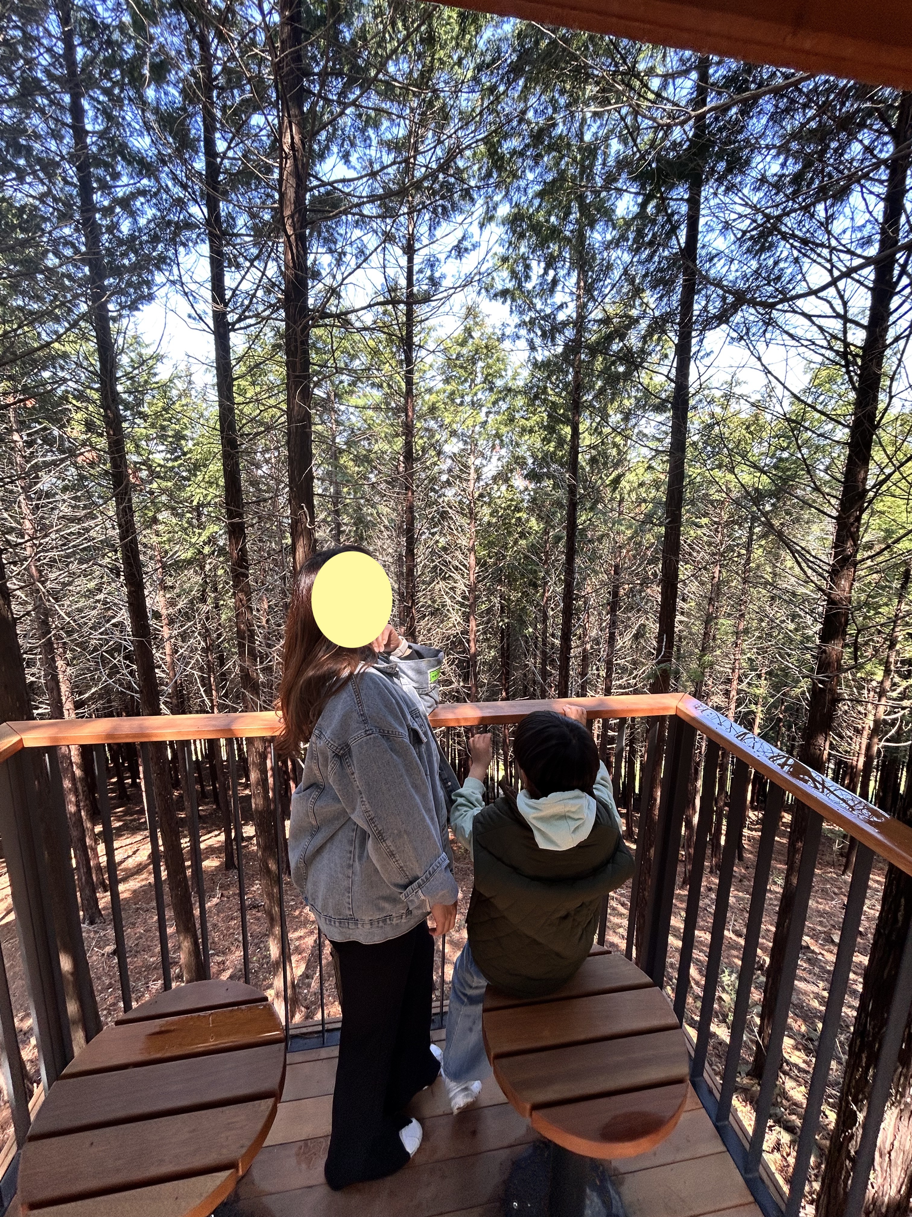 체크아웃 하러 내려가는 길에 편백나무 숲을 즐길 수 있는 전망대도 있습니다. 아침 맑은 공기에 피톤치드 한가득 들이켜봅니다.