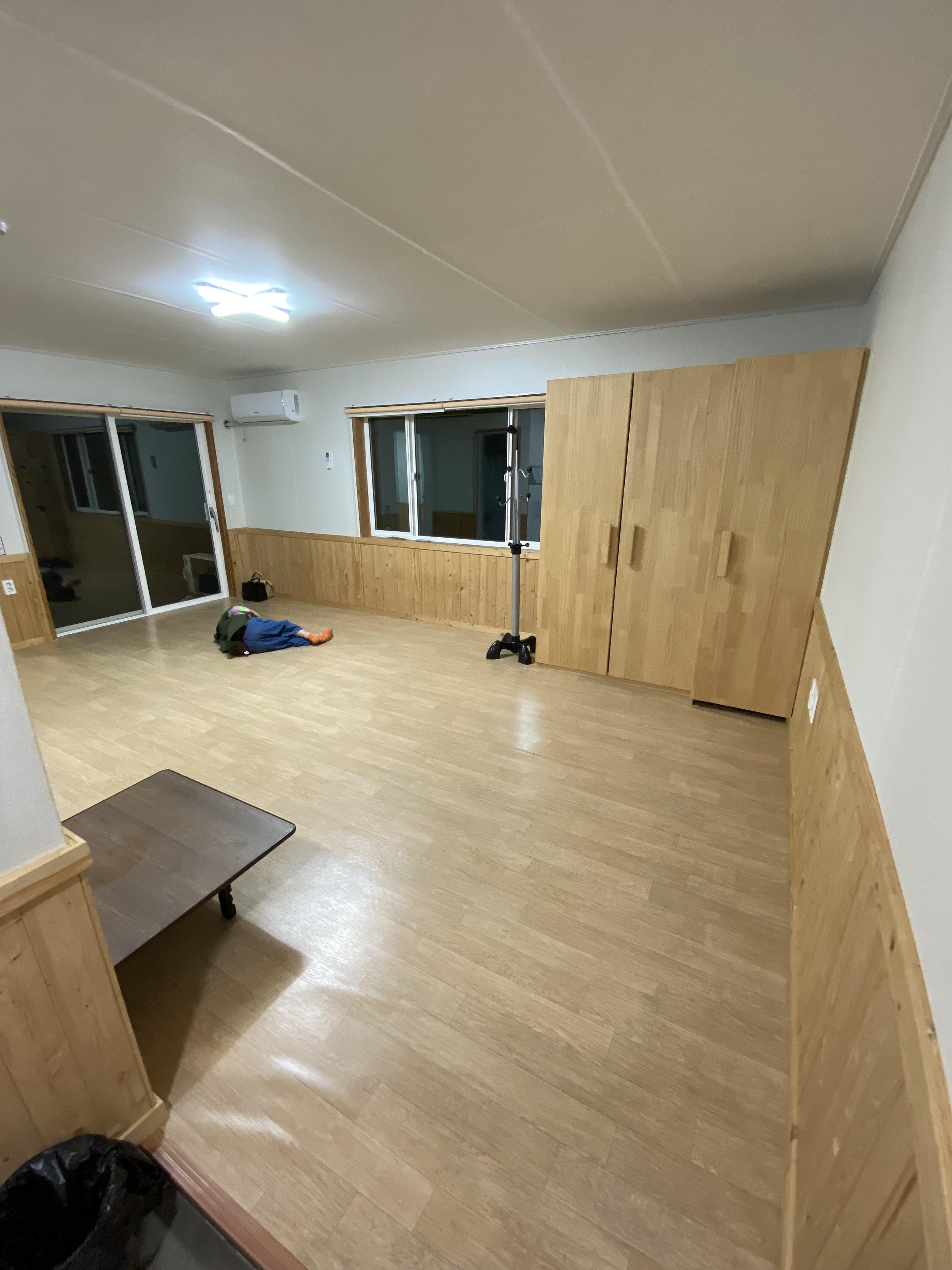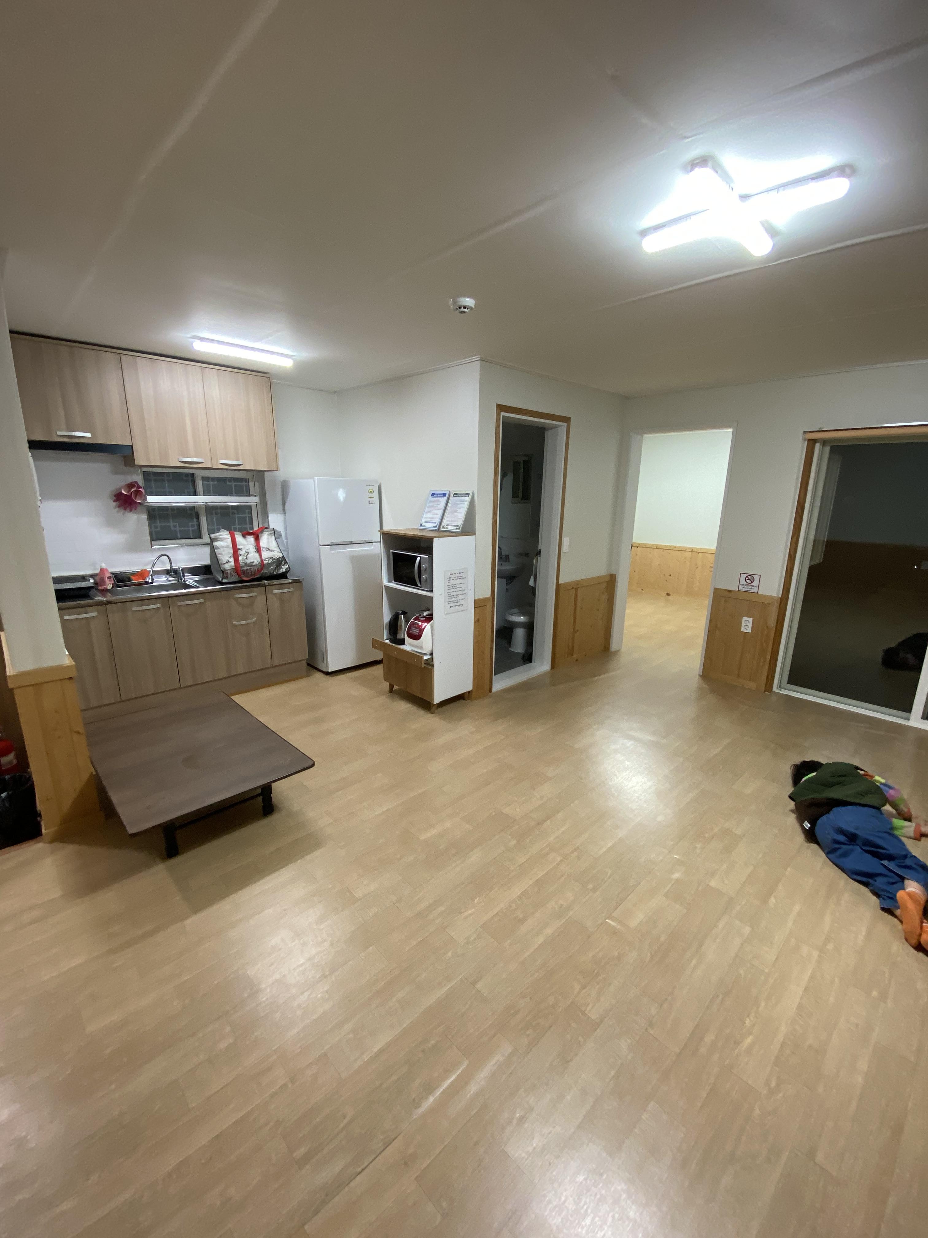 힘들게 숙소에 들어오면 룸 컨디션은 아주 깨끗하고 좋습니다. 넓은 거실과 부엌, 화장실이 있는데 산 중턱에 위치한 휴양림이라 수압이 좋지 못합니다. 여름철에는 그냥 찬물로 씻어도 상관없겠으나 봄까지는 따듯한 물을 사용해야 하는데 졸졸졸.... 씻는 게 아쉬운 숙소입니다.
