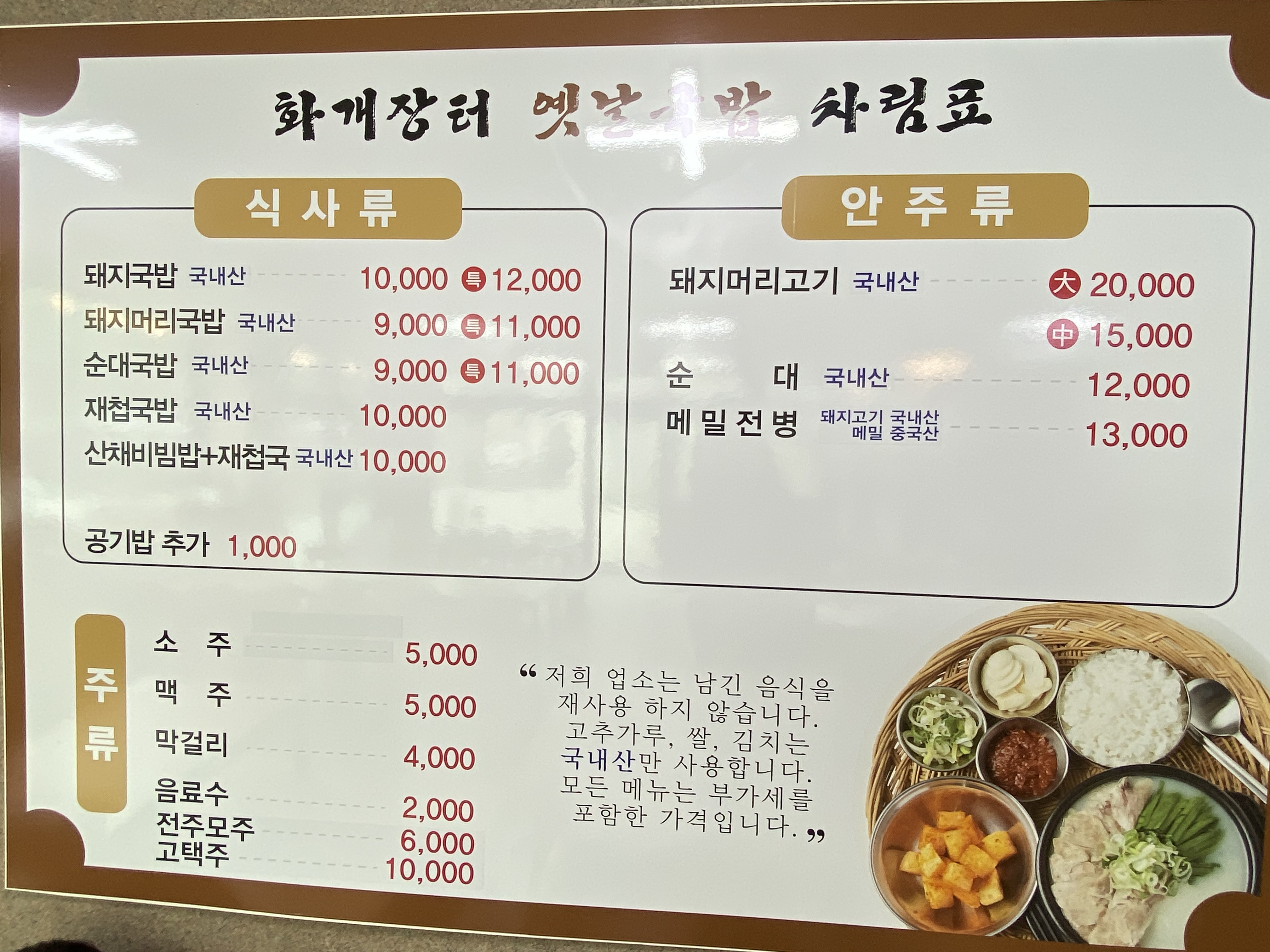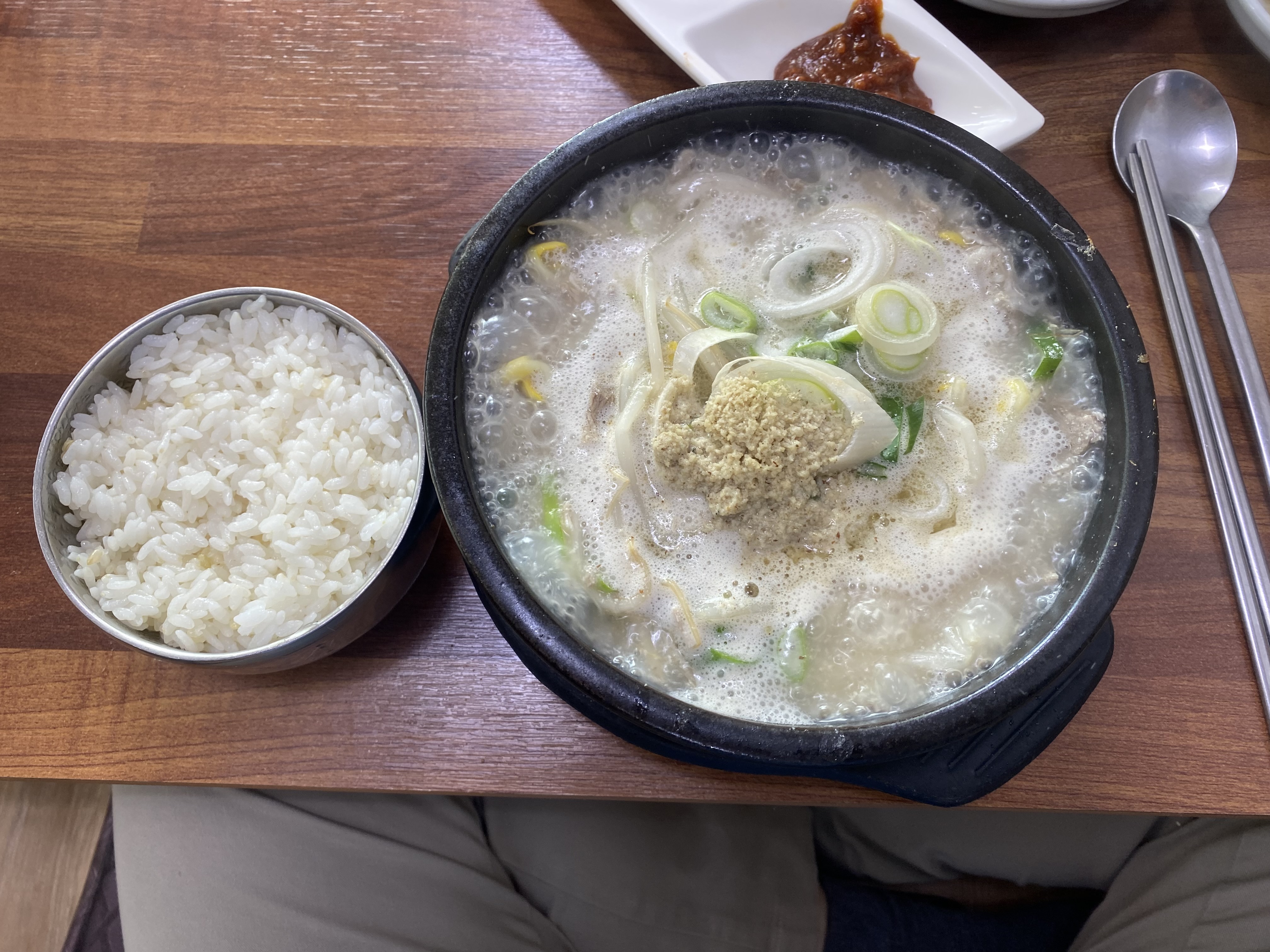 장거리 이동으로 피로가 쌓였는지 약간 힘들어하는 아들에게 뜨끈한 국물이 있는 밥을 먹어야 해서 선택한 옛날국밥인데 저희가 선택한 메뉴는 돼지국밥과 산채비빔밥을 주문했습니다.