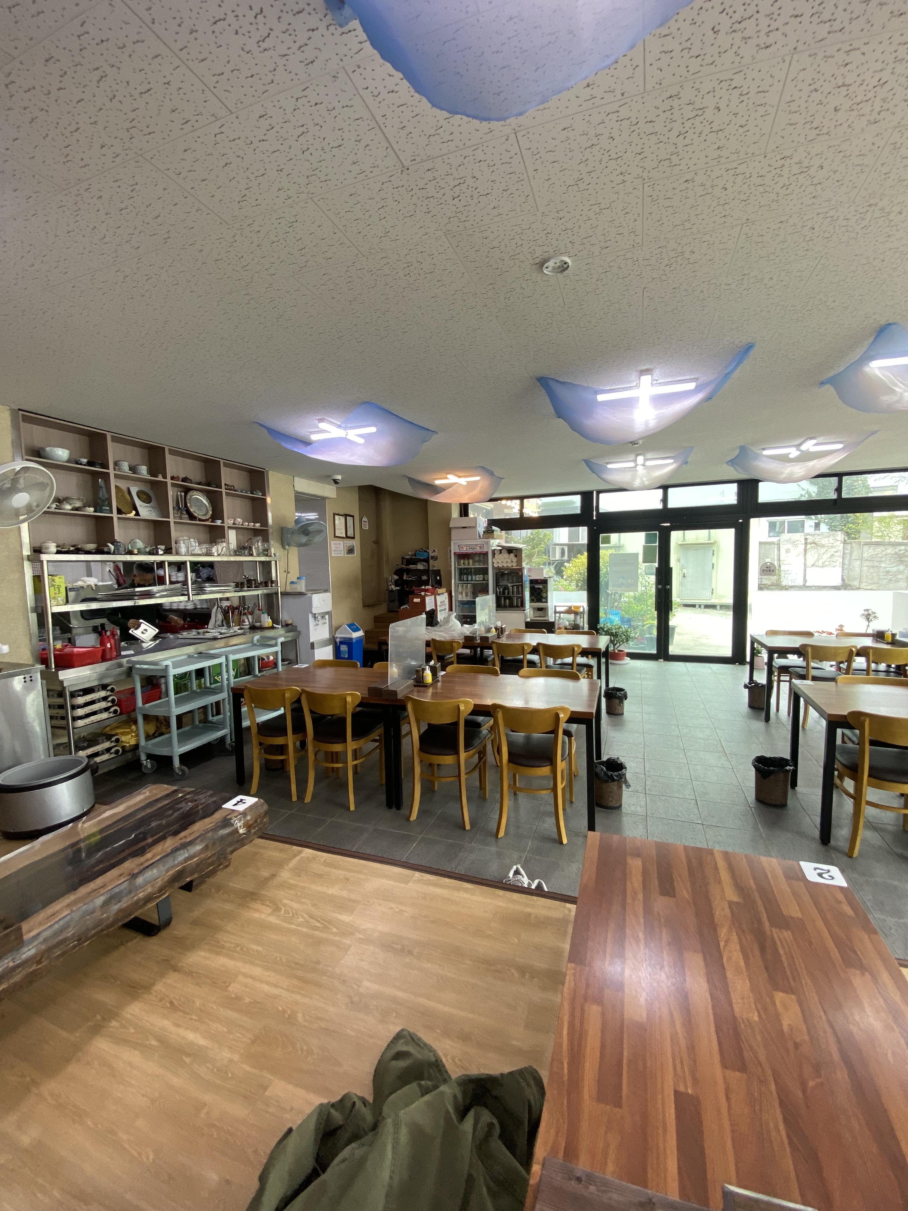 하동~사천 가족여행 세 번째 글 올립니다. 장터 구경을 열심히 했으니 에너지 보충을 해줘야 하는 시간이 되었습니다. 점심 먹거리로 뭘 먹어볼까 검색을 해보니 역시나 예상대로 대부분 섬진강 재첩 요리와 참게 요리 전문점이 소개됩니다. 한상 푸짐하게 차려지는 식당들로 일단 저희 소식좌 와이프님과는 맞지 않습니다ㅠㅠ 그리고 작년 봄 여행 때 섬진강 재첩 정식을 먹어봤기 때문에 소개되는 식당 메뉴가 제 입맛을 당기게 하진 않더라고요. 지인분께서 그 동네 갔으니 따른 건 몰라도 참게탕은 먹어야 된다고~~~ 8살 아들도 있고 해서 패쓰~!! 그래서 결국 돌고 돌아 주차장에서 매우 가까운 식당 한 곳을 정했습니다. 식당 상호는 '화개장터 옛날 국밥'으로 공용 주차장 뒤편에 있습니다.