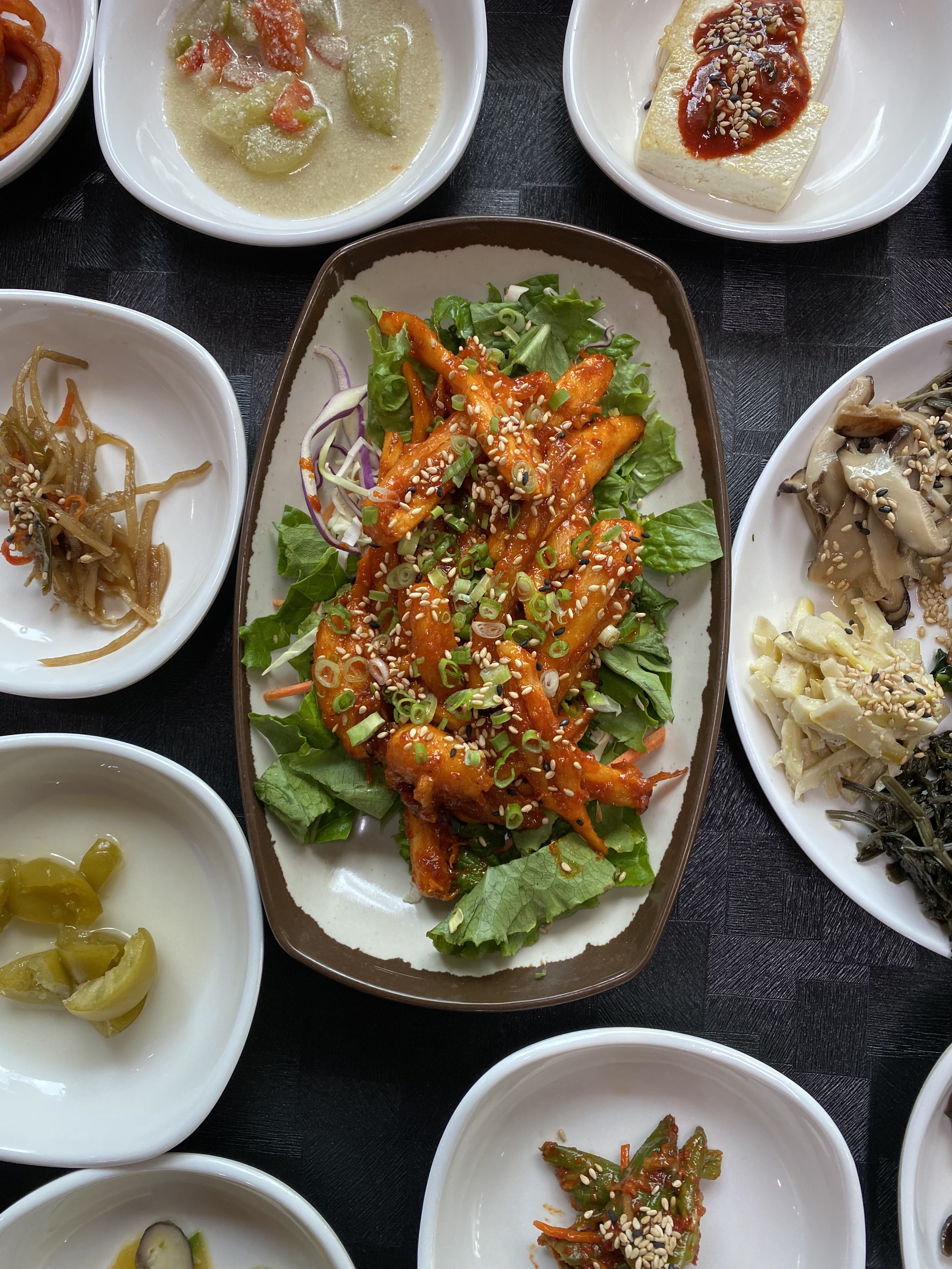 결국 산채비빔밥 스타일로 쓱쓱 비벼 한 그릇 뚝딱했습니다. 반찬도 정갈하고 깔끔하게 나오는데~ 거짓말 하나도 안 보태고 나온 반찬이며 메인 요리며 전부 싹싹 긁어먹었답니다. 운전대를 잡아야 했기에 더덕주 혀끝으로 향만 살짝 느끼고 말았는데 그게 참 아쉽더라고요. 사장님도 친절하고 음식 맛도 과하지 않고 지리산 자락에서 맛보는 자연의 맛이랄까요? 쌍계사 방문 계획이시면 여기 식당 강추 합니다!!!! 가격은 더덕구이 정식이 16천원 정도 였고 감자전이랑 더덕주 까지 총 계산을 5만원정도 했네요.