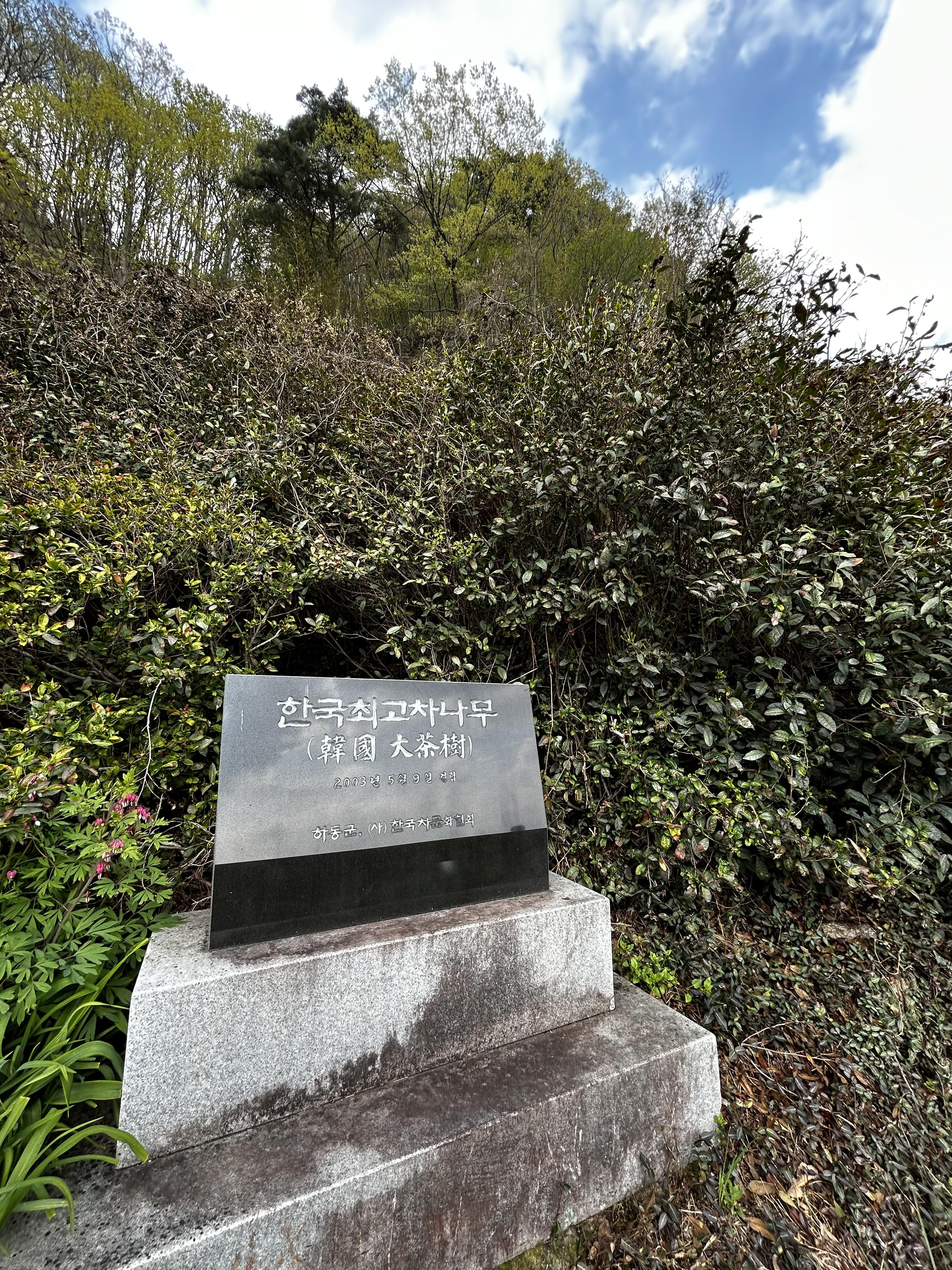드디어 차밭 정상에 오르니 한국최고차나무 표지석이 나타나고 조그만 제단도 있는 게 아~ 드디어 목적지에 도착했구나~ 알 수 있었습니다.