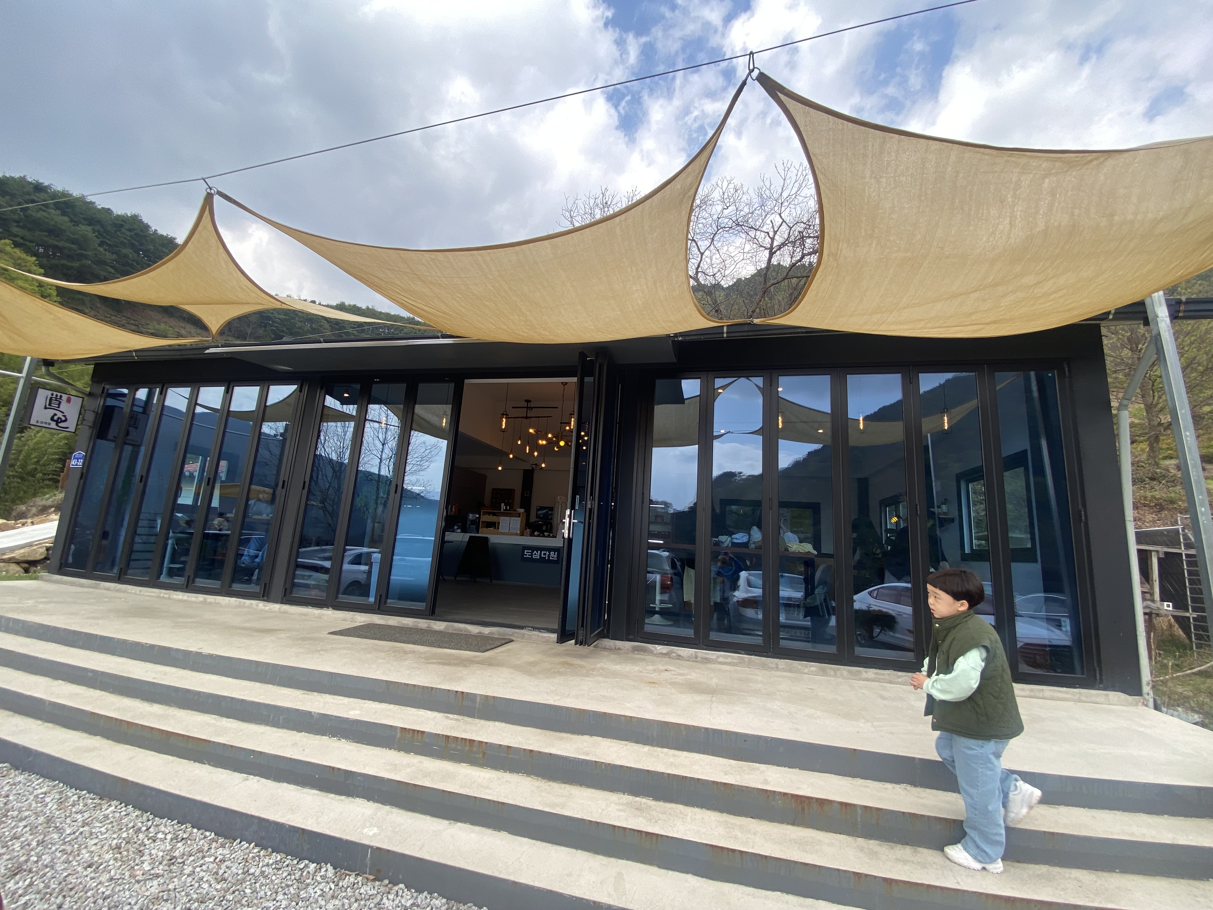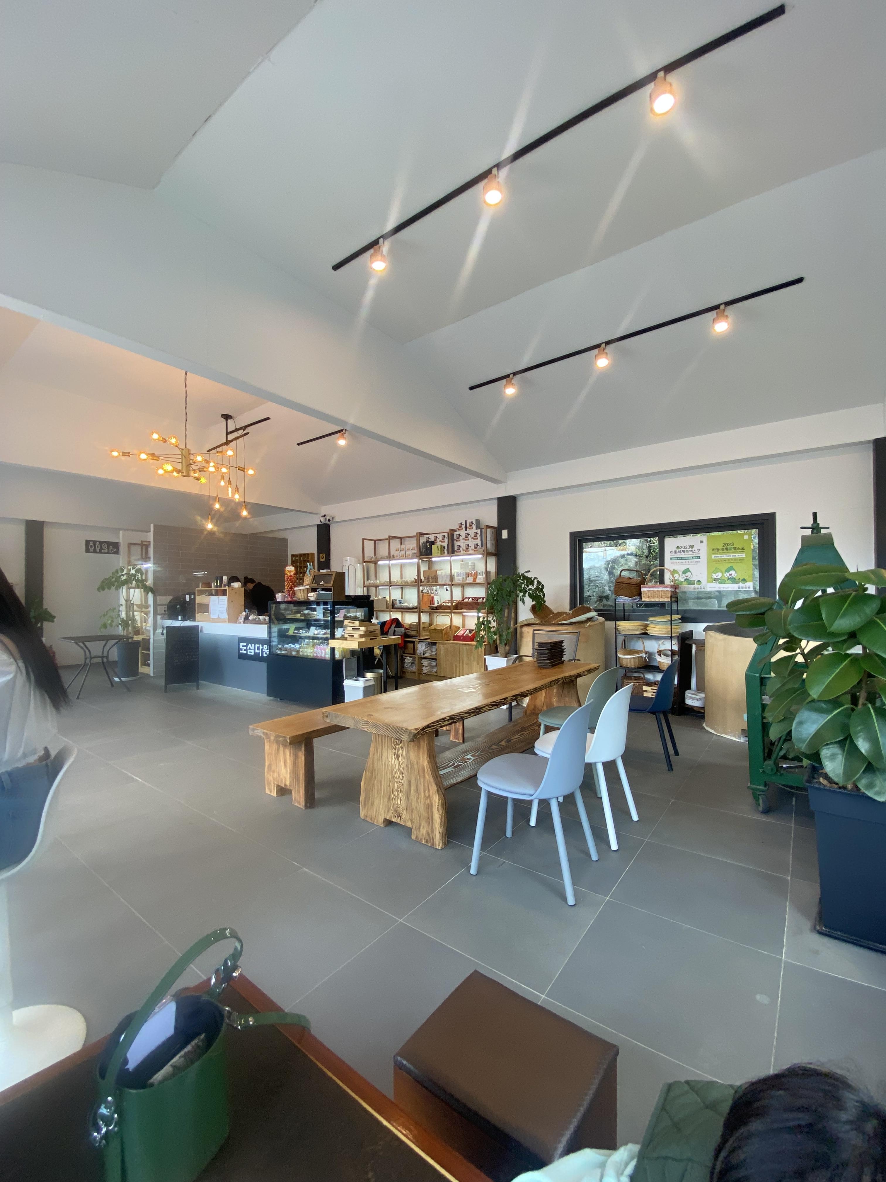 도심다원 바로 앞 마당에 주차를 하고 녹차 한잔 마시러 들어가 봅니다. 도심다원 가는 길은 펜션이 많이 조성되어 있는데 제일 마지막 지점에 도심다원이 위치해 있습니다. 신식 건물로 지은지 얼마 되지 않은 아주 깨끗한 카페 같아요.