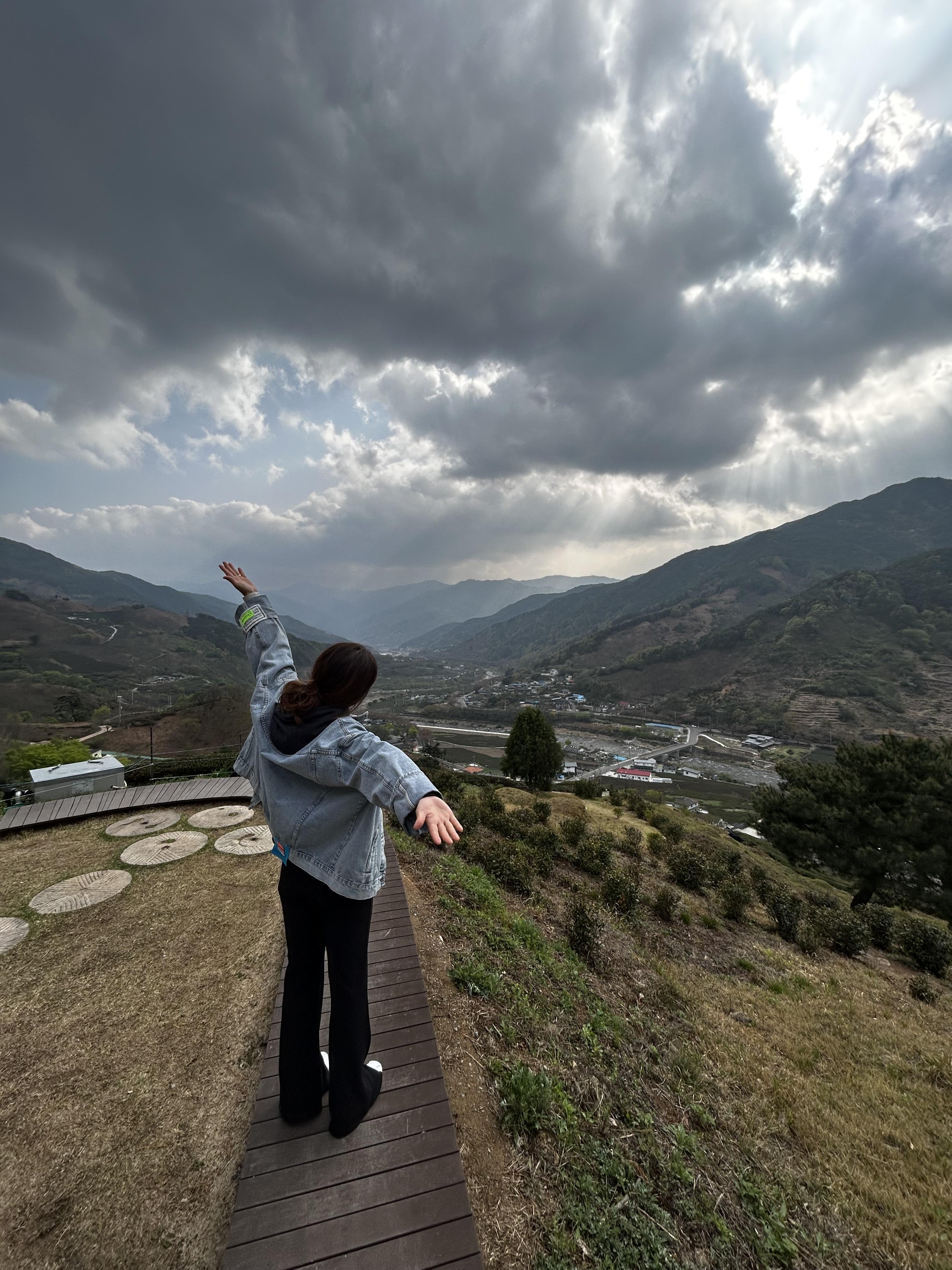 구름 사이로 햇빛이 뚫고 나오는 모습이 섬진강과 정금차밭과 잘 어우러져 너무너무 멋진 뷰를 감상할 수 있었습니다. 도심정원과는 또 다른 느낌의 하동 차밭 뷰였습니다. 도심정원까지 오셨다면 정금차밭 정자까지 무조건 꼭 방문해 보세요. 강추!!!