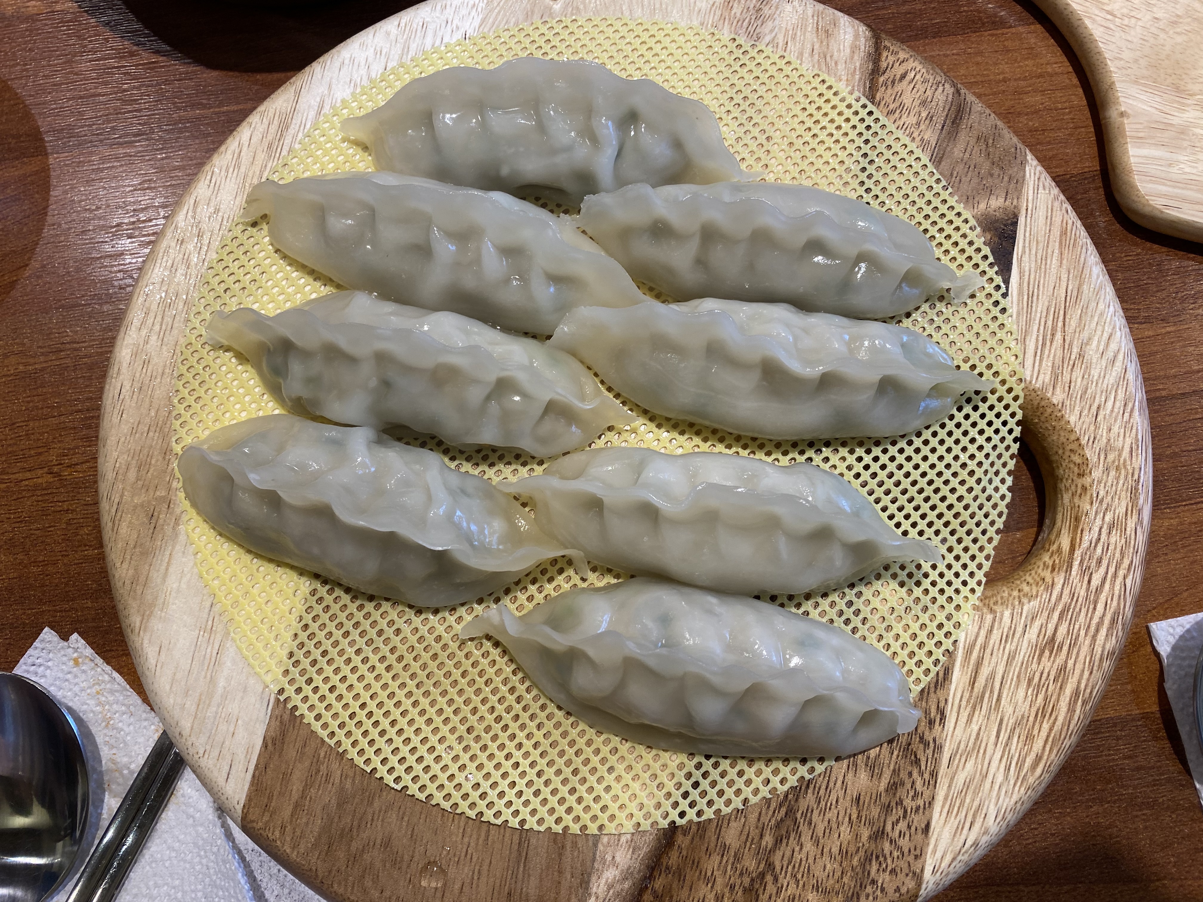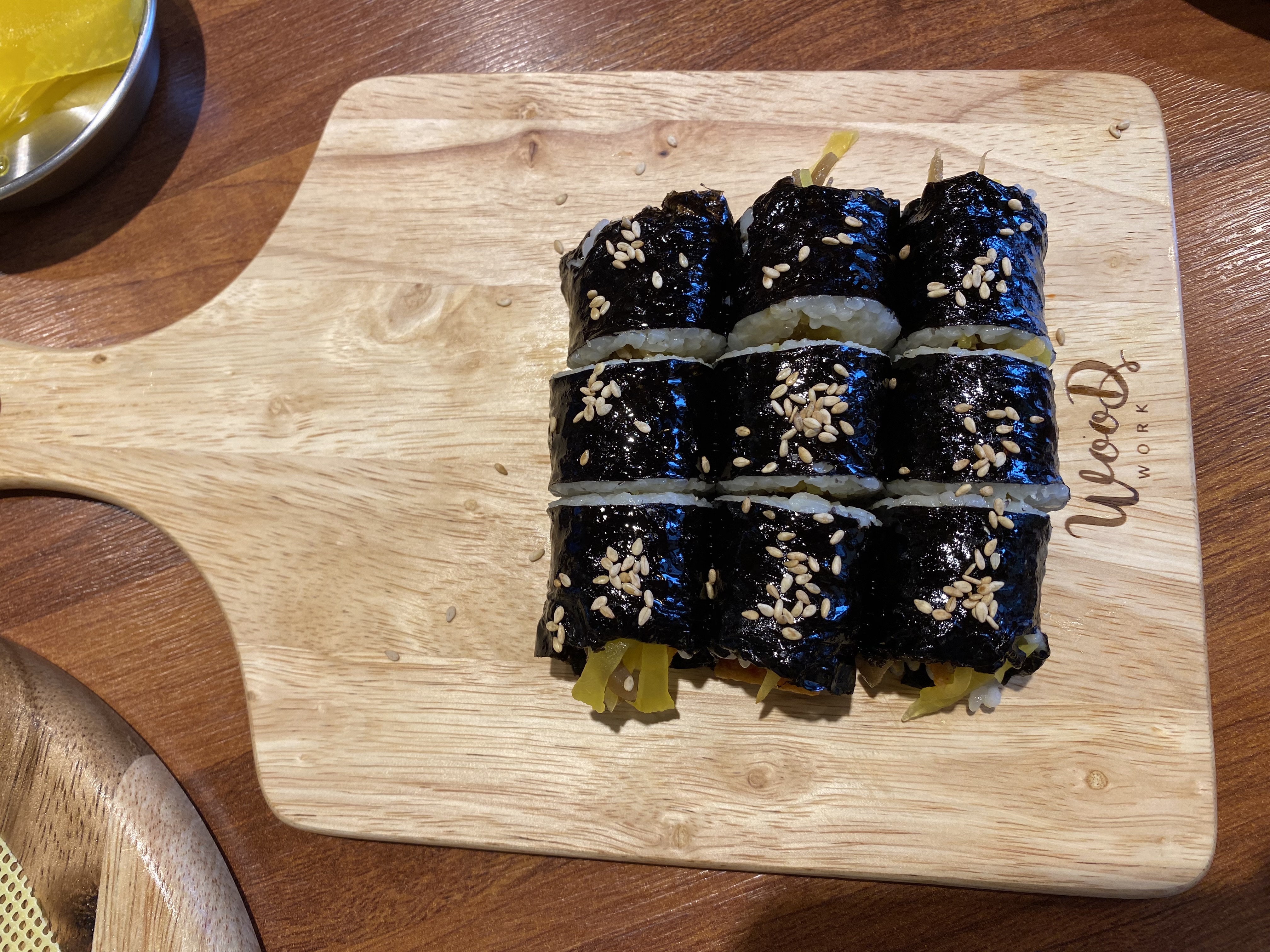 만두 한판에 8개가 나왔고, 우엉 김밥이 나왔습니다.