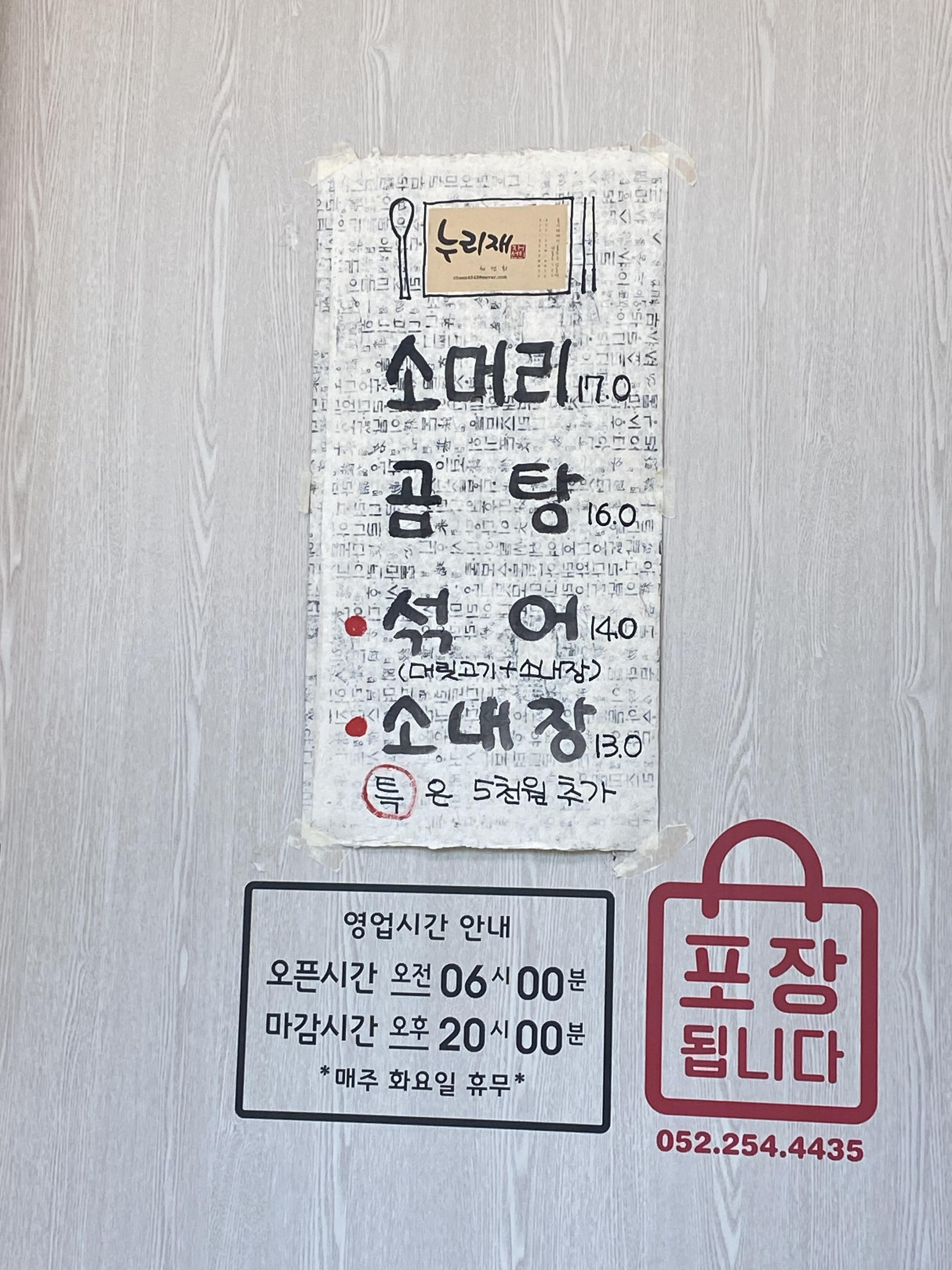 도대체 이런 외곽 시골길에 건물 크게 지어놓고 한우 곰탕을 팔고 있는 식당이 얼마나 자신 있고 맛있게 만들기에 곰탕 한 그릇에 16천 원이나 받을까 ~~ 궁금하기도 하고 해서 언능 맛을 봤답니다. 개인적으로 쫄깃한 식감을 좋아해서 소머리 곰탕을 주문했는데 17천 원 짜리면 뚝배기 그릇이 큼직하게 아주 푸짐하게 배불리 먹을 수 있을 거 같다는 느낌적 느낌과 기대감을 안고 국밥이 나오길 손꼽아 기다렸는데요~ 음..... 일반 국밥집 뚝배기 사이즈 정도였습니다. 가격에 비해 크기가 일반 사이즈라 일단 맛을 보기도 전에 실망감이 드는 건 어쩔 수 없다랄까요? 다시 물음표가 생겼습니다. '뭐지??!! 돈값 하는 국밥 사이즈를 기대했건만.... 일반사이즈면 맛으로 승부를???!!!' 물음표 한가득 소머리 국밥을 숟가락으로 휘휘 저어봅니다. 확실히 일반 곰탕집보다는 수육이 엄청나게 까지는 아닌데 푸짐하게 들어가 있었습니다. 수육 전용 소스가 나와서 뜨거운 열기가 어느 정도 식을 때까지 수육 먼저 맛나게 건져 먹었습니다. 소머리 수육이 확실히 맛이 있었는데 결과적으로 소비자 입장에서 한 그릇 17천 원 가격에 합당한 양이었는지는 의문이 들었습니다. 모르겠습니다. 최근에 곰탕집을 가보지 않아서 살인적인 고물가 시대에 곰탕 한 그릇 가격이 어느 정도 올랐는지 시세를 모르고 주문한 것도 있지만 물가 인상을 심리적으로 반영한다고 해도 제가 생각한 적정 가격은 13천 원 정도였습니다. 17천 원 정도면 좀 더 큰 뚝배기 그릇에 진짜 푸짐하게 한상 먹었다는 느낌이 들었다면 어땠을까~ 그런 누리재 한우 곰탕집이었습니다. 맛은 인정! 가격은 갸우뚱! 한 번 정도 나들이 삼아 맛보러 가볼만 하다랄까요??