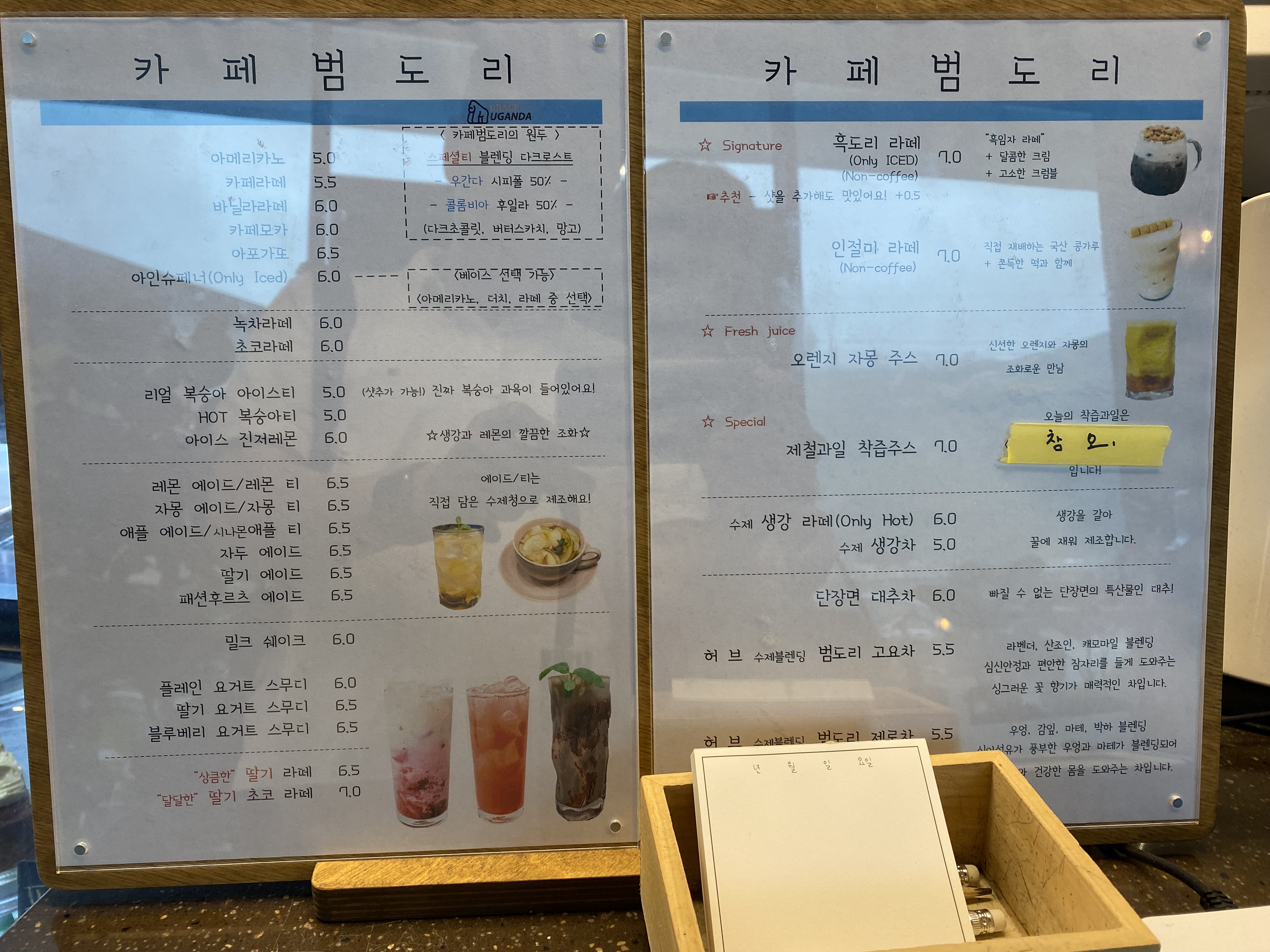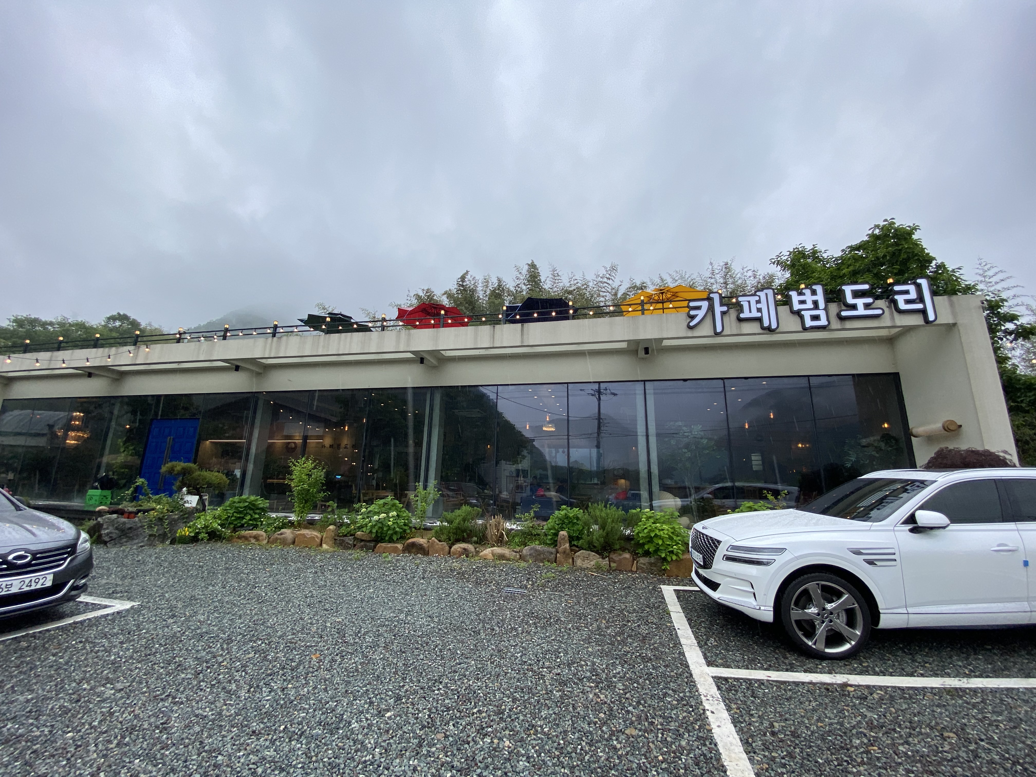 새벽부터 내리기 시작한 봄비가 줄기차게 따라다닙니다. 카페에 도착했을 때 여전히 비가 내리고 먹구름 가득한 게 분명 날씨가 쨍했더라면 카페 분위기가 훨씬 좋았을 법 했을 텐데 말이죠... 우중충한 카페 범도리 느낌만 잔뜩 풍깁니다.