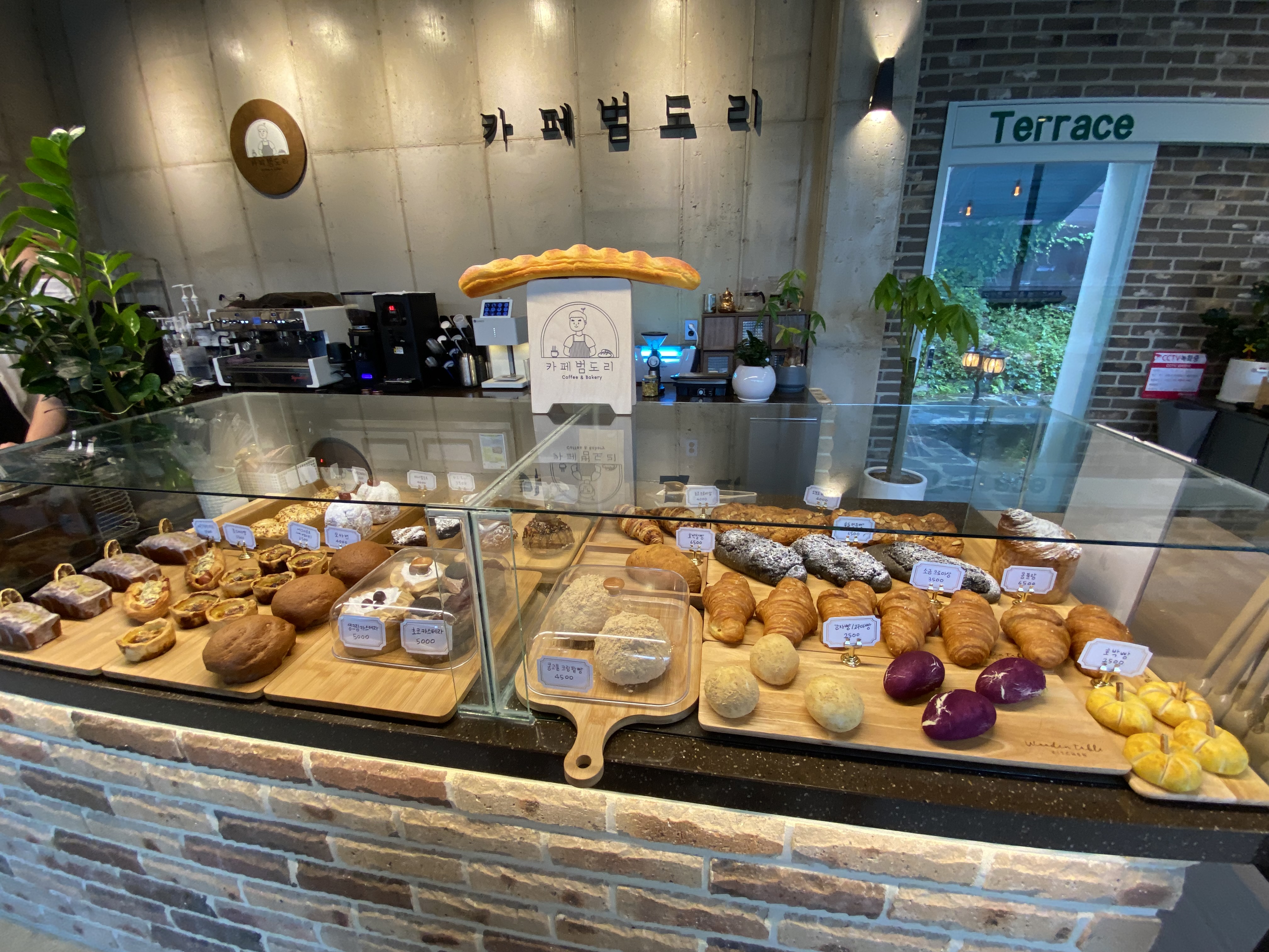 하지만 실내로 들어가면 넓고 쾌적한 공간에 카운터에는 갓 구운 빵들이 맛있게 여행객들을 향해 손 짖을 하고 있답니다.