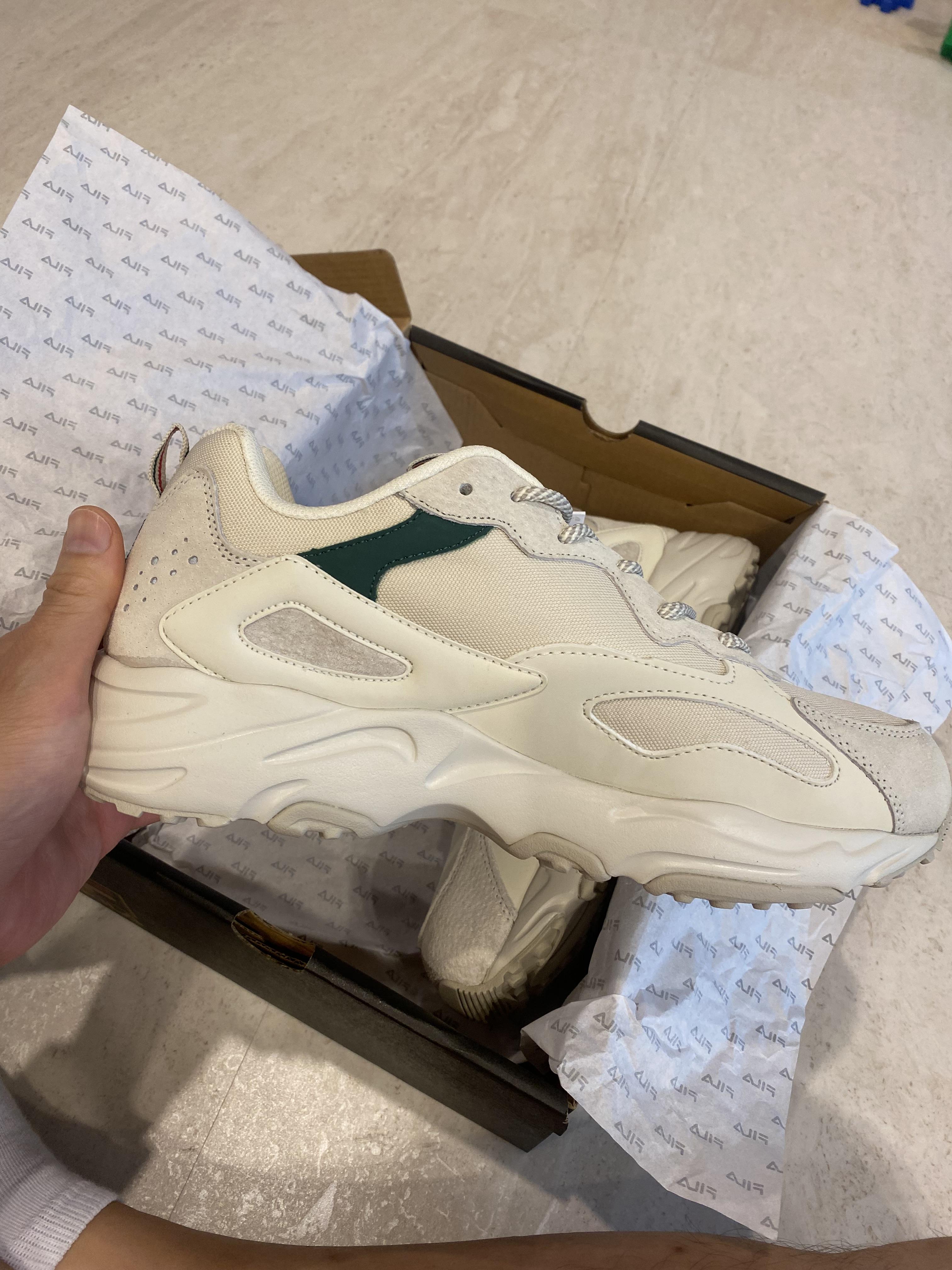 어그 스타일 운동화인데 제가 구입했던 프로 스펙스 브랜드의 어그 운동화보다는 엄청 심플한 그냥 운동화 같다랄까요? 프로 스펙스는 너무 심한 어그라서 신고 다니기 좀 부담스러웠는데 휠라 신발은 밑창이 좀 뚜껍다는 거 외에는 오버핏 사이즈로 마구 넓은 그런 보기 싫은 어그 스타일은 아니었습니다.
