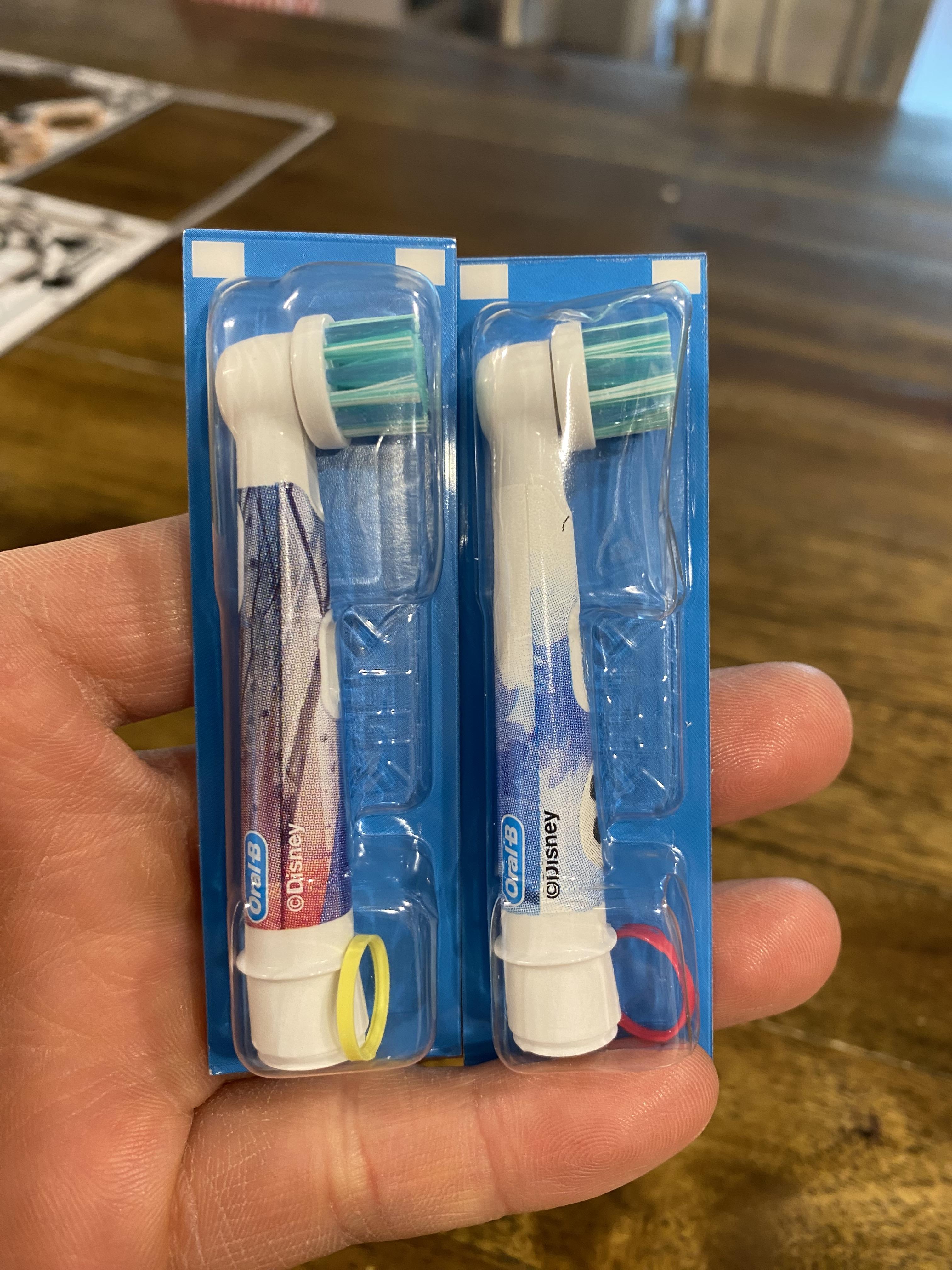 하나는 엘사, 하나는 울라프 칫솔모입니다.