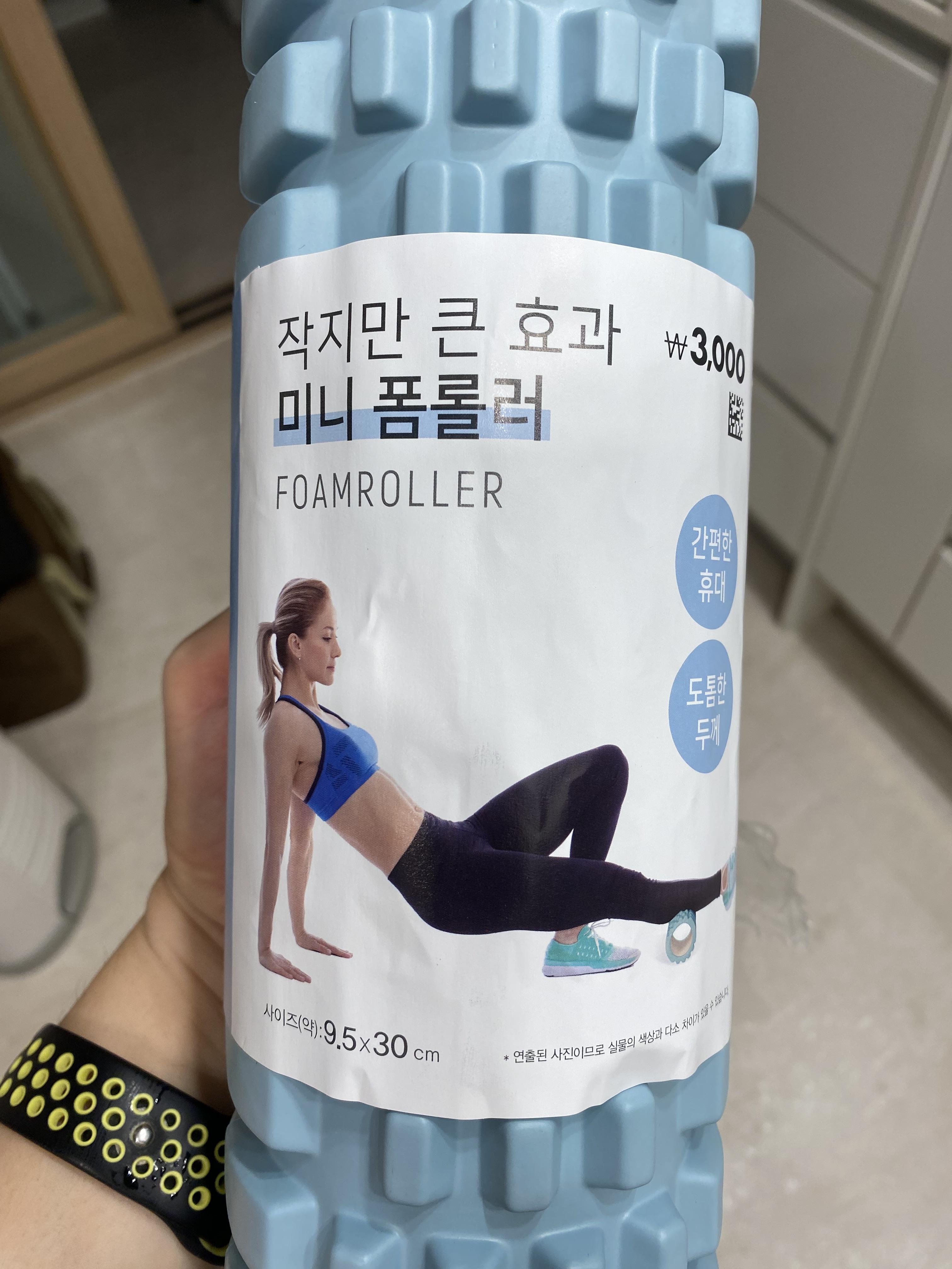 요즘 들어 엉덩이 쪽 근육이 자주 뭉치고 엉치뼈 있는 곳 근육이 딱딱해 오래 앉아 있질 못해서 요쪽 근육을 어떻게 풀어줘야 하나~ 고민이었는데 유튭 방송에서 폼롤러로 뭉친 근육을 풀어주는 영상을 보고 아~ 저거다 싶더라고요. 언제 한번 구입해 봐야겠다 생각만 했었는데 다이소에서 실물을 보고는 바로 질렀습니다. 가격도 3천 원 전혀 부담이 안되는 제품이고 사이즈도 크기가 너무 크면 집에 보관하기가 그래서 무작정 구입하기 애매했었는데 미니 폼롤러는 굵기도 그렇고 길이도 딱~!! 완전 맘에 드는 폼롤러였습니다.