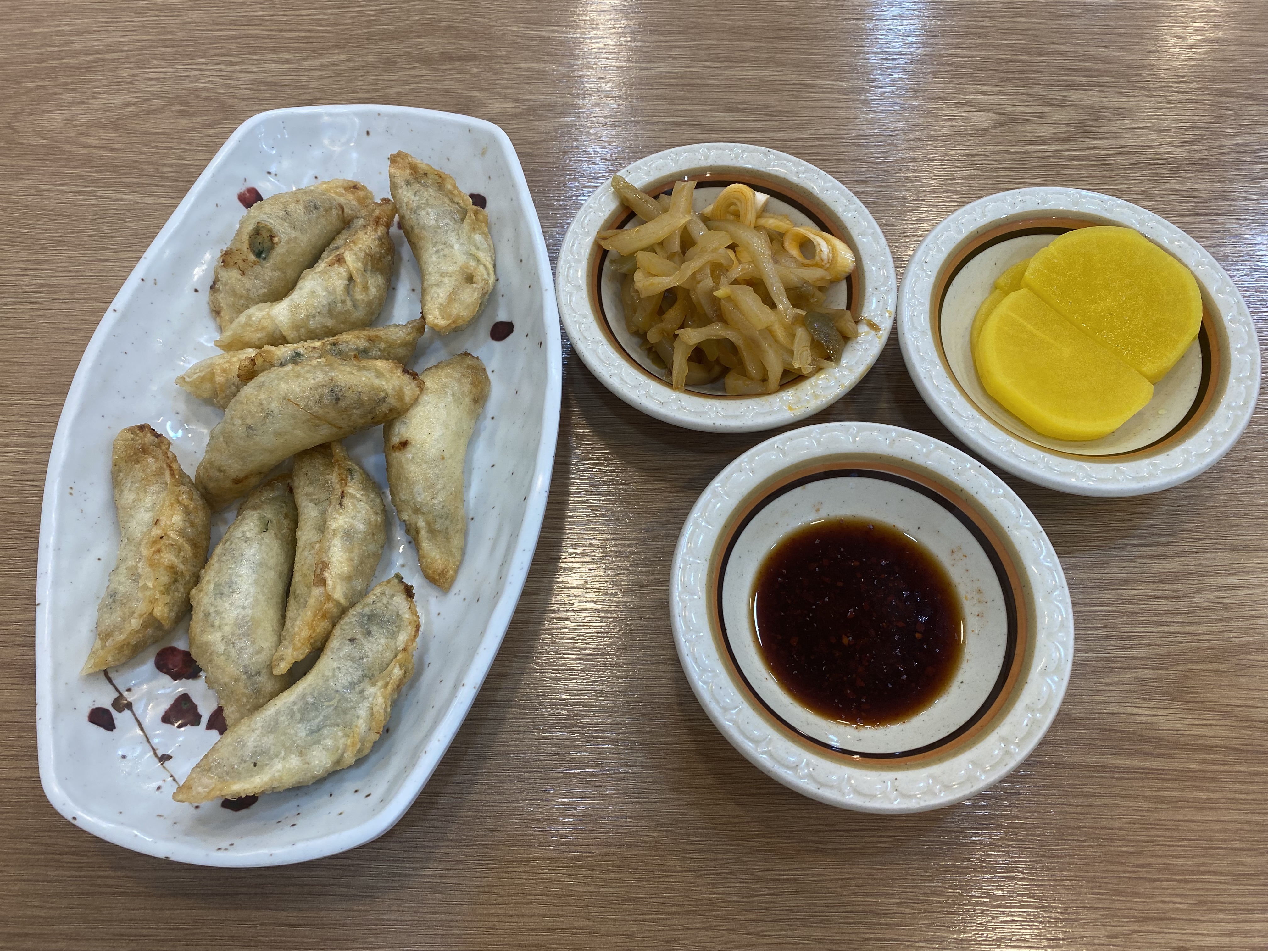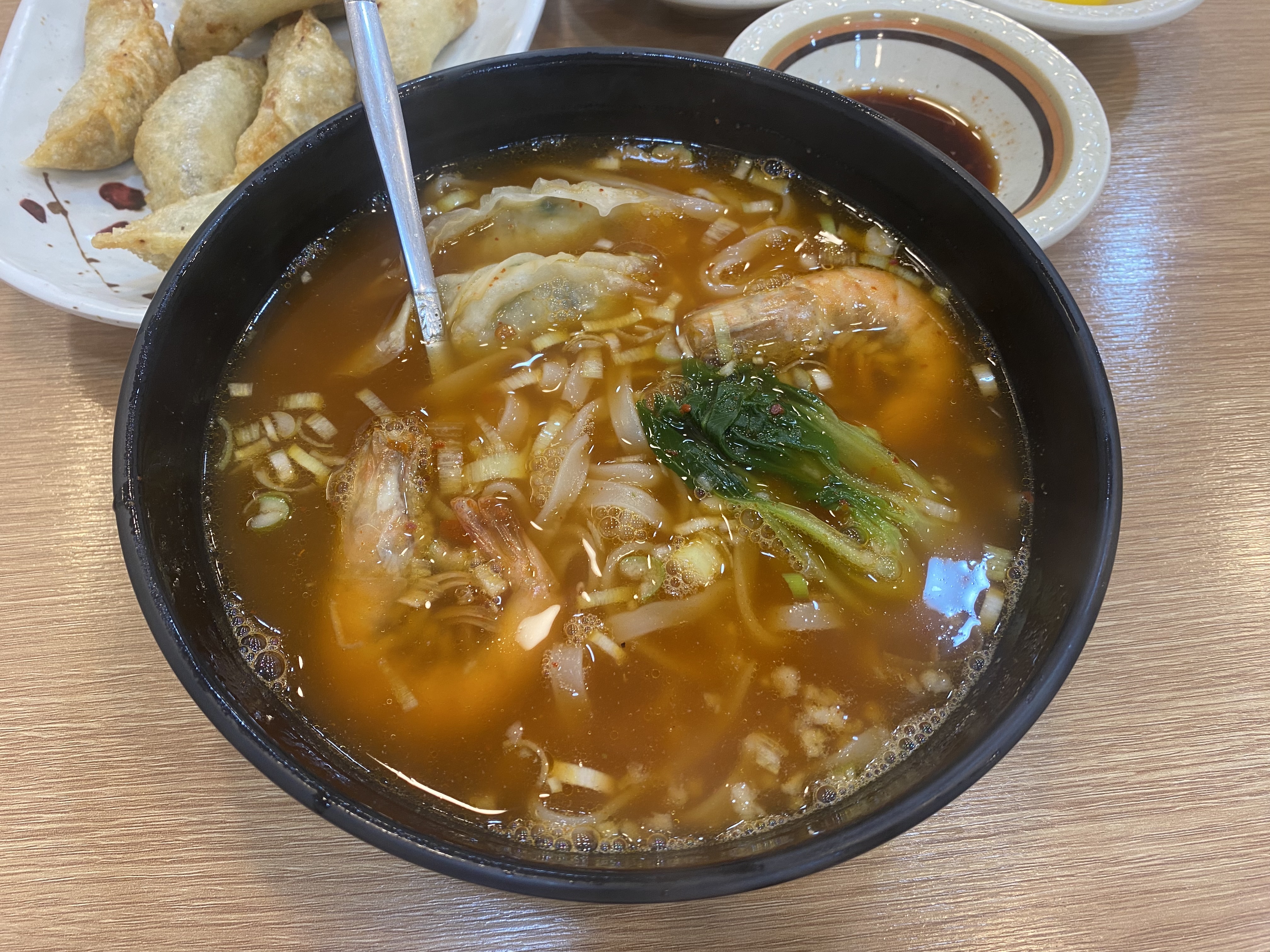 군만두는 맛이 국내에서 맛볼 수 있는 흔한 고기만두 스타일이 아닙니다. 만두피도 얇고 고기도 가득 들어가 있는데 신기하게도 고기 맛이 강하지 않고 말로 표현하기 힘든 만두에서는 처음 맛보는 그런 맛의 군만두였습니다. 찐만두를 시켜서 맛보고 싶다는 생각이 강하게 들더군요. 맛은 기대했던 거에 비해 그냥 쏘쏘~~ 하달까요? 바삭한 식감은 좋은데 첨 맛보는 군만두 맛이라 그날은 적응하는 시간을 가졌습니다.