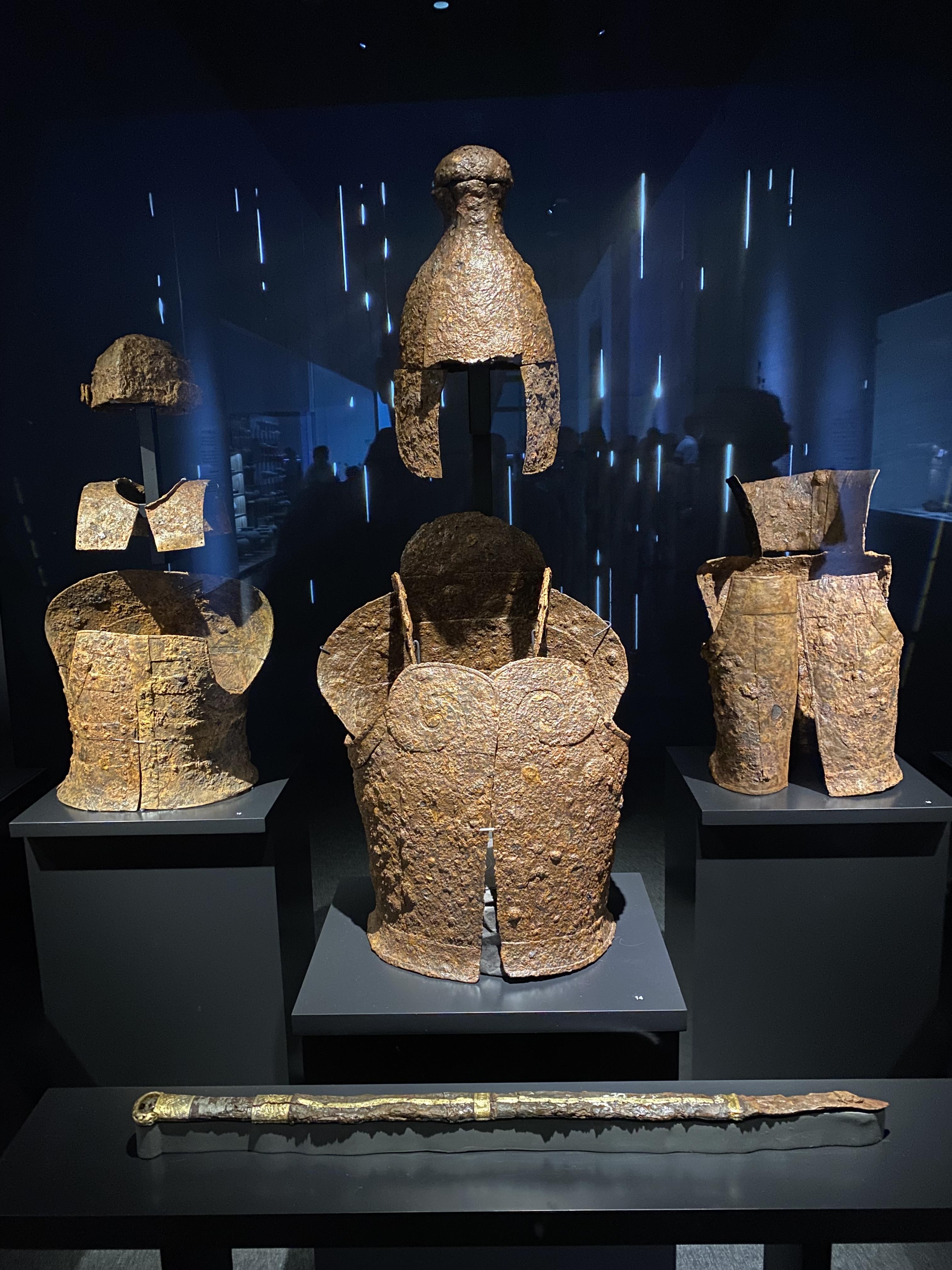 2층까지 대충 보고 나서 시계를 보니 오후 2시가 훌쩍 지난 시점이라 급히 점심 식사를 해결해야 했습니다. 블로그에 박물관 내에 한식당이 괜찮다고 해서 갔었는데 그날따라 방문객이 많아도 너무 많아서 일찌감치 음식재료가 떨어져서 결국 분식 스타일 밥을 간단히 먹으며 배를 채워야 했지요. 식후 다시 힘을 내어 본격적인 1층 구역을 관람하러 돌아다녀 봅니다. 1층은 우리나라의 역사 유물이 시대별로 쭉~ 이어지며 전개가 되었는데 1학년 아들 최고 관심사인 무기 관련한 전시가 많이 되어 있어서 엄청 집중해 관람을 했습니다. 특히 집에서 고구려, 백제, 신라의 유명한 장수에 관련된 책을 읽어서 그런지 다른 곳 보다 더 집중해 삼국시대 전시관을 관람했던 거 같네요. 철기시대 투구와 칼, 그리고 말에 장착하는 보호구들이 엄청 신기해했습니다.